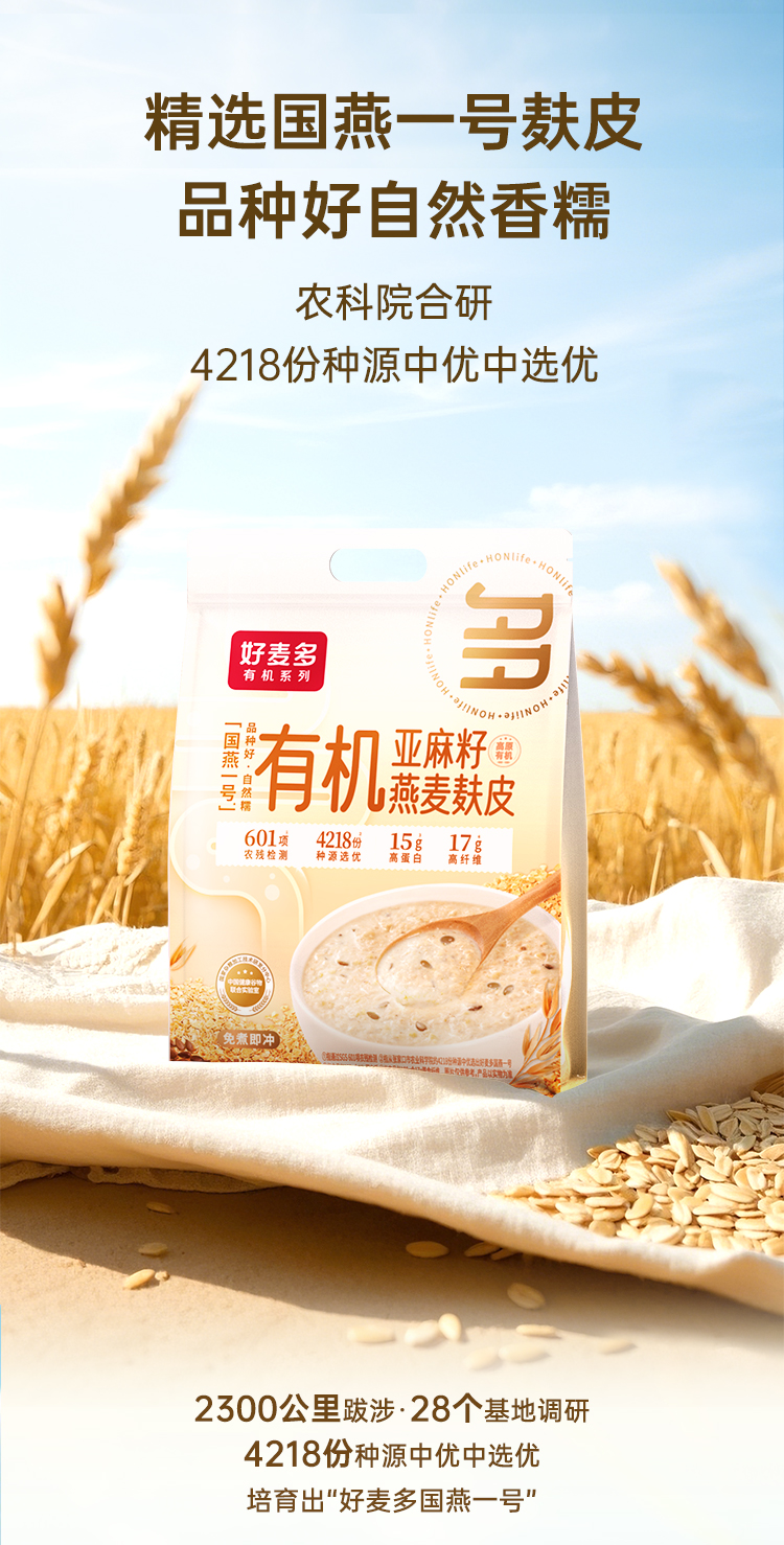 【麦麦SY】好麦多有机燕麦麸皮420g*袋早餐代餐谷物即食冲饮0蔗糖高膳食纤维