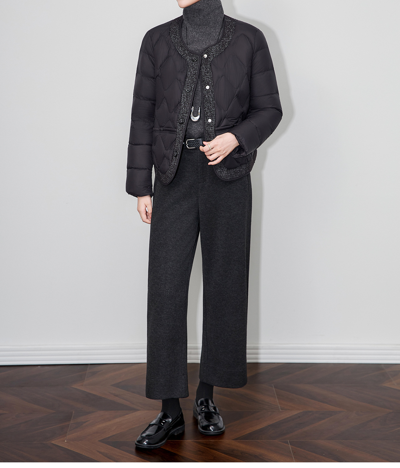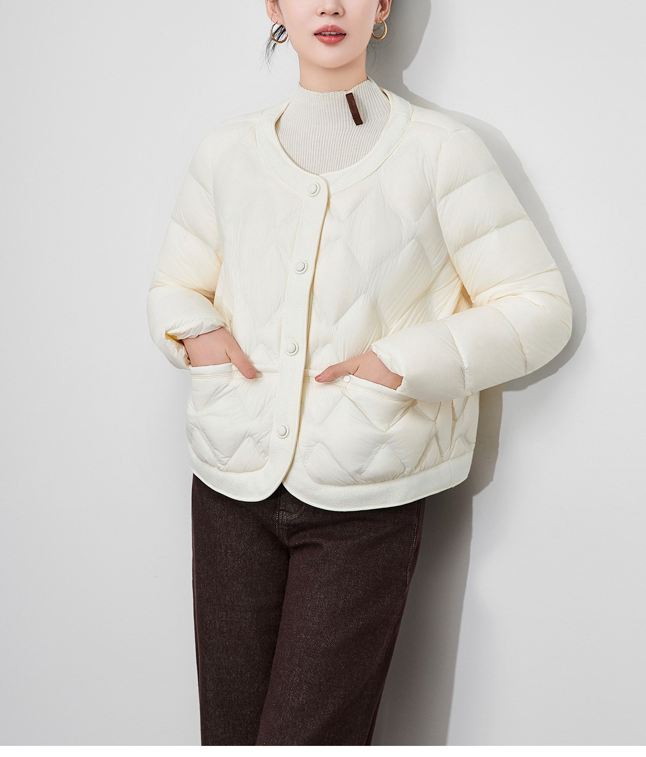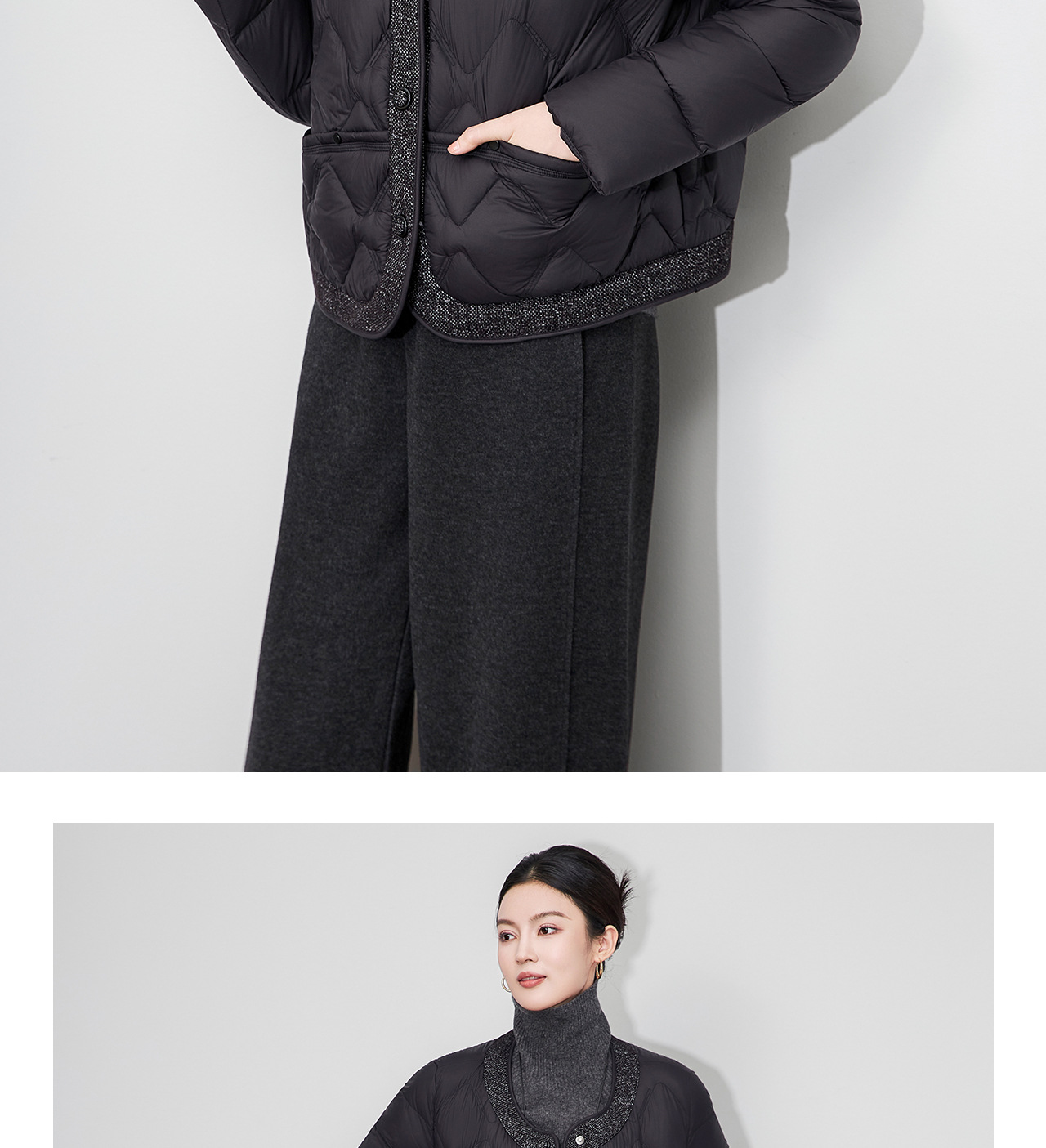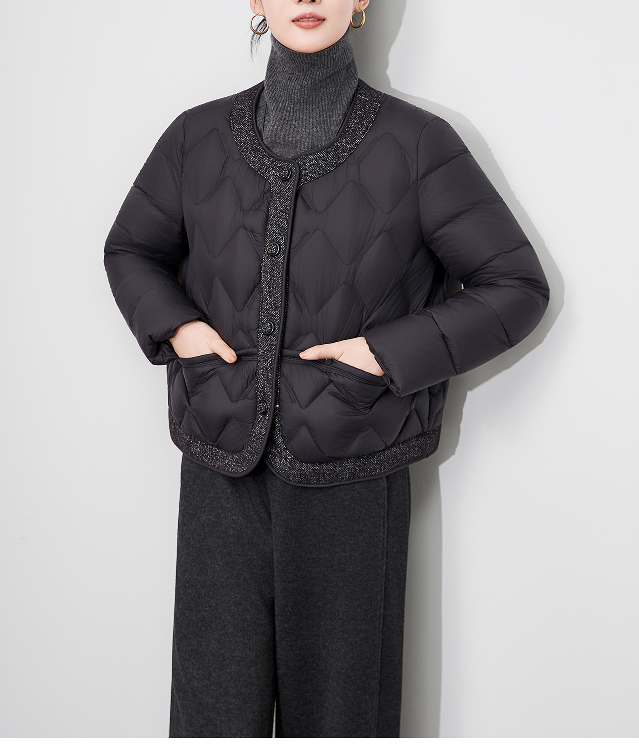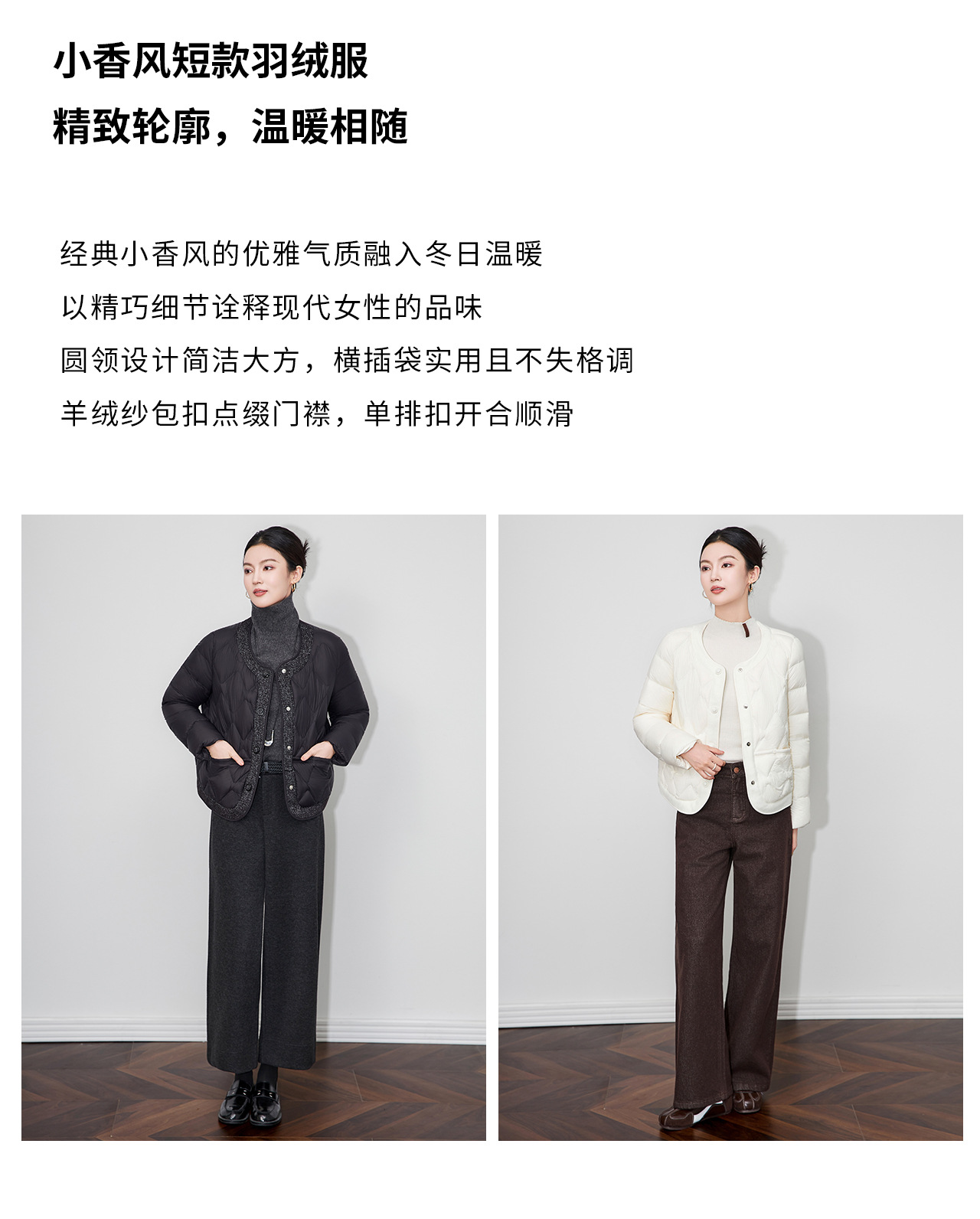 「高货wl」全新升级【铂金会员441/天猫589/差价148】(94241)洛诗琳小香风撞料羽绒服2025冬季气质轻盈加厚保暖短外套