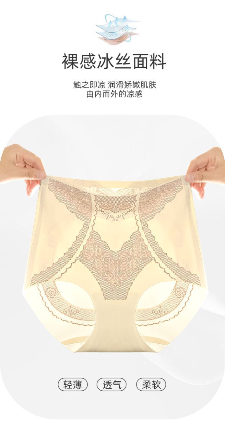 【两条装】液氨冰丝塑身女士内裤无痕高腰裸感抑菌收腹性感夏季薄款透气短裤