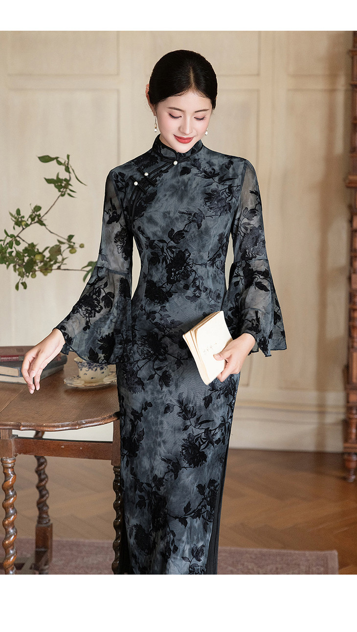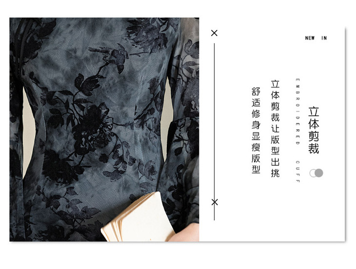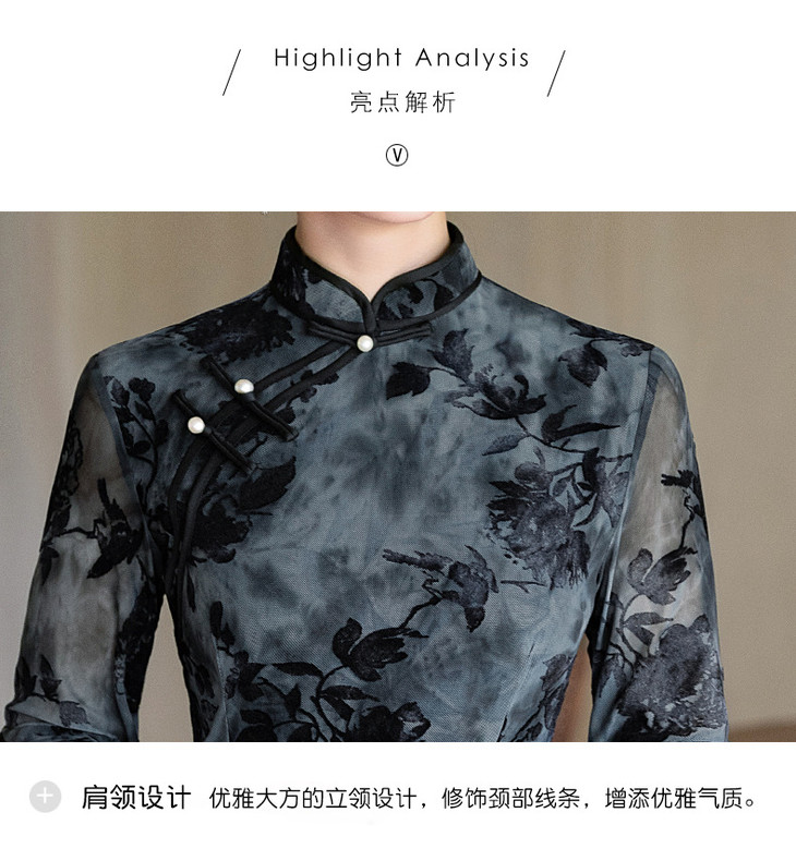 弹力超柔新中式,黑色气质旗袍GX396134