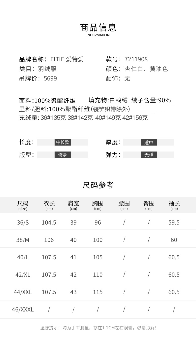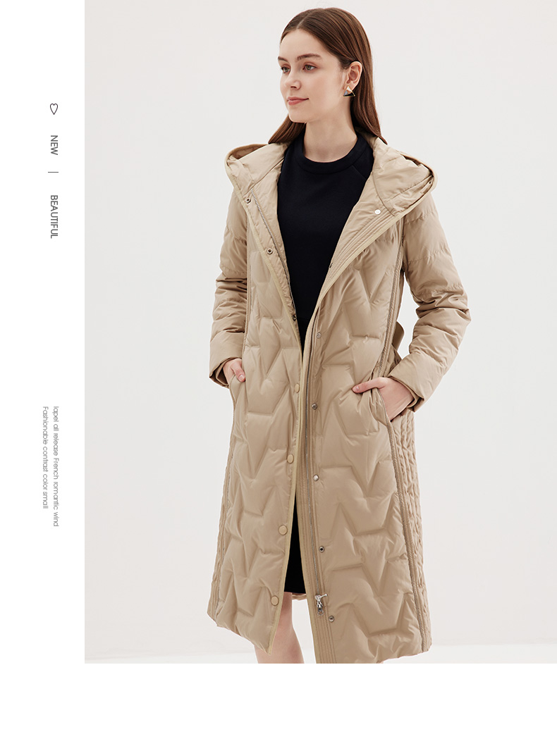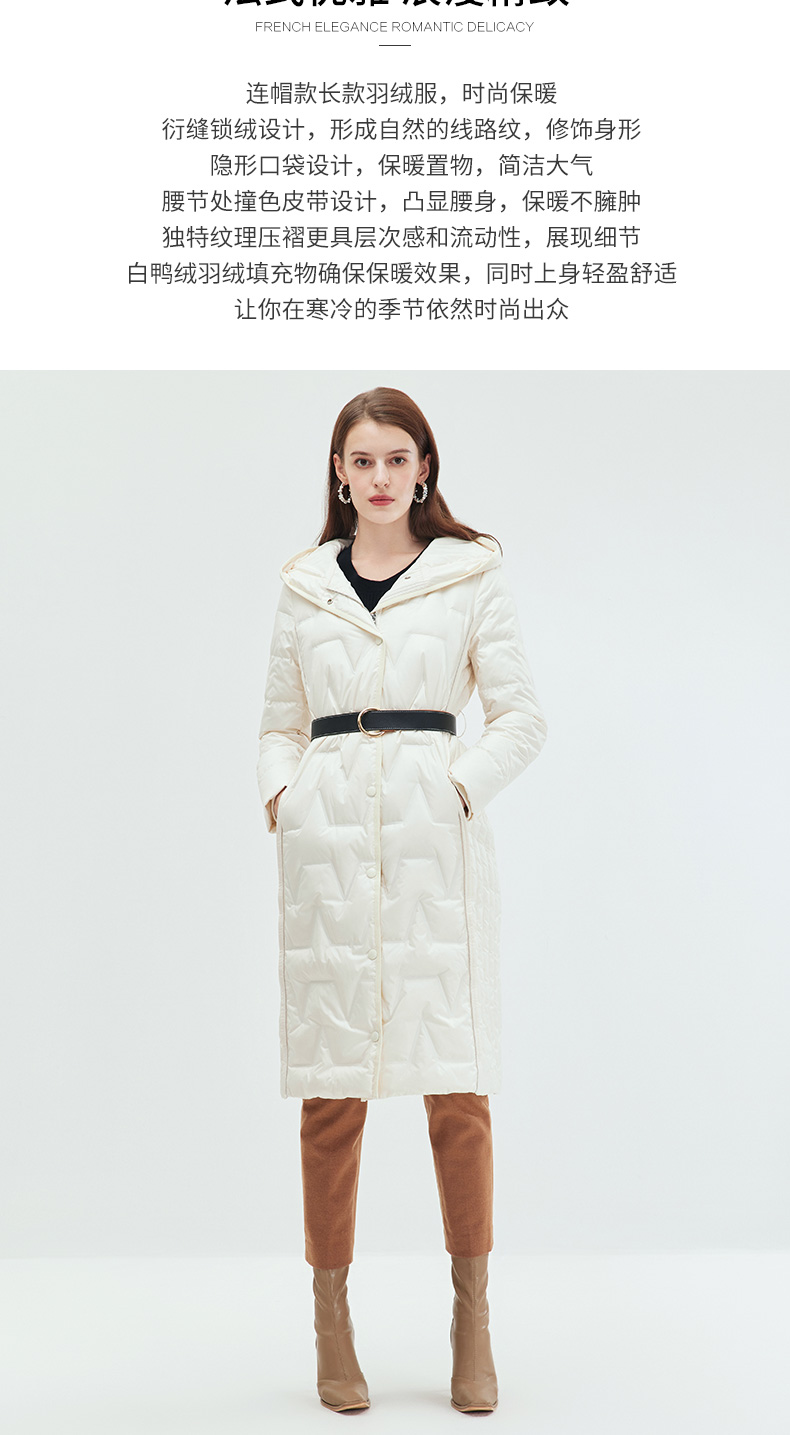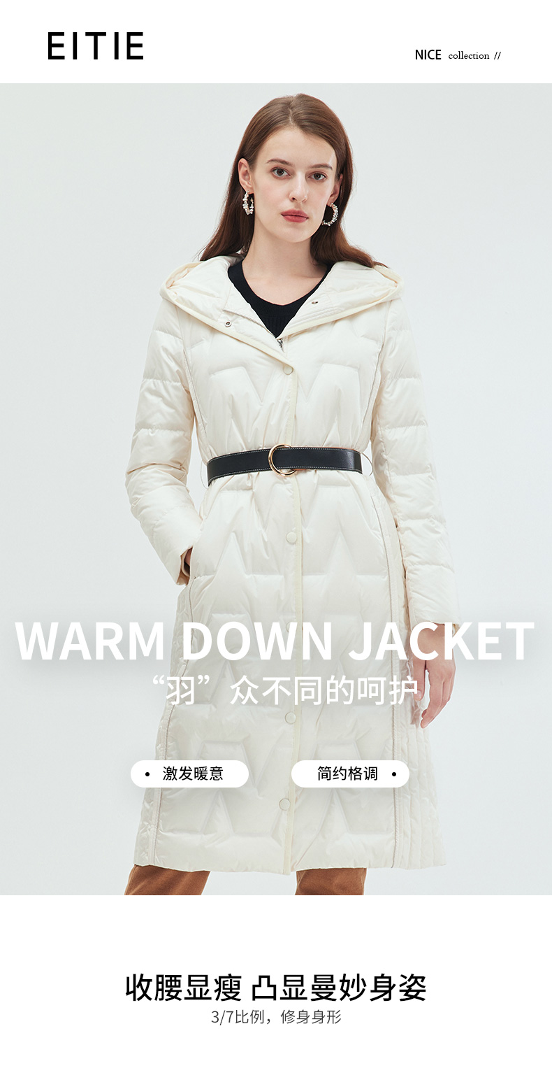 EITIE爱特爱冬季新款女装修身显瘦长款连帽保暖羽绒服7211908