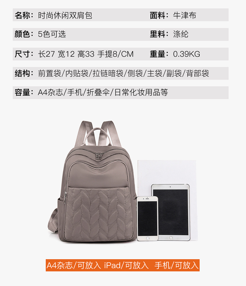 韩版新款牛津布双肩包女时尚简约多用轻便旅行背包绣线书包套 XH1298km
