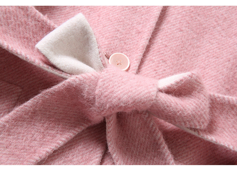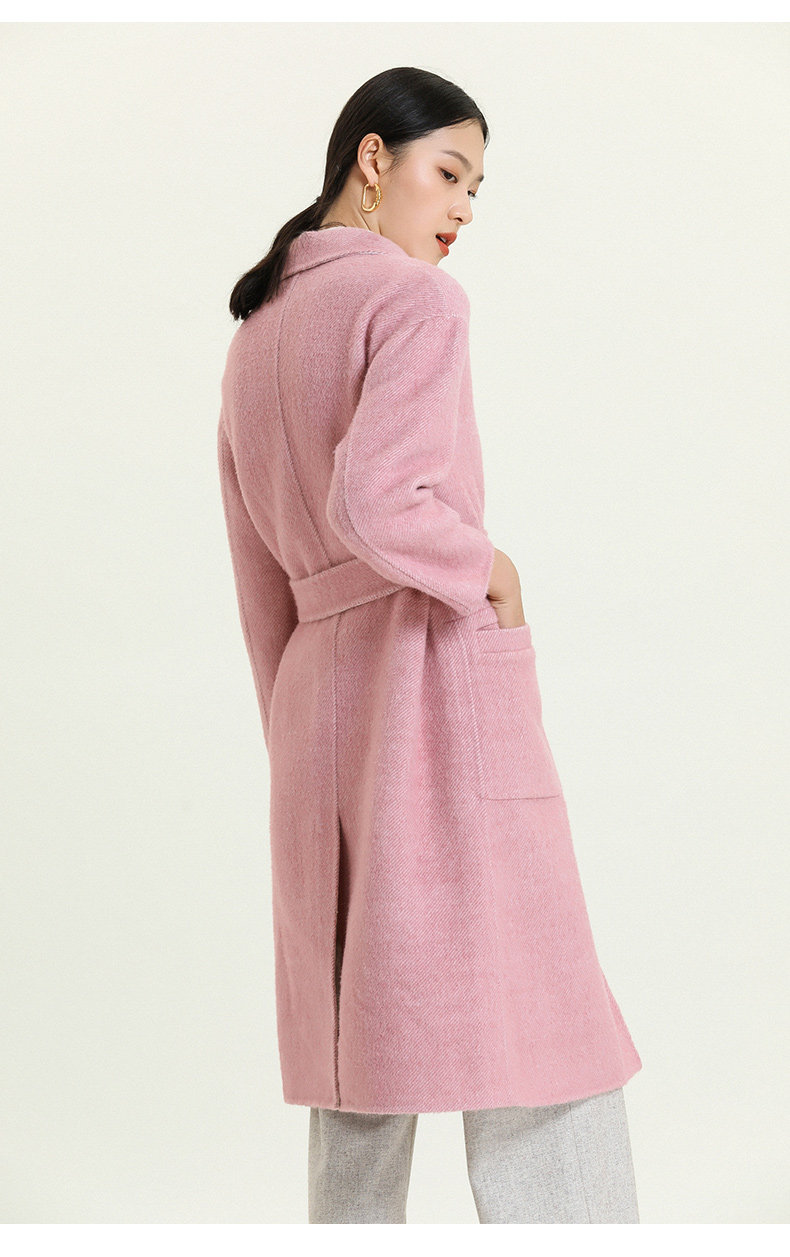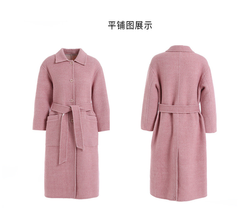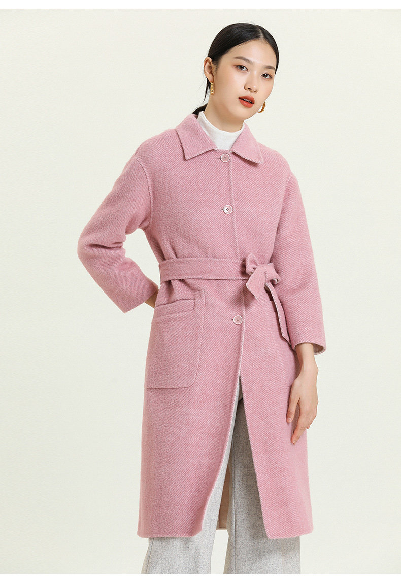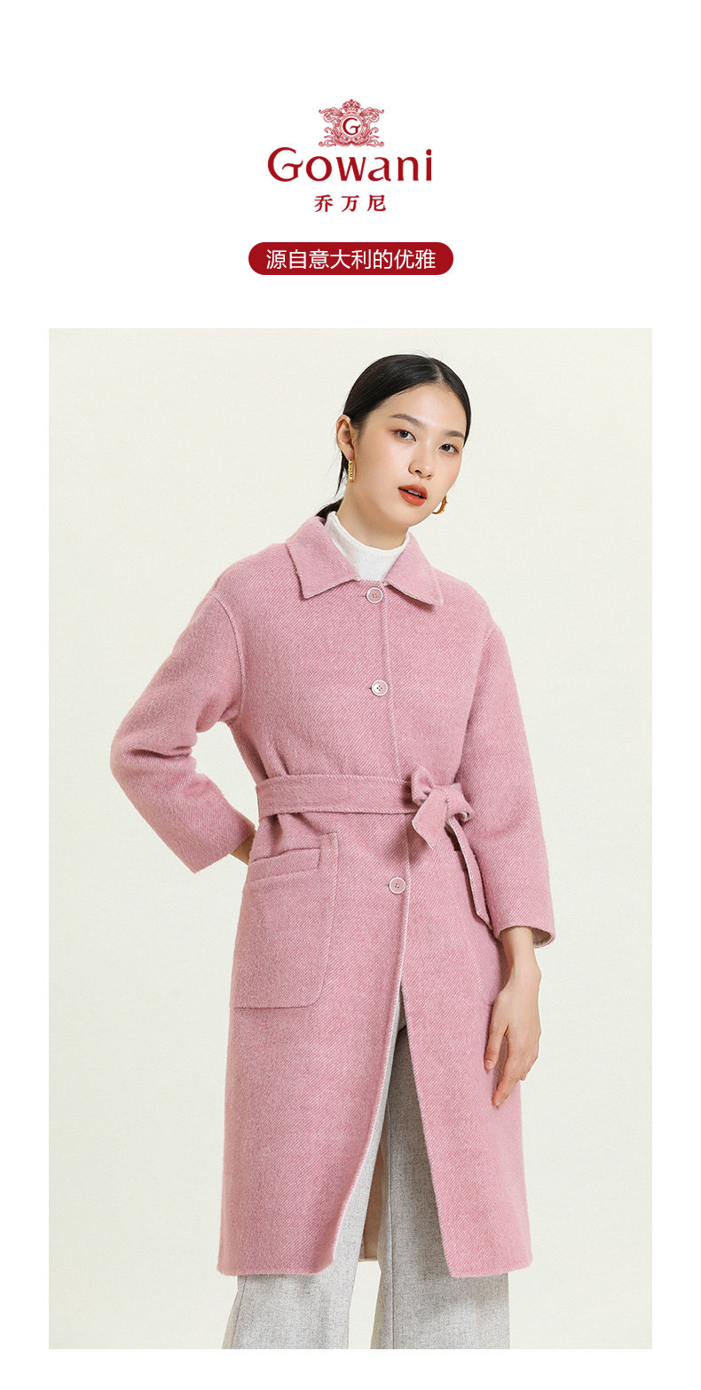 【绵羊毛】乔万尼大衣女粉色修身直筒系带双面穿羊毛呢外套秋冬长款EB4A076