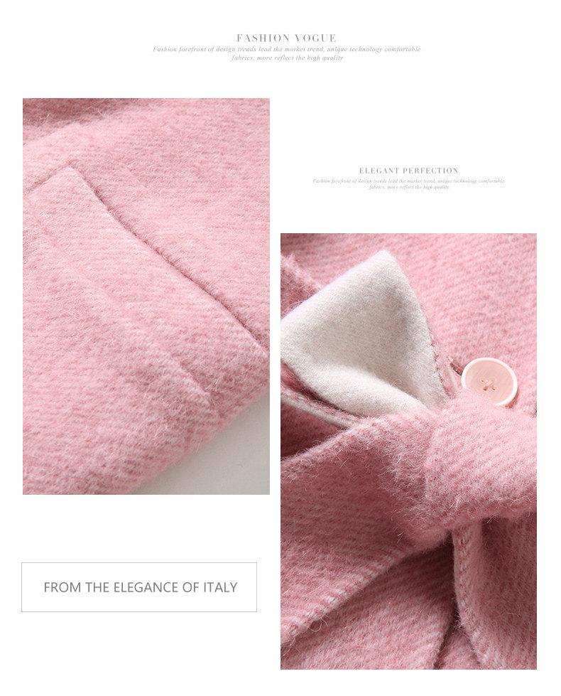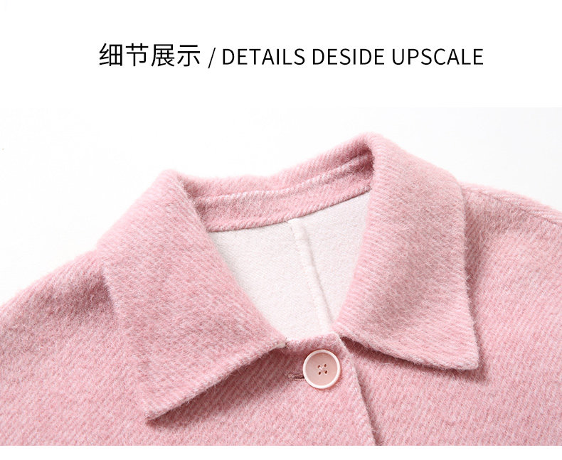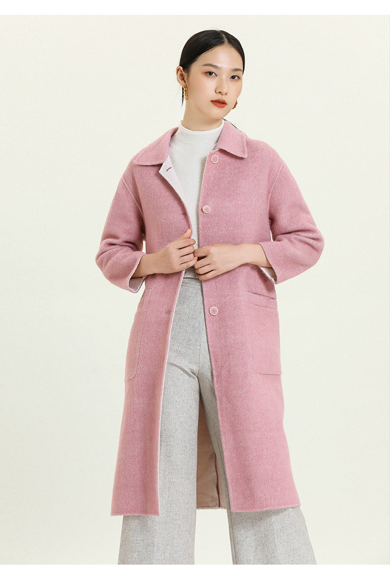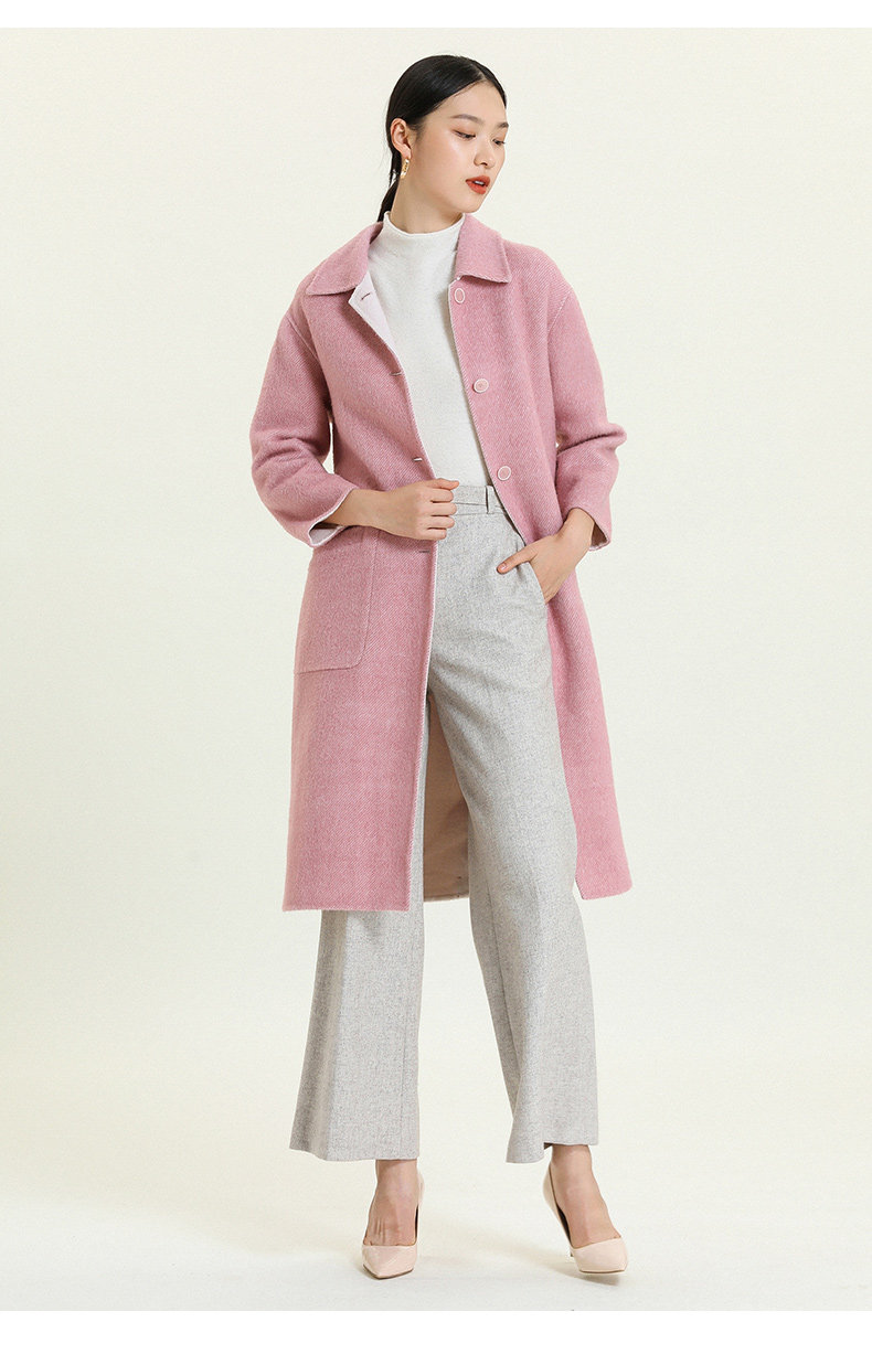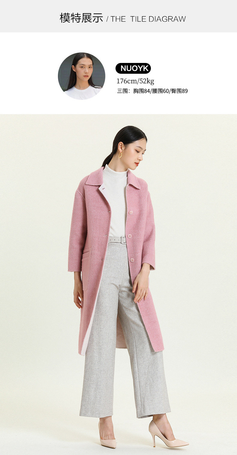 【绵羊毛】乔万尼大衣女粉色修身直筒系带双面穿羊毛呢外套秋冬长款EB4A076