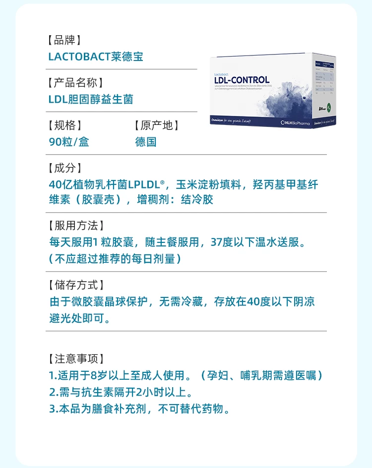 德国Lactobact莱德宝胆固醇益生菌90粒/盒【德国直邮 下单请提供身份证正反面照片】