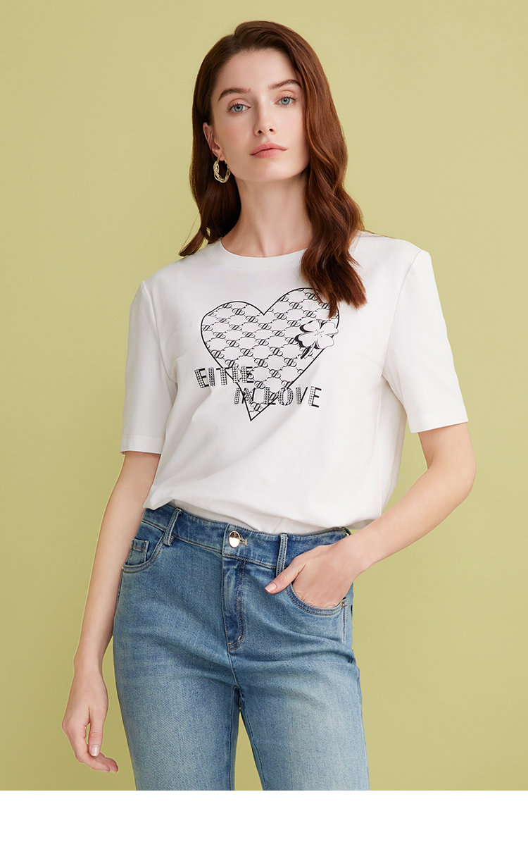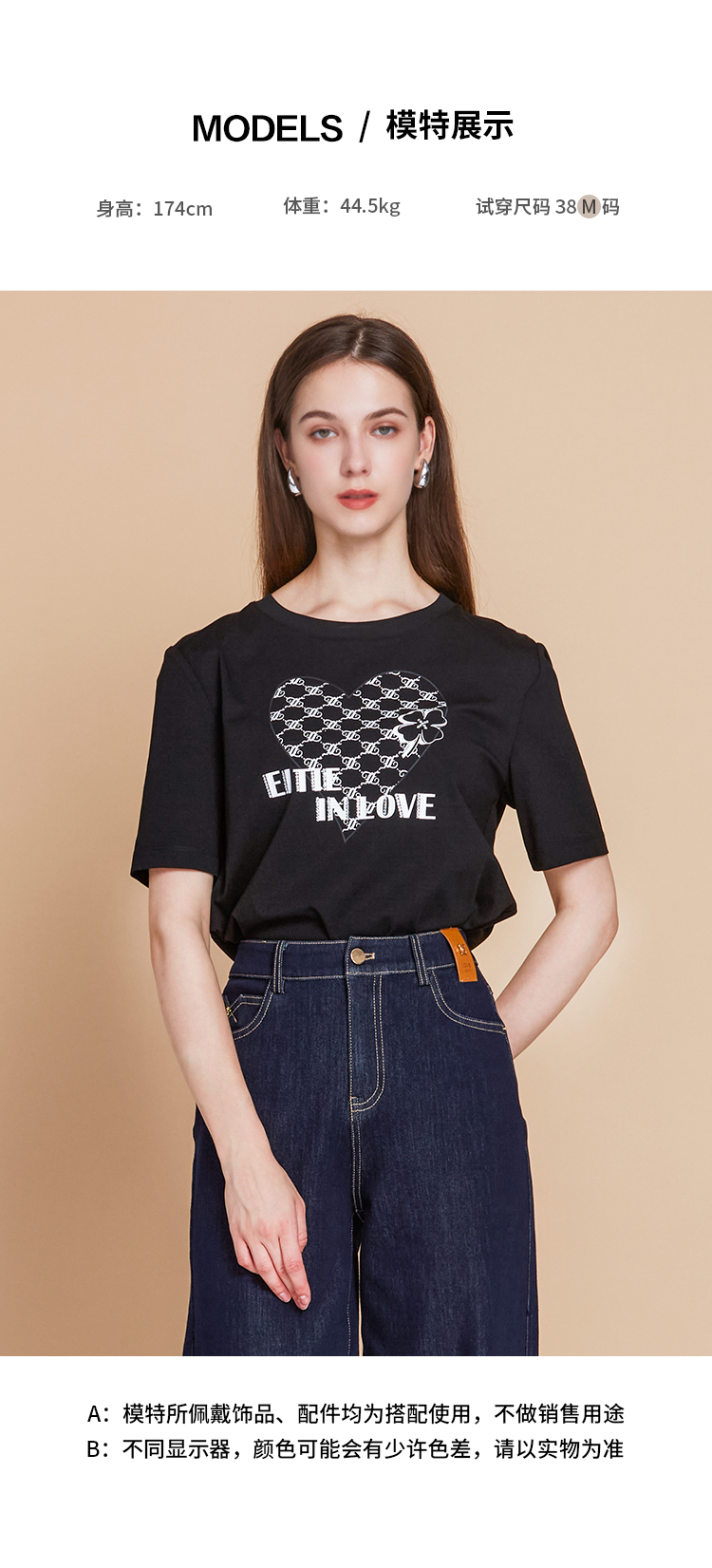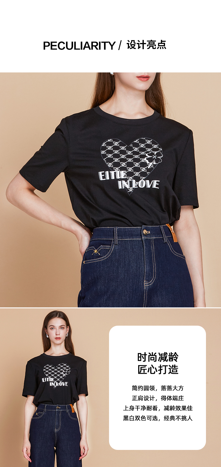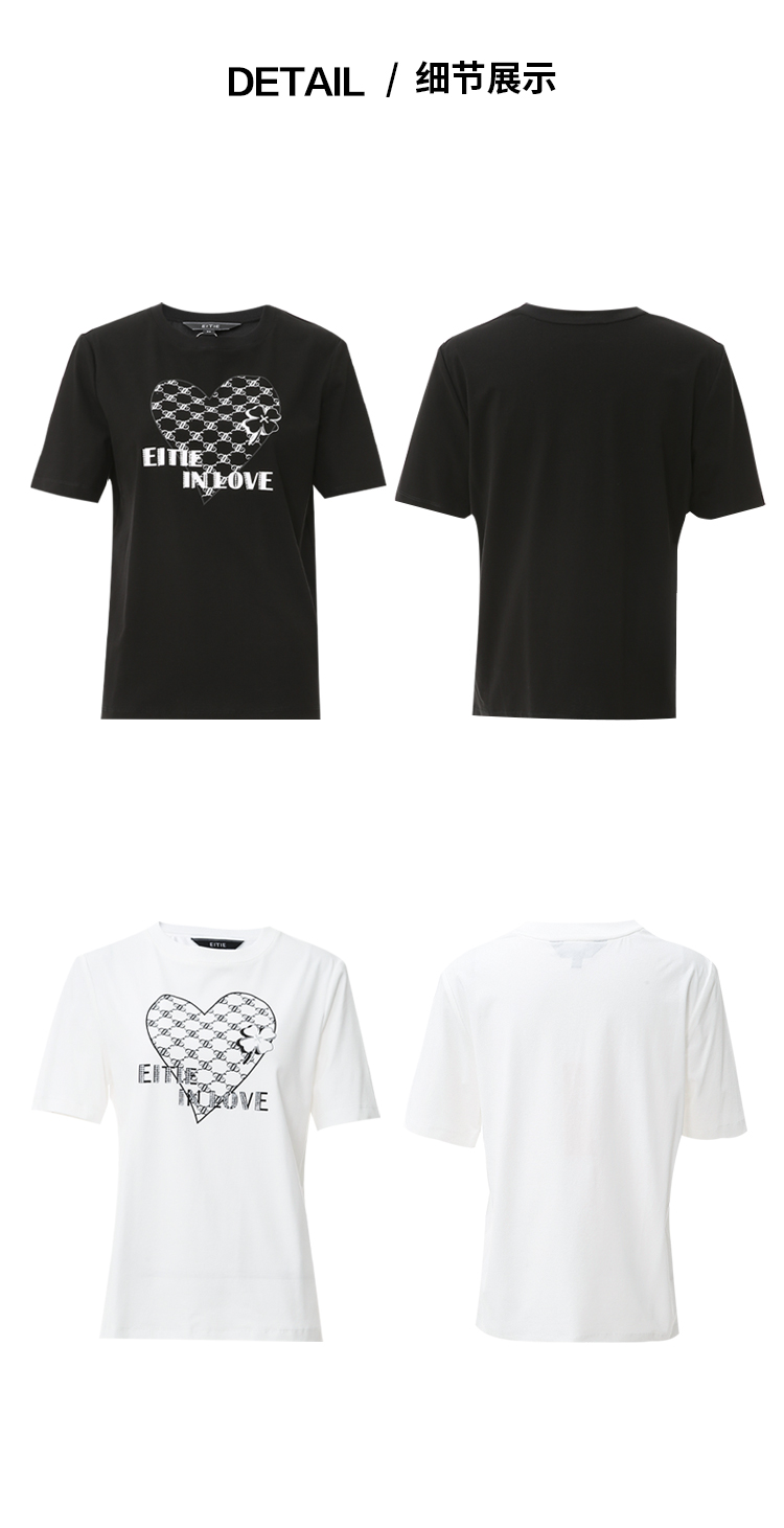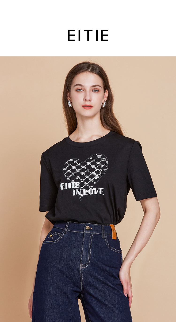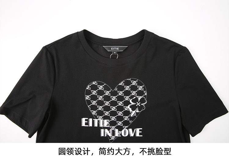 EITIE爱特爱夏季新款百搭打底舒适弹力圆领印花T恤女7702404