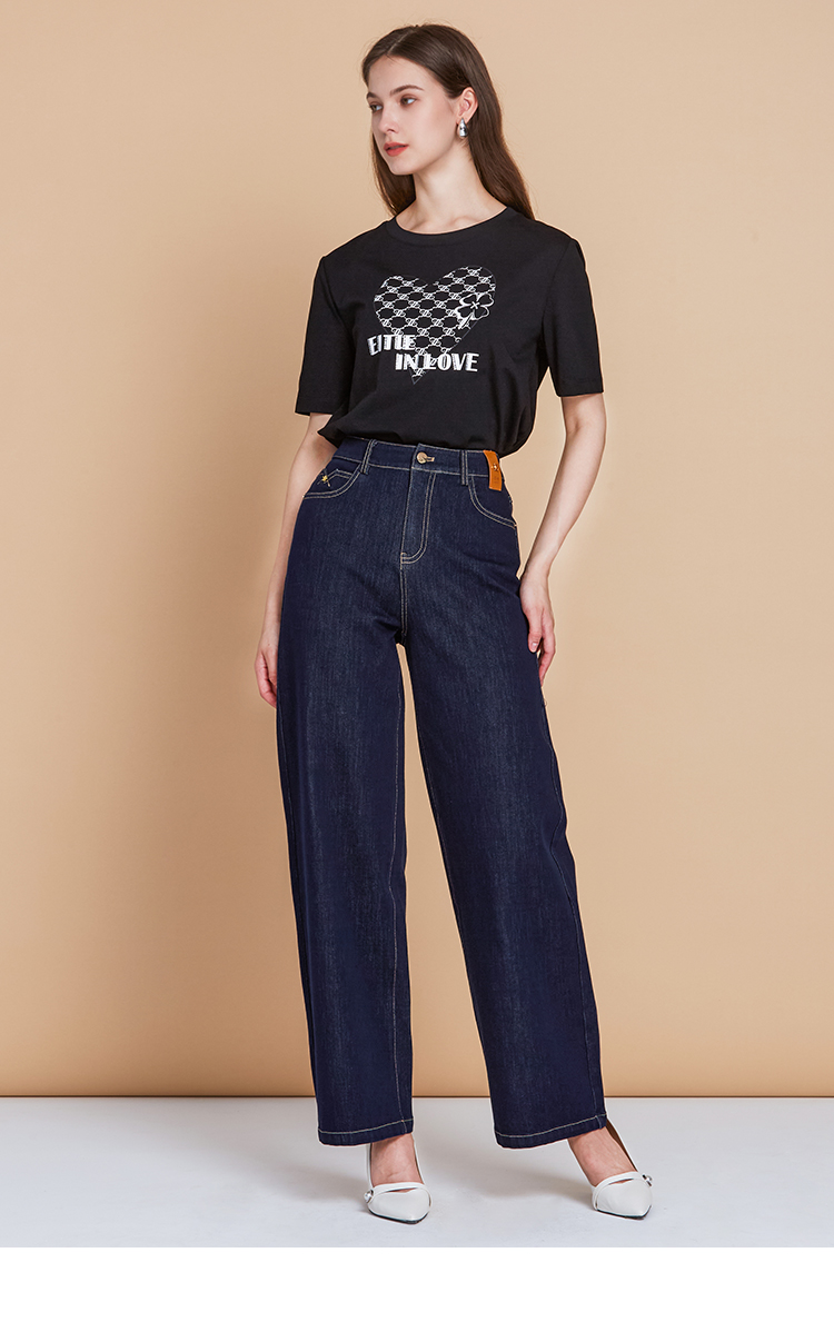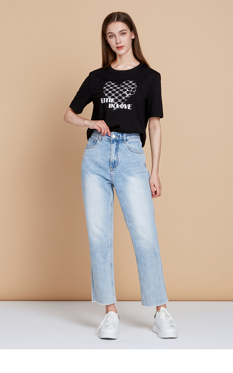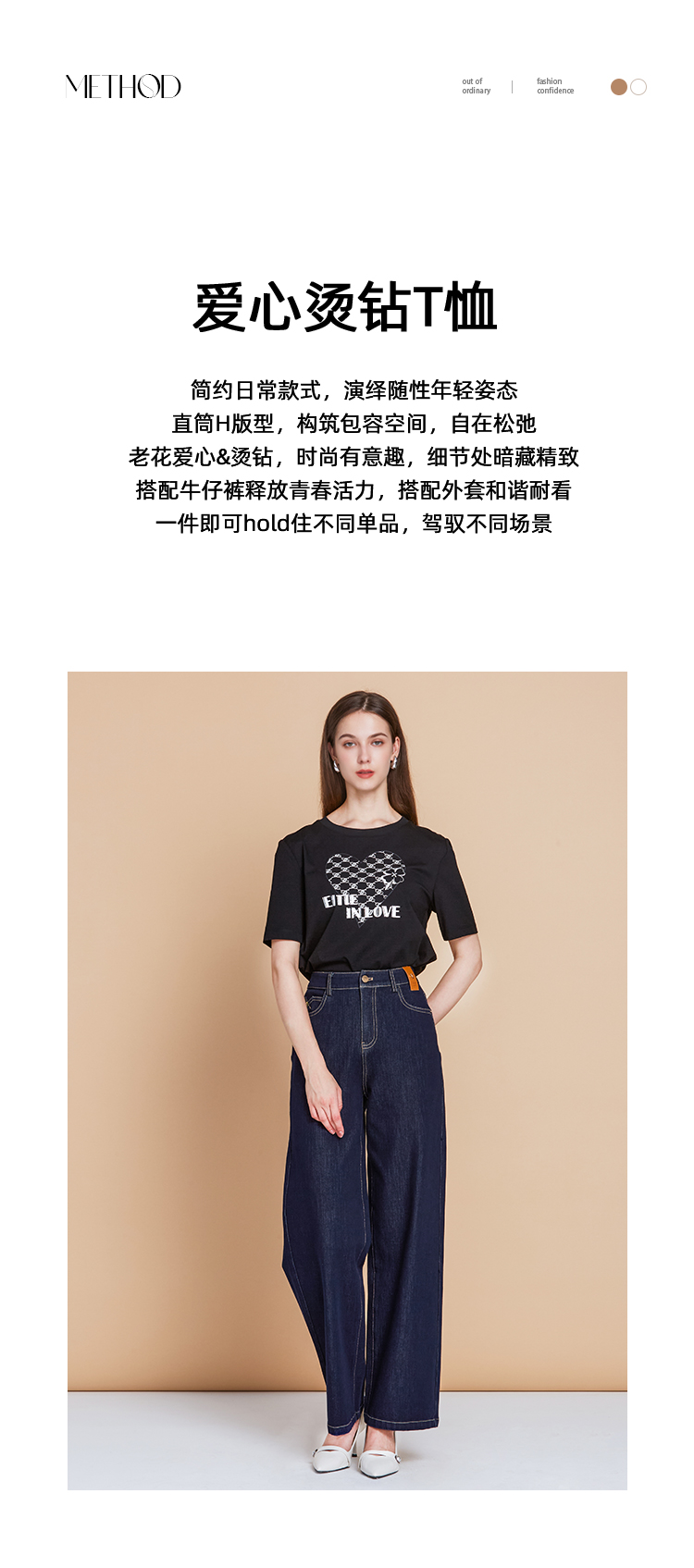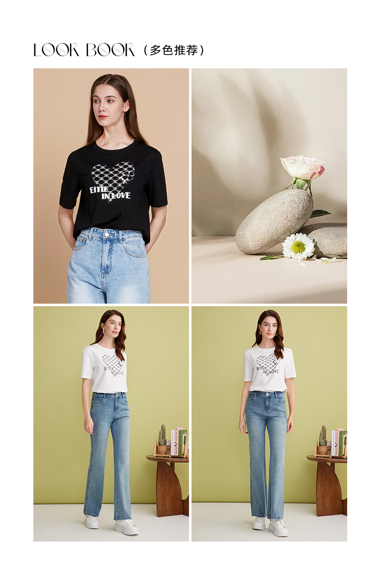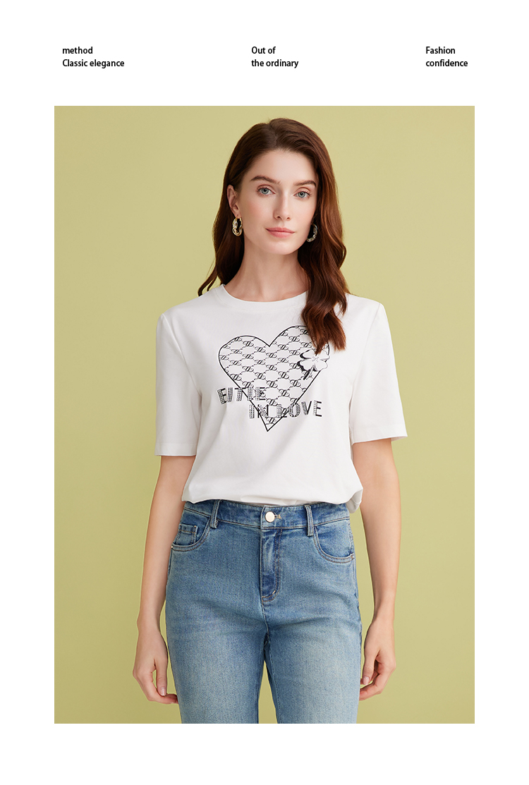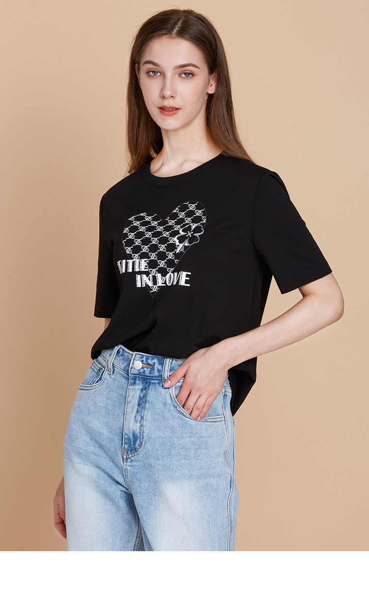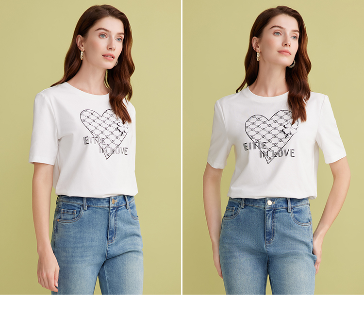 EITIE爱特爱夏季新款百搭打底舒适弹力圆领印花T恤女7702404