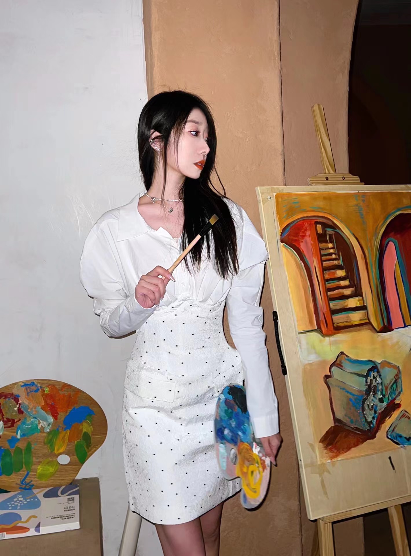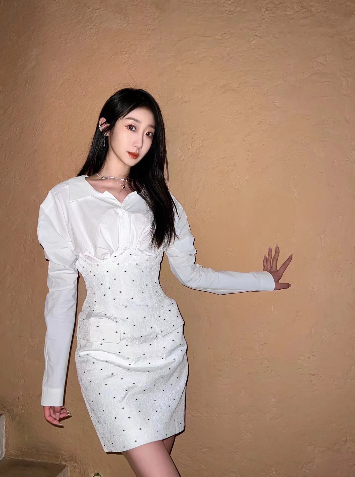分镜头集成店LOOSINGWHITE春夏新品异形袖拼接连衣裙