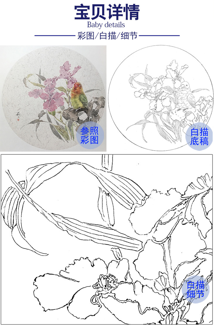 张莉莉没骨画工笔花鸟小品白描底稿 ZA28