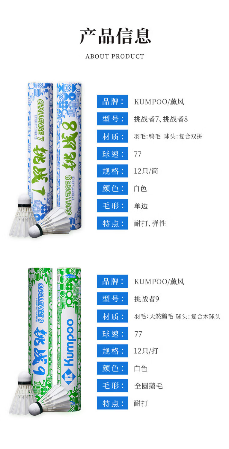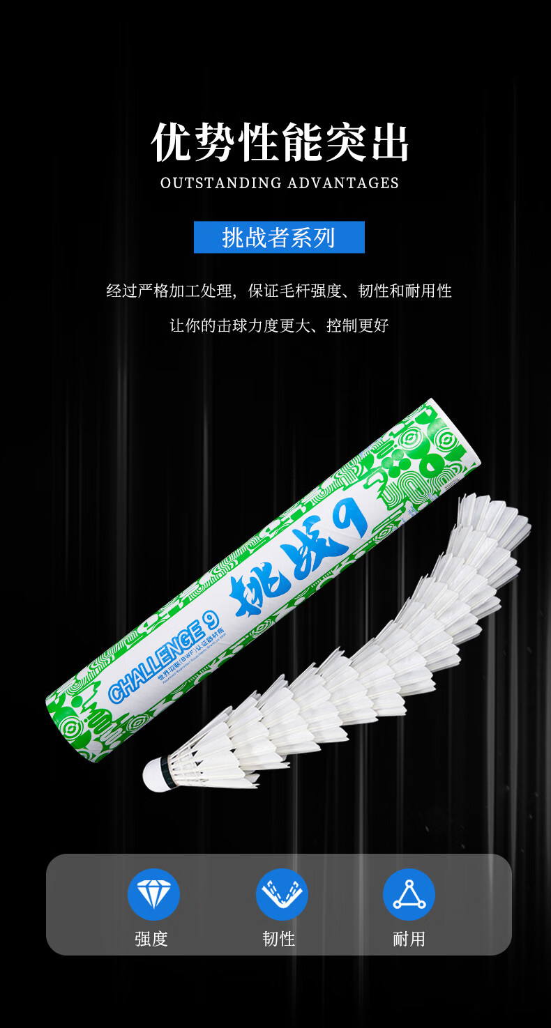 薰风(KUMPOO) 挑战者9号羽毛球耐打不易烂12只装耐打稳定鹅毛家用成人