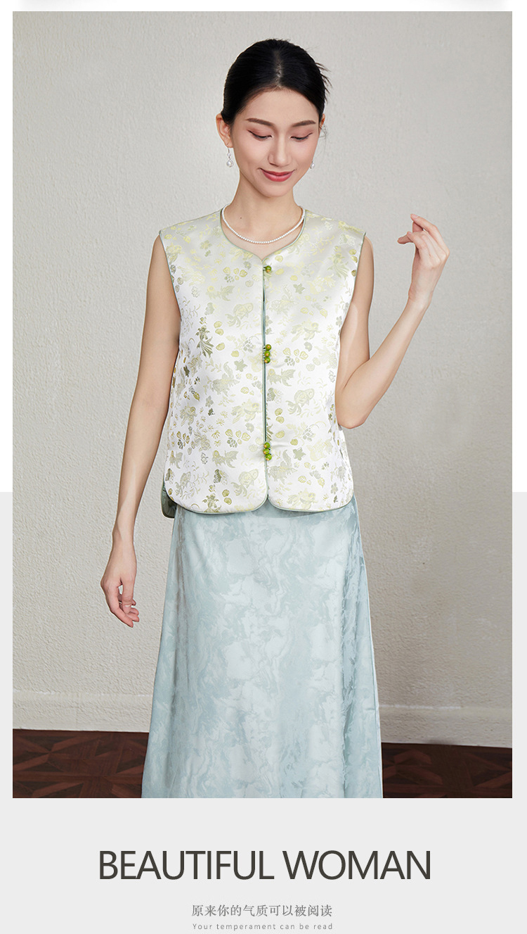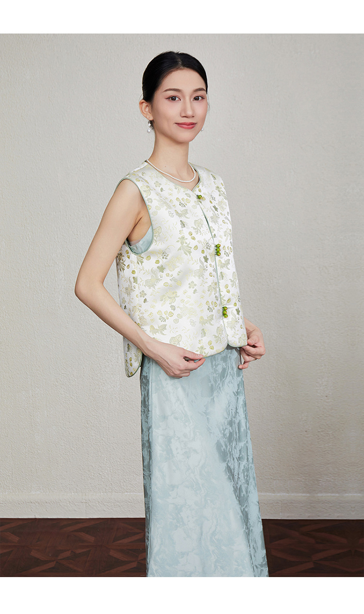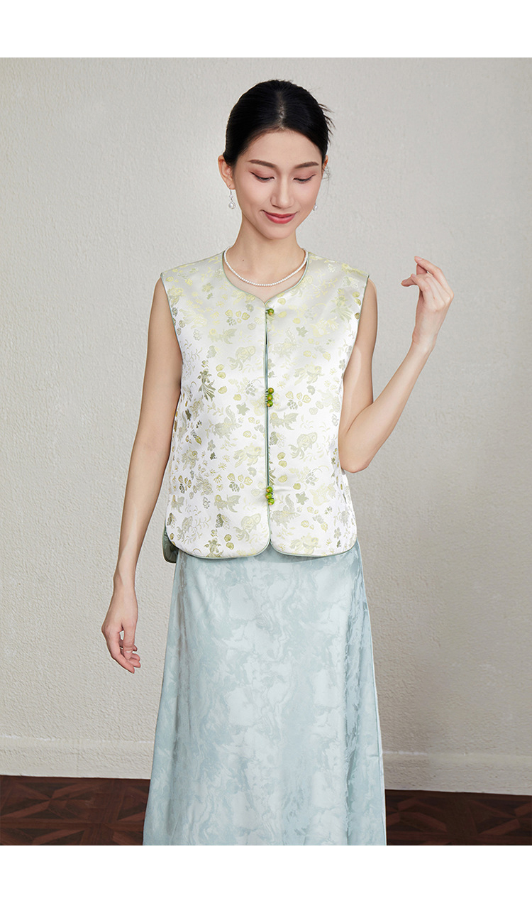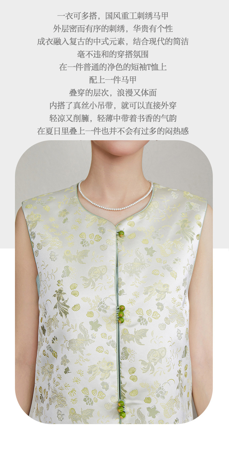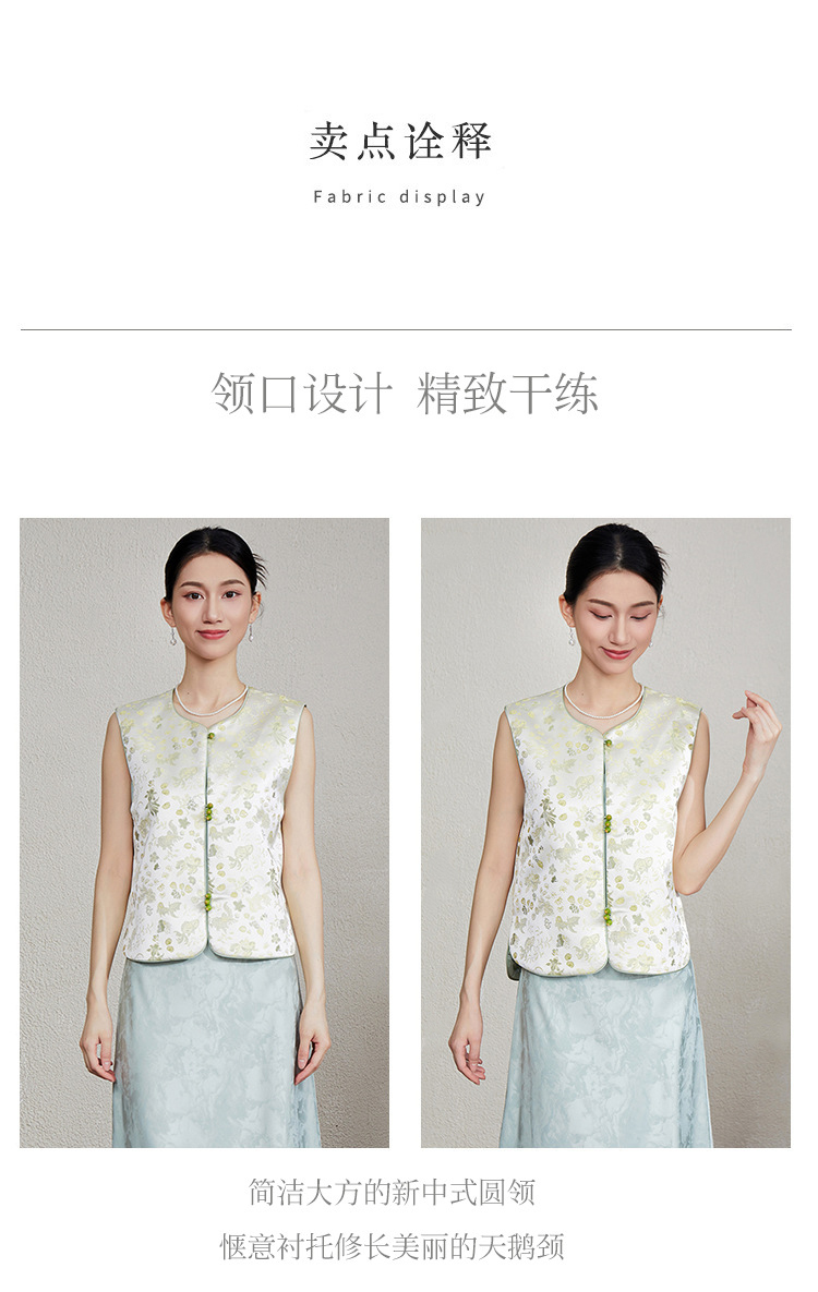 「自」全新升级【铂金会员349/天猫469/差价120】(33616)洛诗琳新中式织锦提花马甲2025夏季新款复古国风马甲上衣