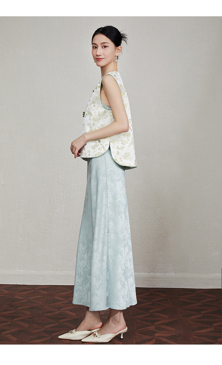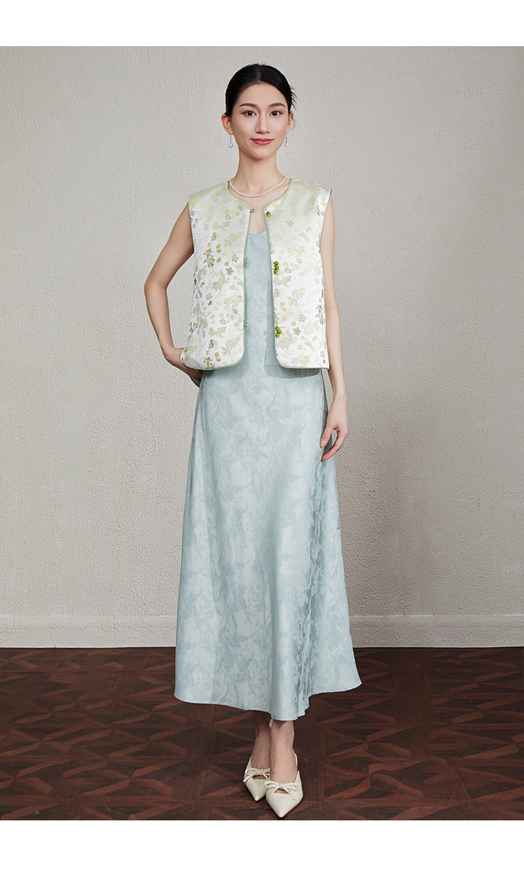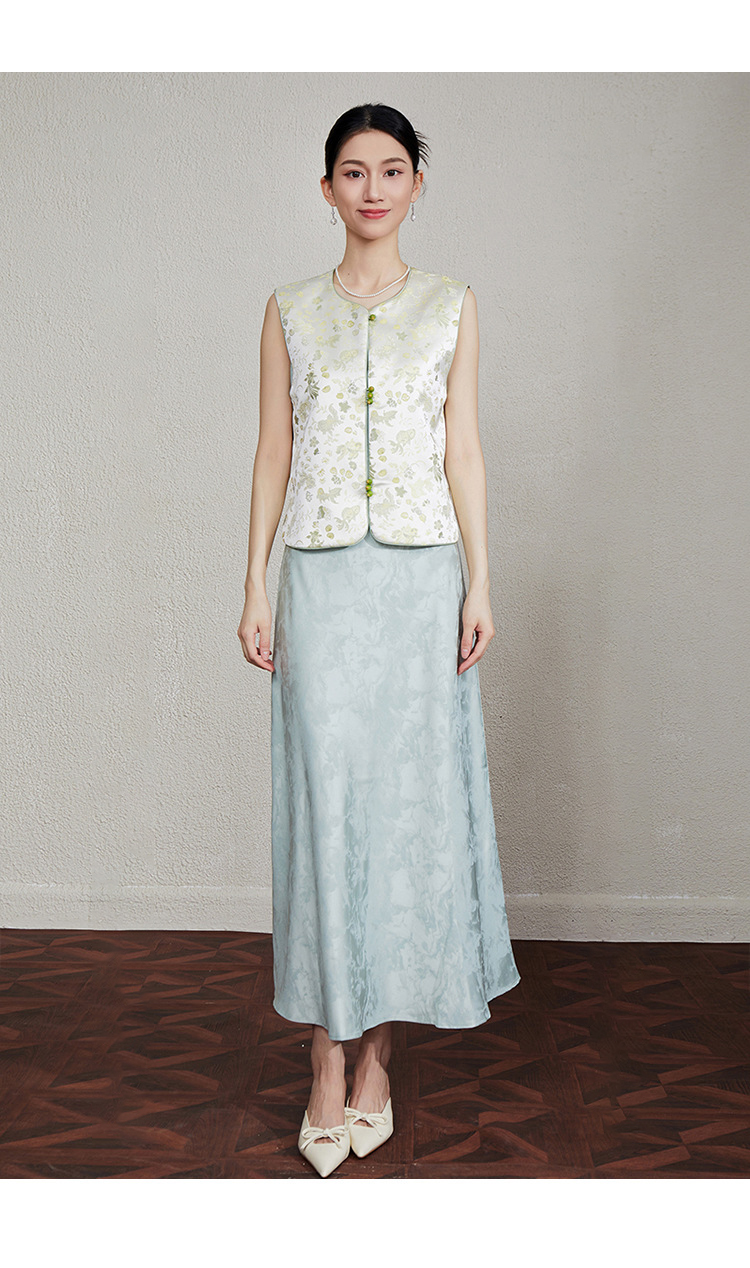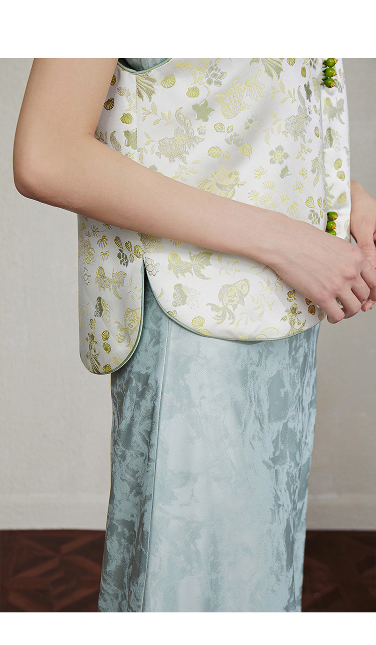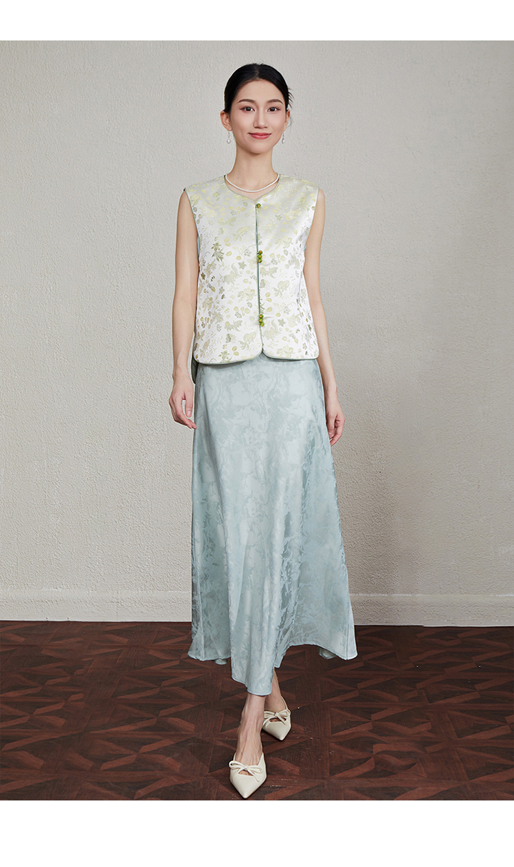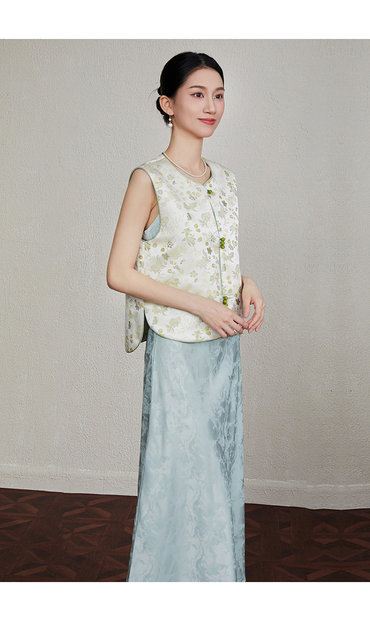「自」全新升级【铂金会员349/天猫469/差价120】(33616)洛诗琳新中式织锦提花马甲2025夏季新款复古国风马甲上衣