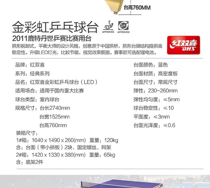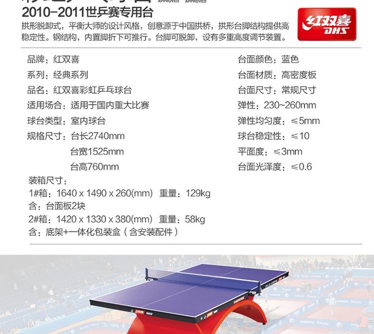 DHS红双喜金彩虹/大彩虹高档国际比赛乒乓球台兵乓球桌