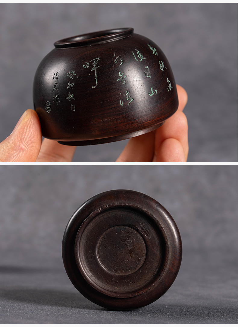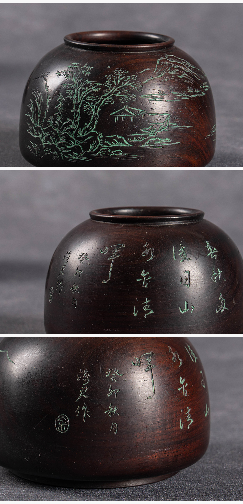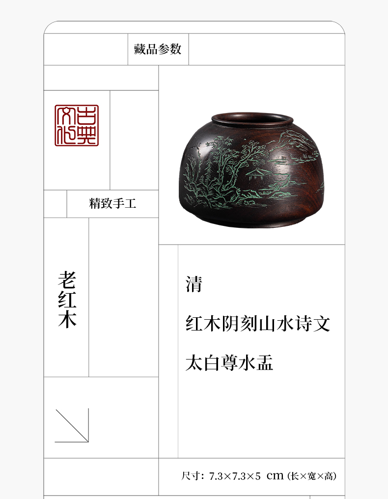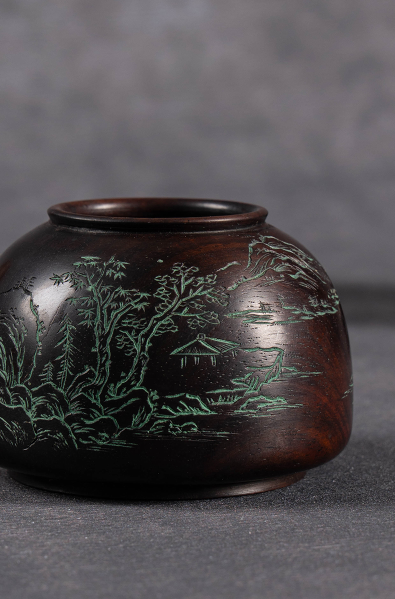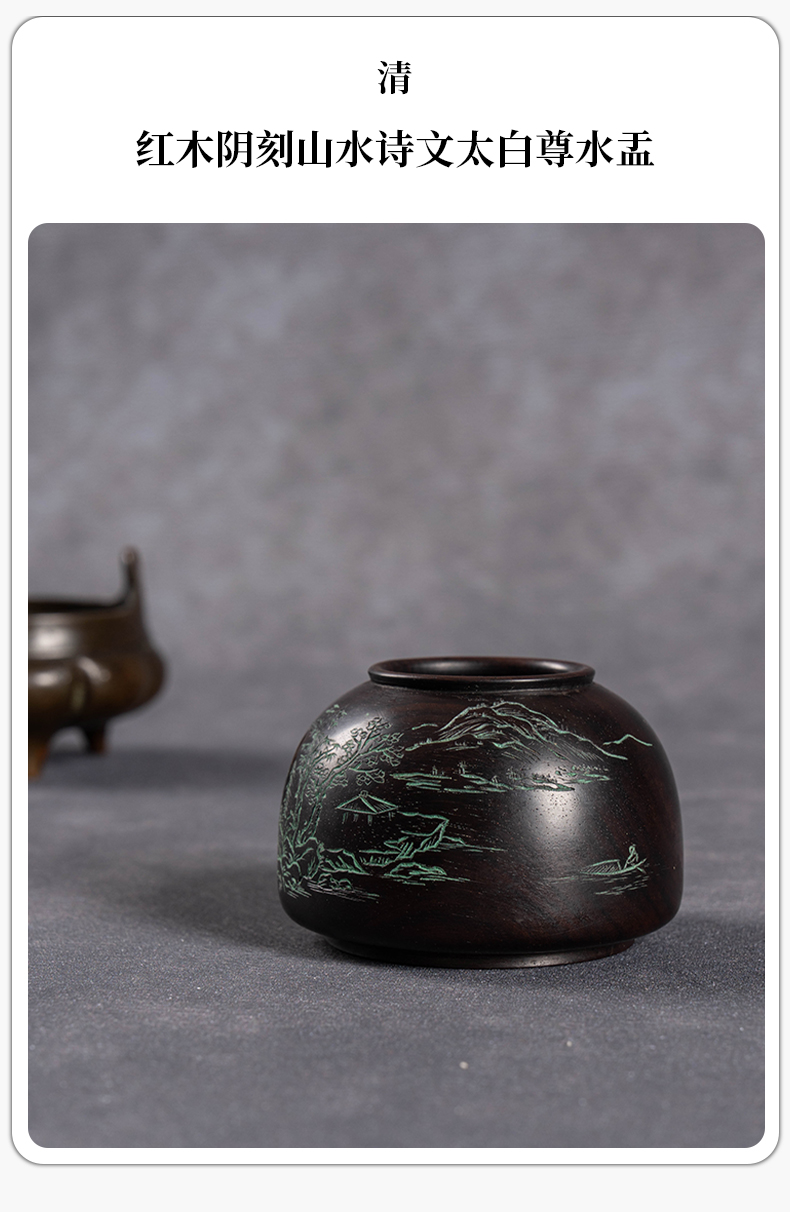 清 红木阴刻山水诗文太白尊水盂