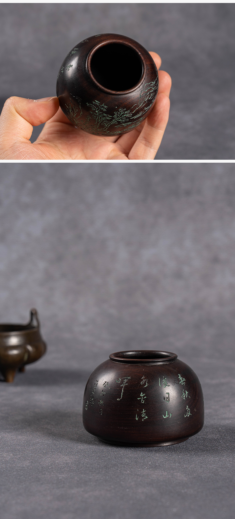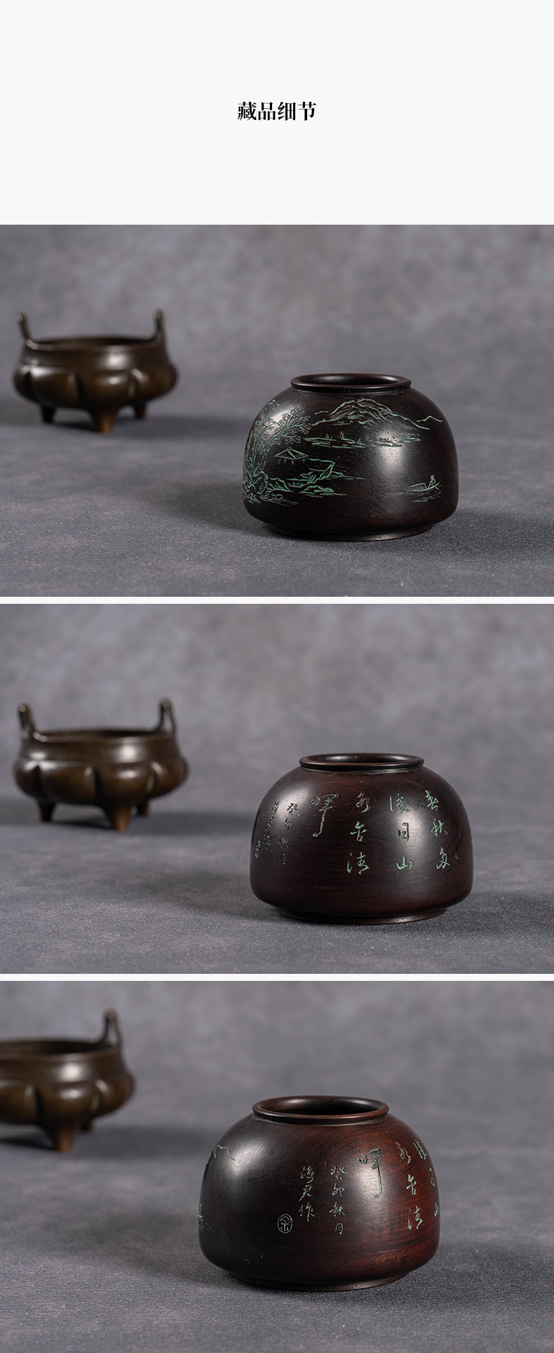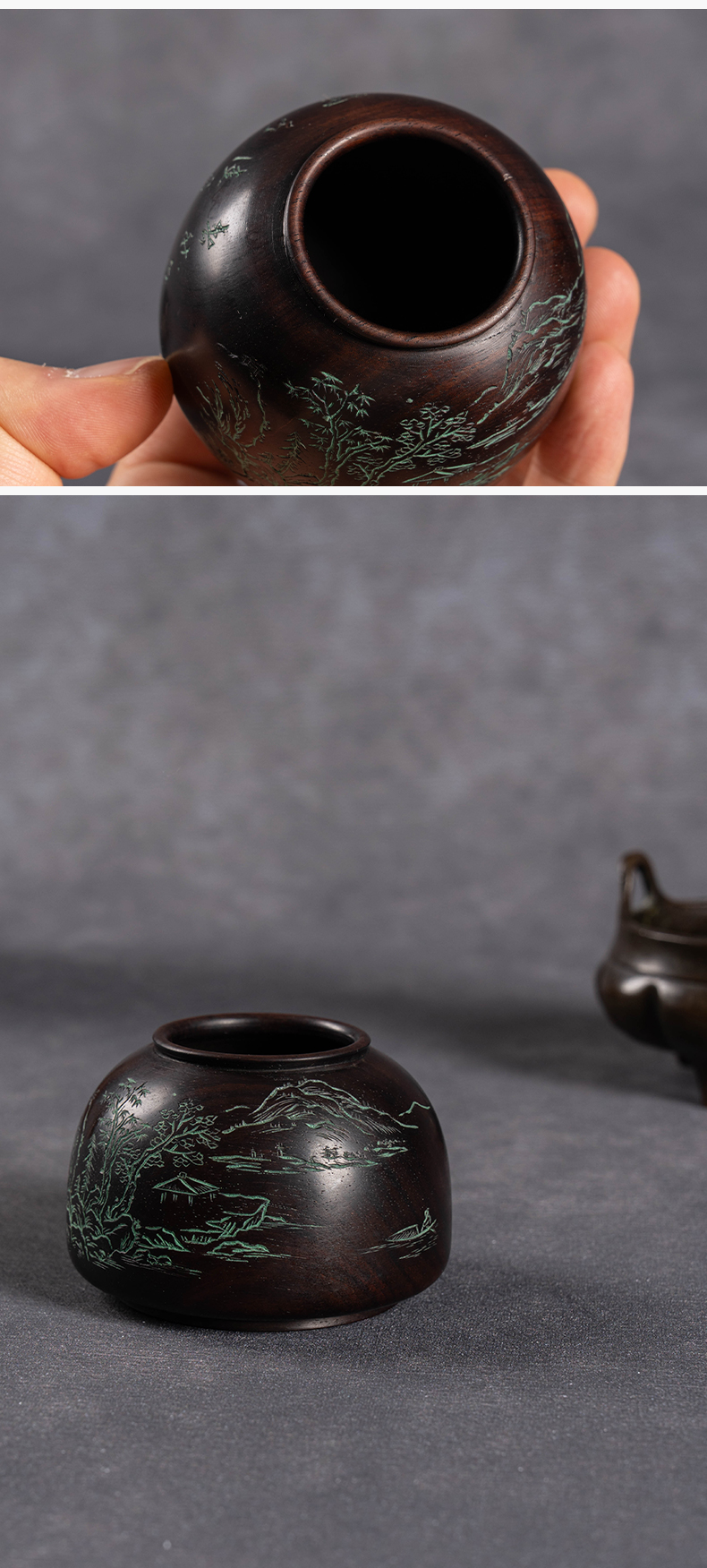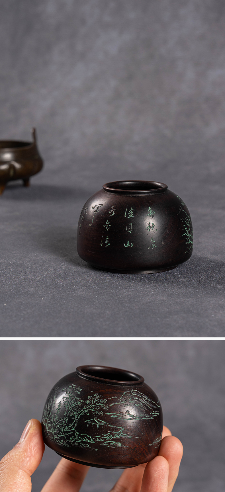 清 红木阴刻山水诗文太白尊水盂