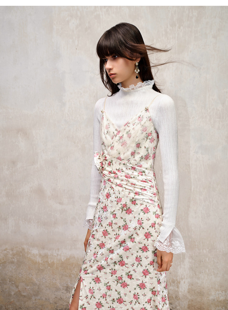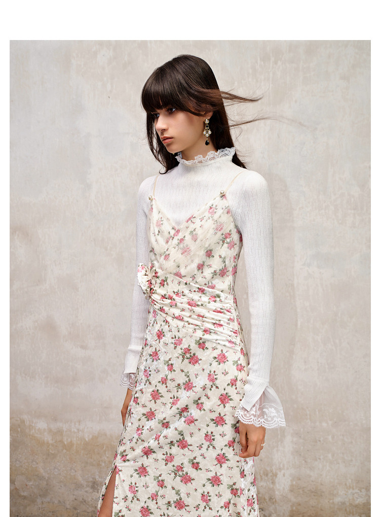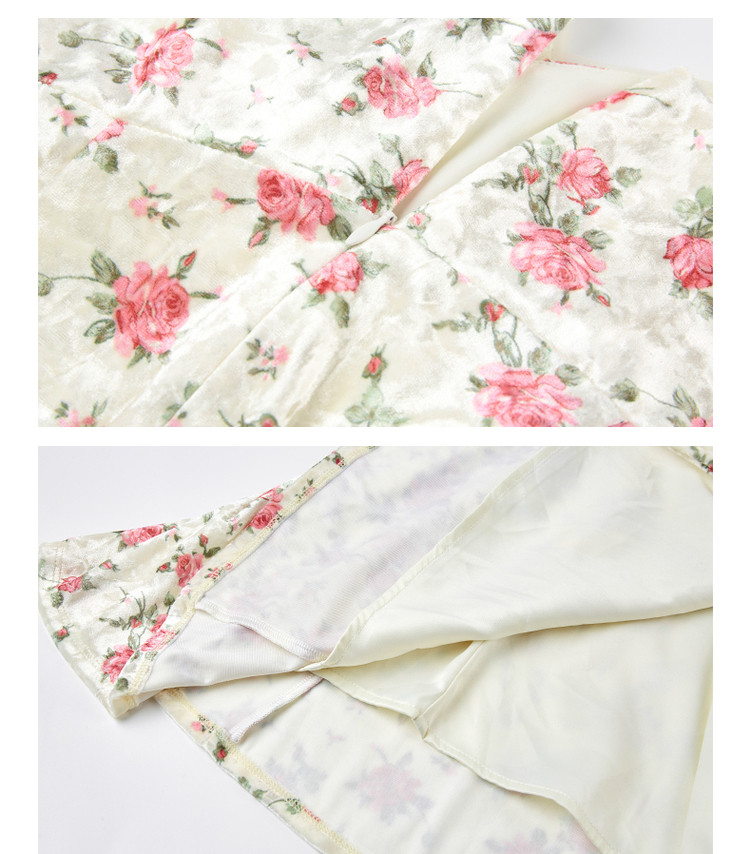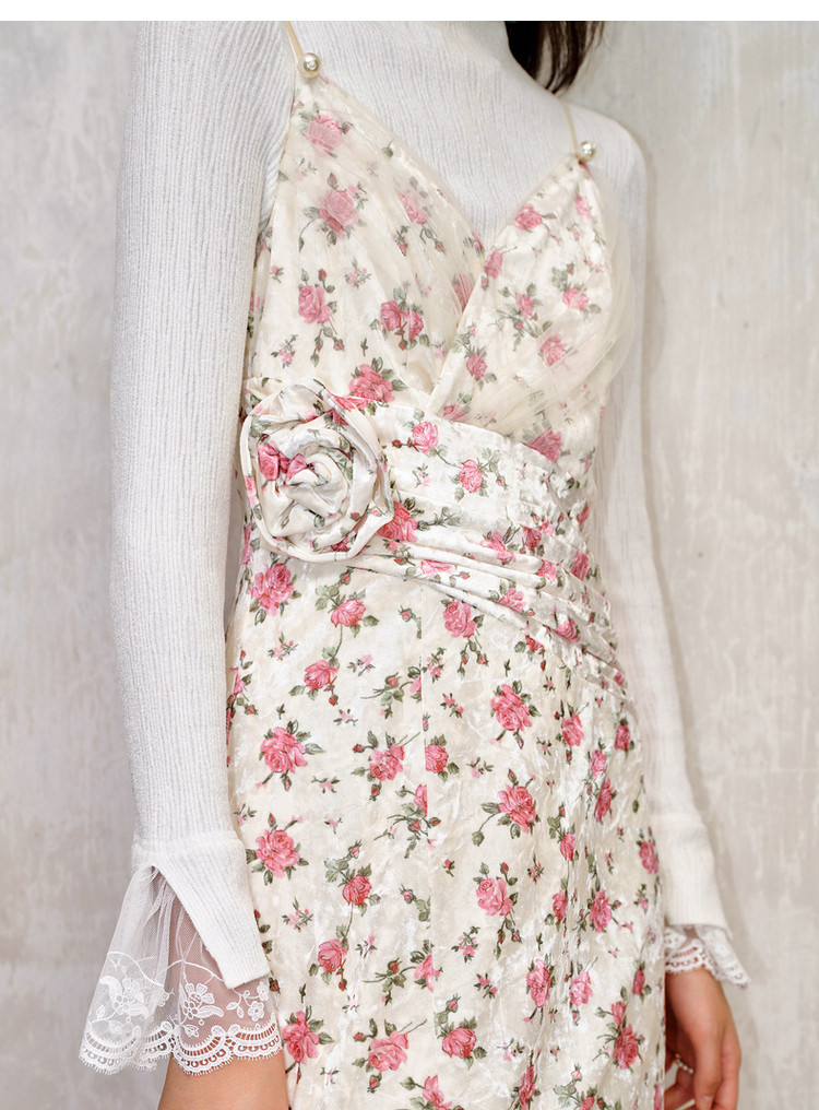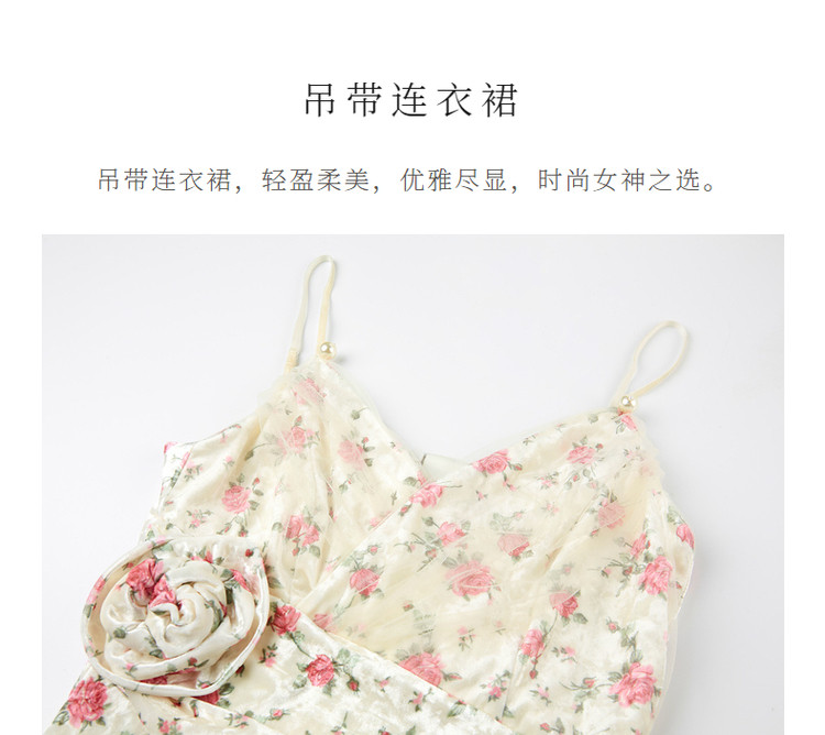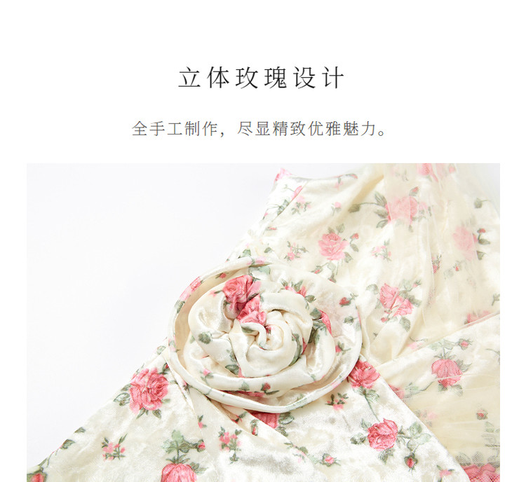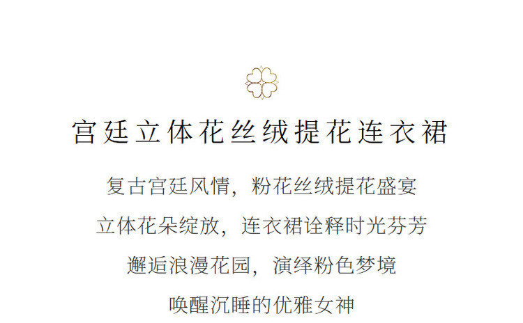 粉花宫廷复古风立体花丝绒提花连衣裙秋冬裙子
