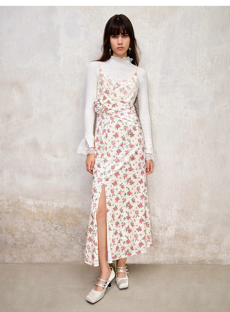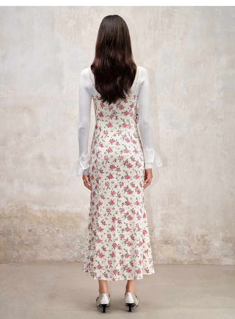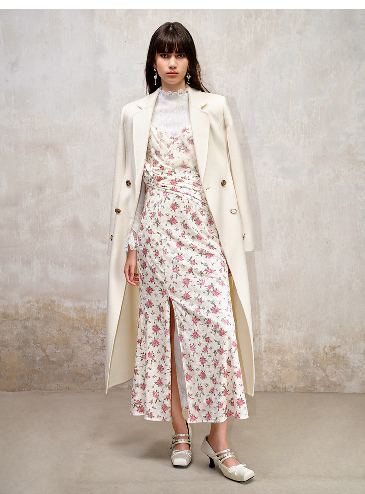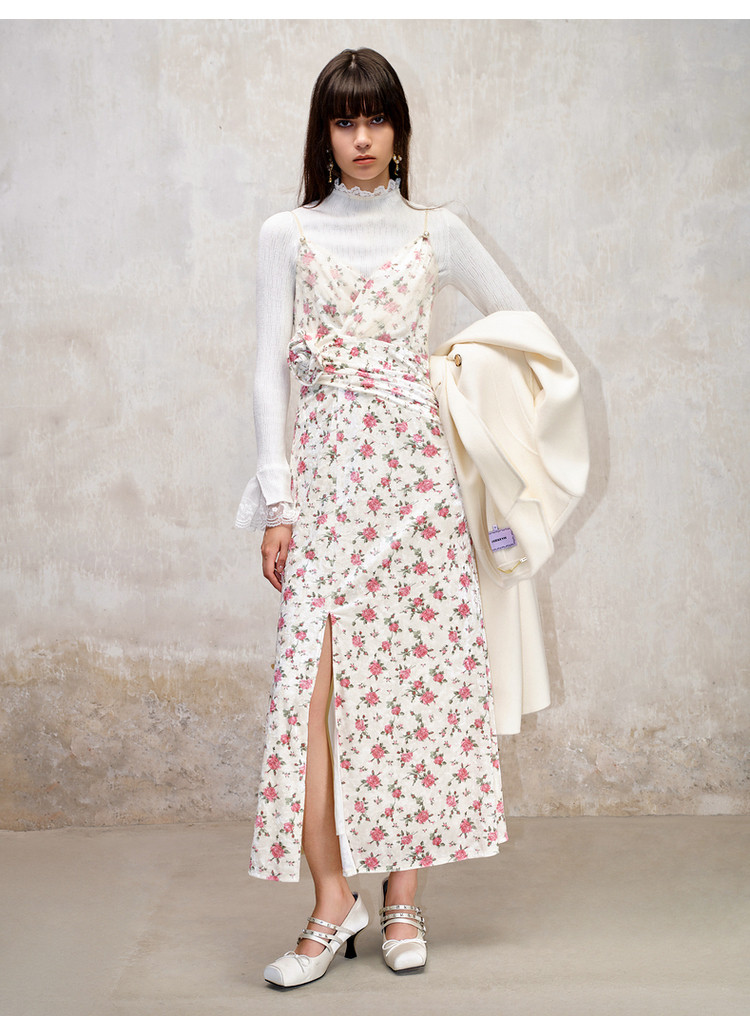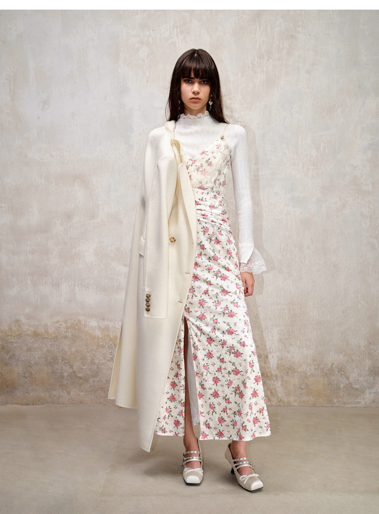 粉花宫廷复古风立体花丝绒提花连衣裙秋冬裙子