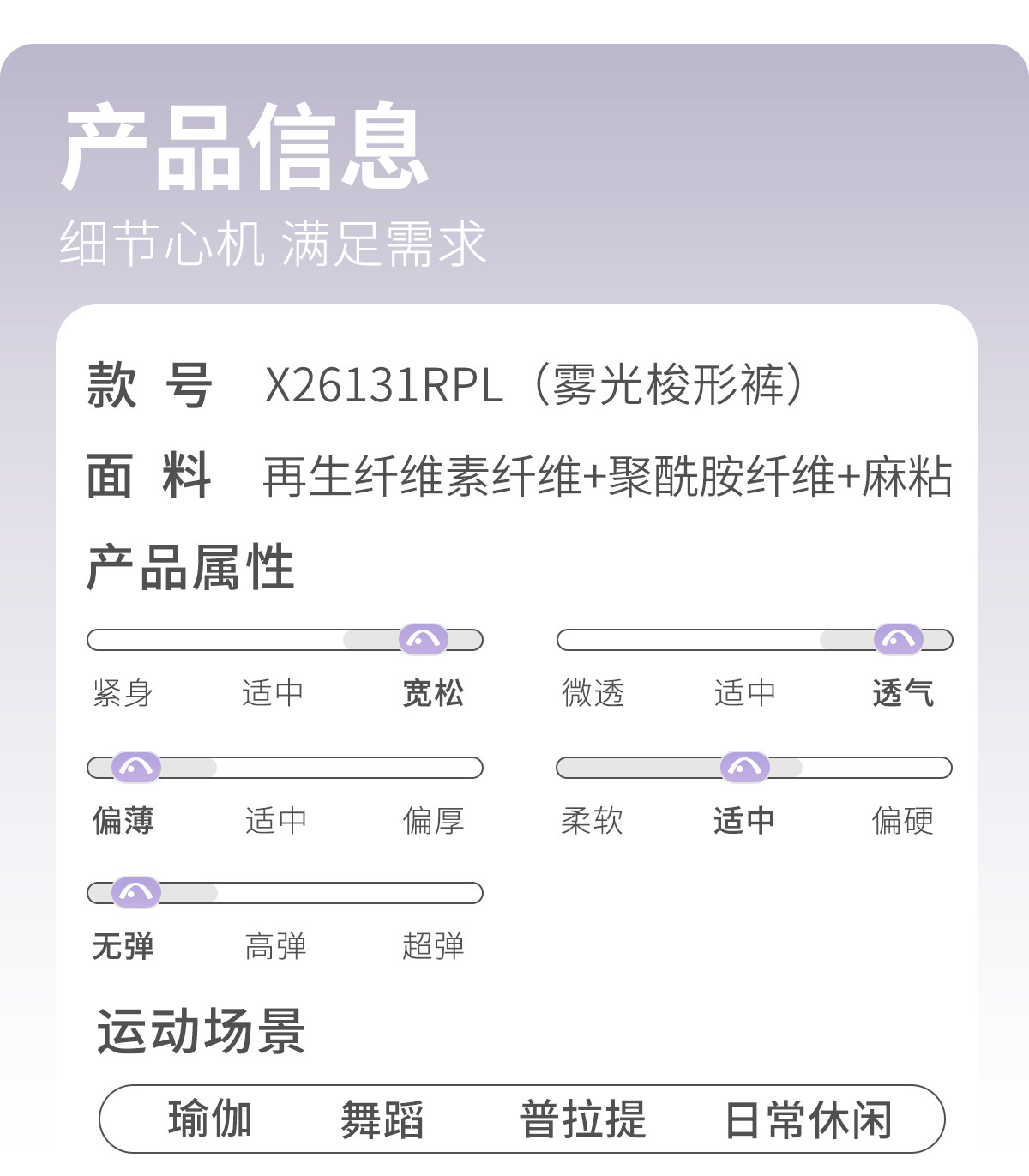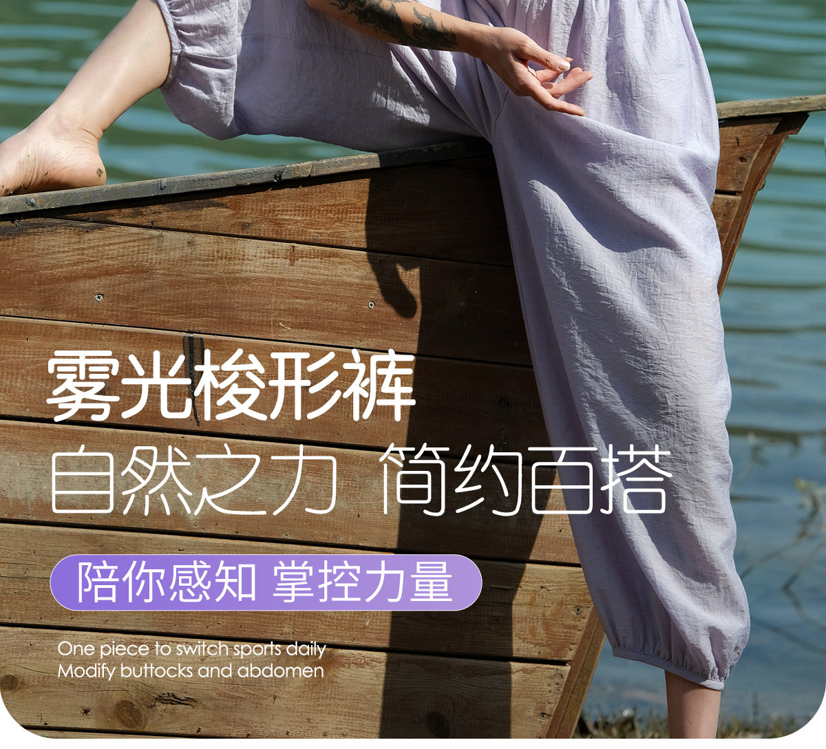 爱暇步2026春季新款内观流宽松瑜伽裤女紫色度假风萝卜灯笼裤外穿