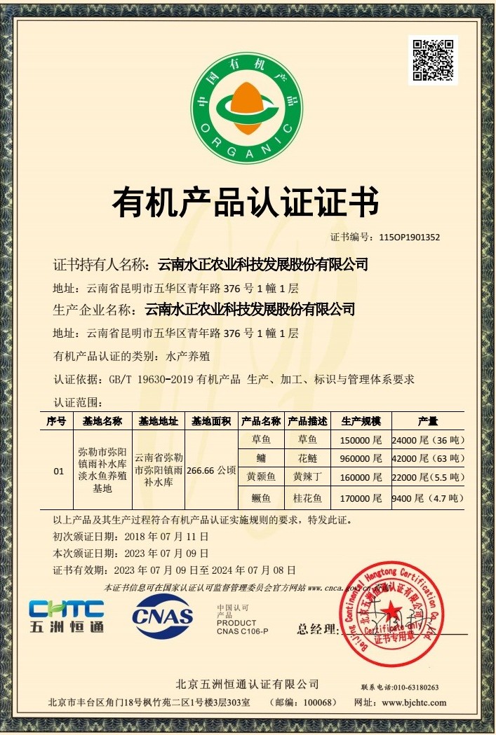 水库2018年开始投入鱼苗,养殖过程不投肥、不喂药、不带来任何人工污染;鱼儿们基本等同于在野生环境中生长,2019年开始每年都获得了国家的水产养殖有机认证。青鱼不是主要产出的品种,所以没有做认证,但都是同一个水库里的鱼,生产方式自然是一样的。
