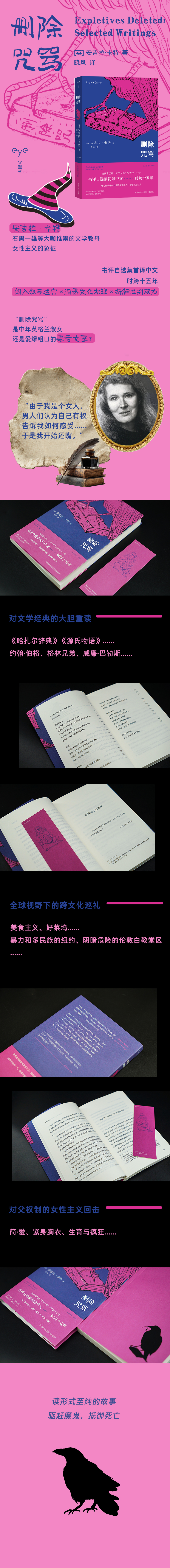 她将自己十五年来写作的大量书评选编为文集《删除咒骂》,其中涉及的主题五花八门:叙事、文化、女性……从《哈扎尔辞典》到《爱尔兰民间故事》,从《简·爱》到《源氏物语》,从“美食主义”到好莱坞,从正在消亡的农民生活到紧身胸衣背后的性别权力关系,卡特以她一贯的锐利与大胆,洞悉一切,拆解一切。这里没有乏味的文学评论,只有一场流动的盛宴,关于让我们看得更清楚、给我们带来乐趣的作家们。