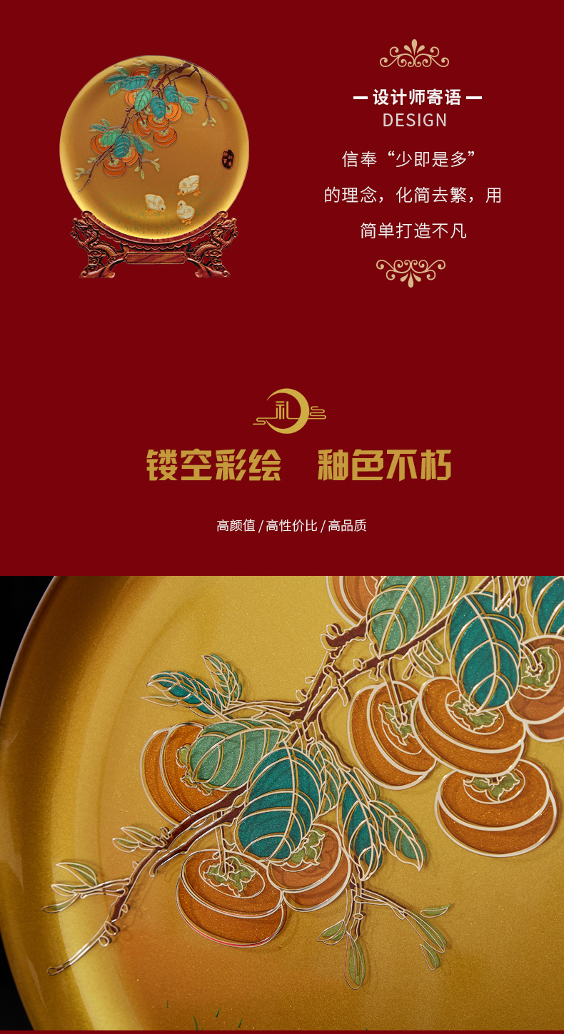 【彼达思】雅琅晶事事如意柿子摆件工艺品新中式客厅办公室装乔迁之喜装饰品