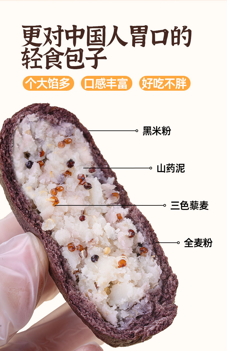 【减脂期放心吃的粗粮包子】头厨黑米藜麦山药包 软糯有嚼劲 一口超满足