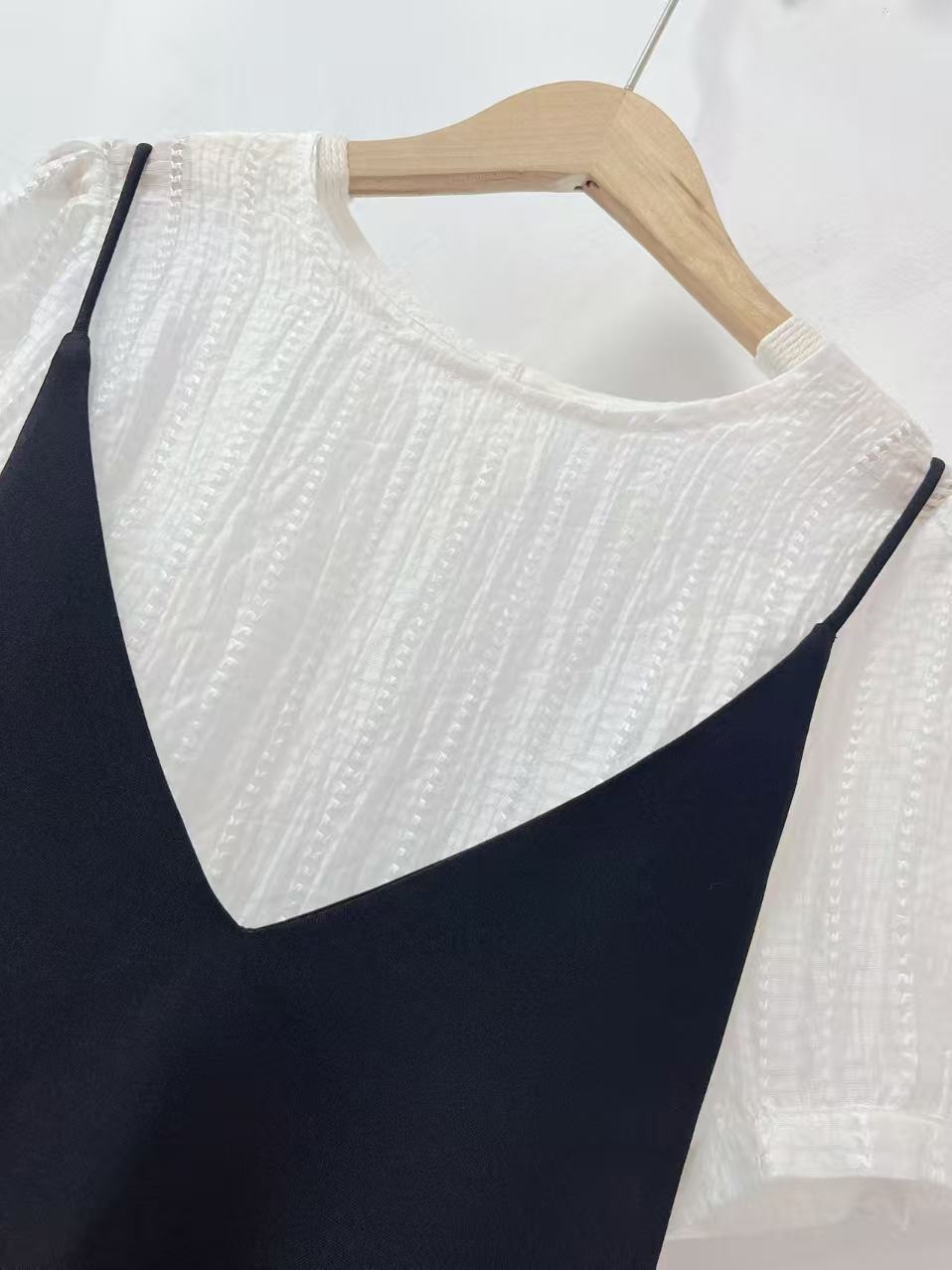 冰点价!仅限11.11!退货勿拍(不支持退)古泥(套装)7203短袖小衫➕吊带裙两件套-喜出