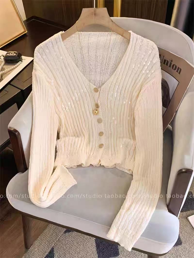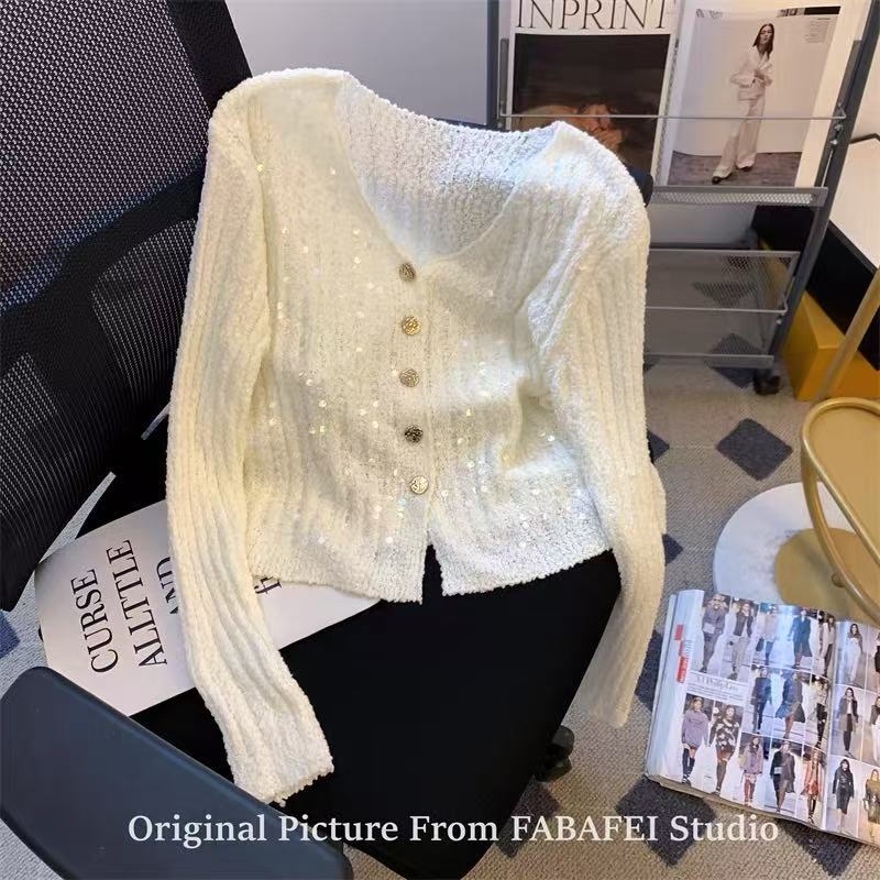 【孤品捡漏】G46白色亮片针织修身开衫-喜出