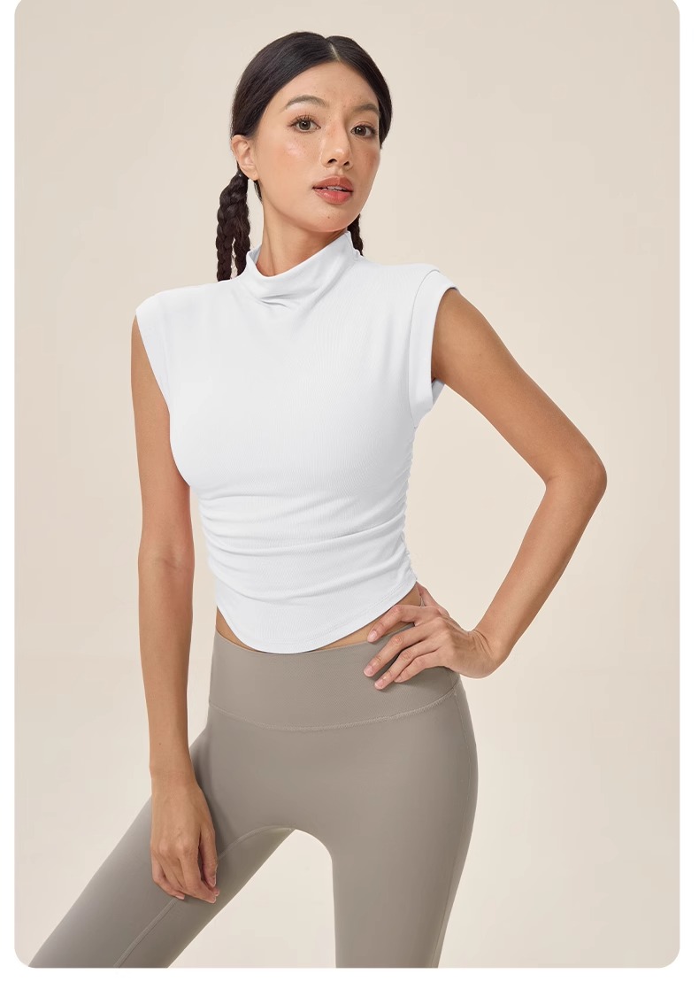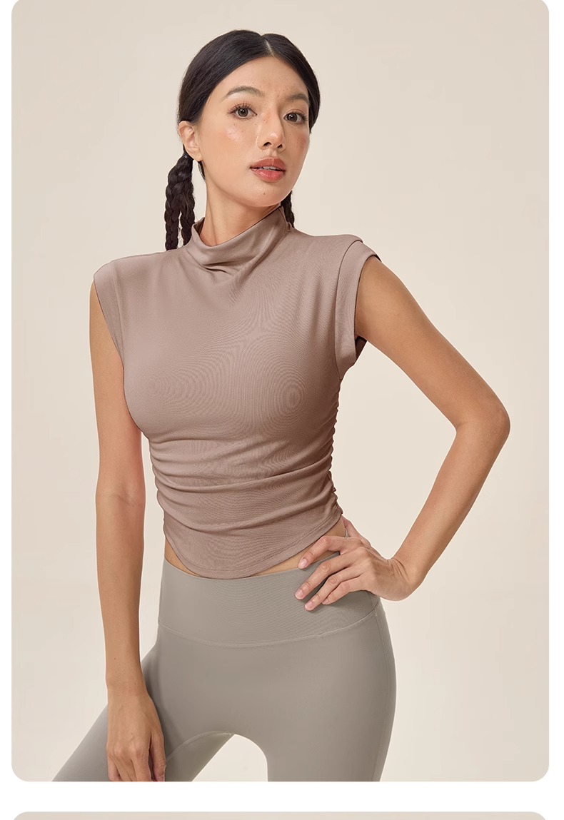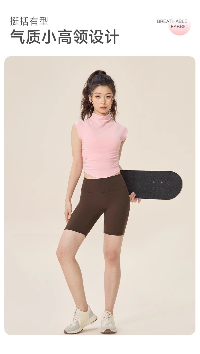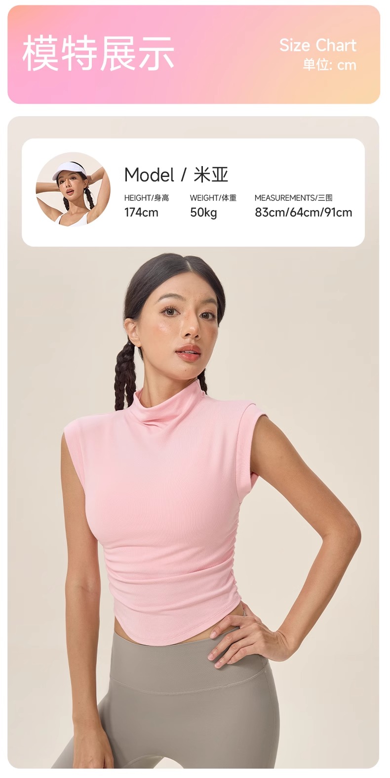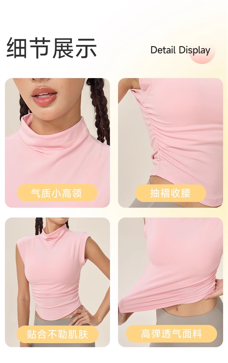 跃牌【欲动春风】系列 不规则半高领无袖瑜伽t恤女透气运动背心短款上衣52253