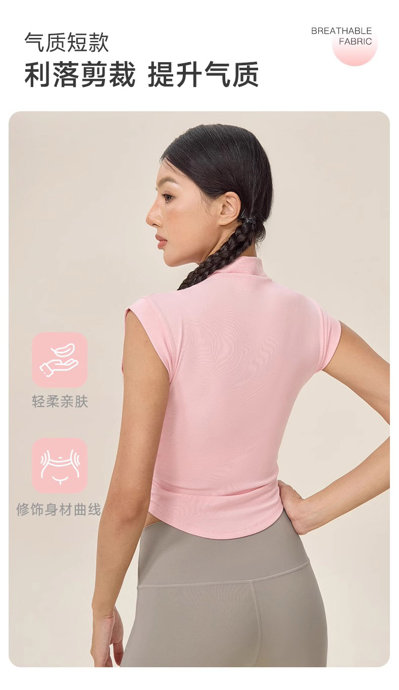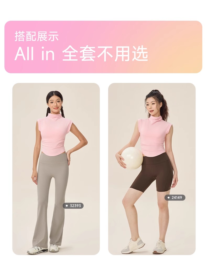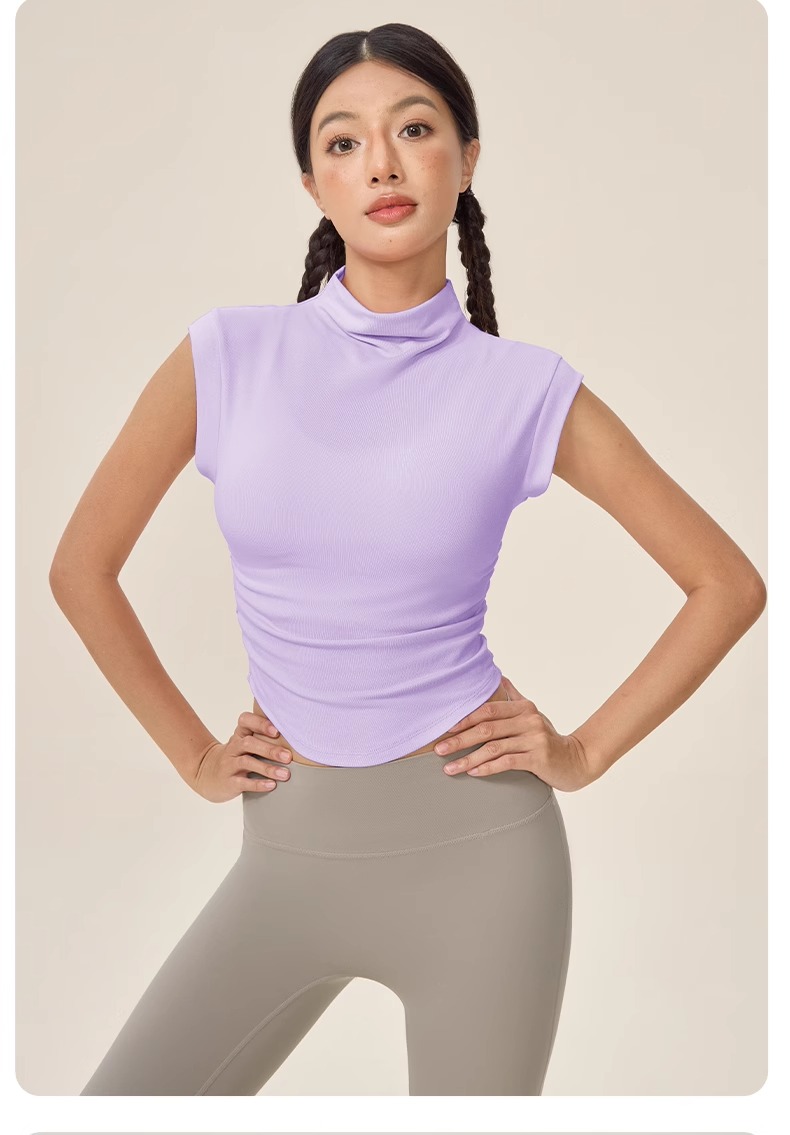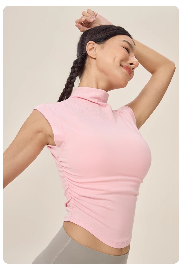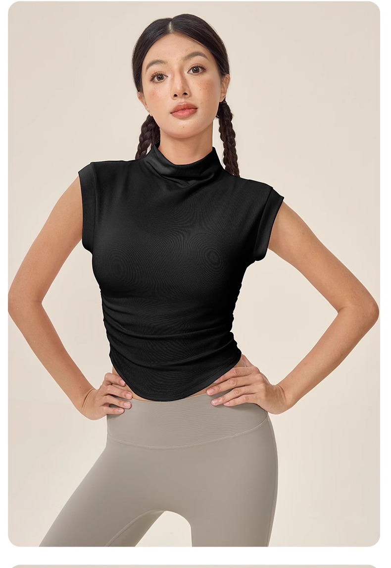 跃牌【欲动春风】系列 不规则半高领无袖瑜伽t恤女透气运动背心短款上衣52253