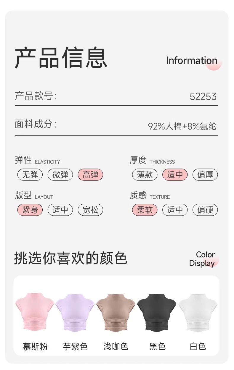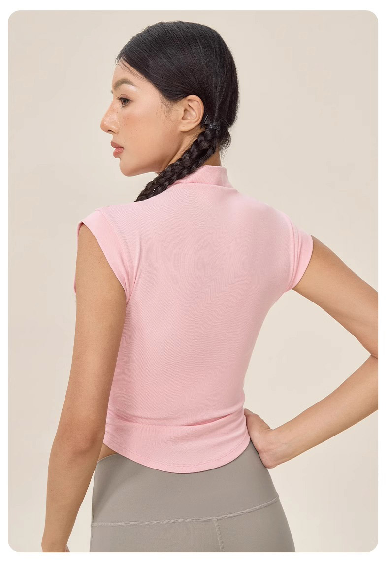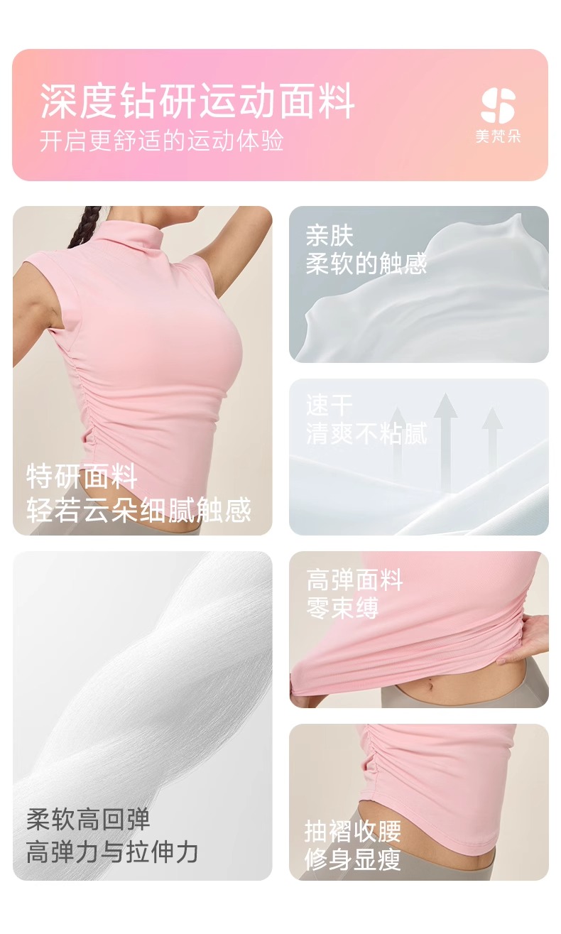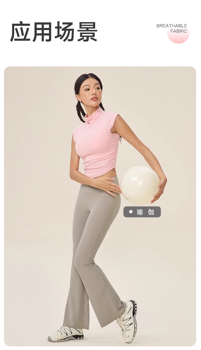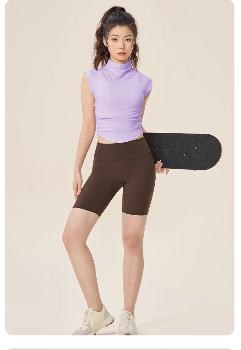 跃牌【欲动春风】系列 不规则半高领无袖瑜伽t恤女透气运动背心短款上衣52253