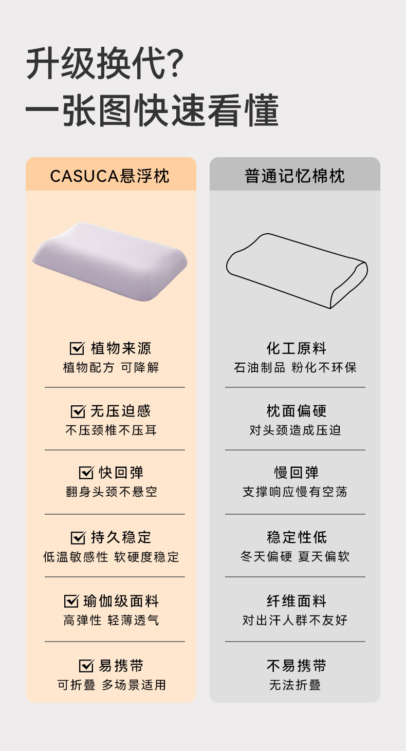 CASUCA 生物基枕头护颈椎悬浮枕零压力记忆棉高低枕头