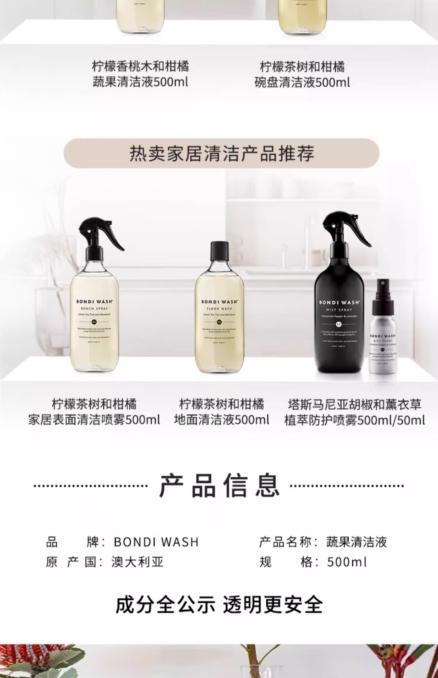 Bondi Wash 「用植萃的力量守护健康 食品级水果蔬菜专用清洁天然去农残澳洲进口 」-蔬果清洁液 500ml