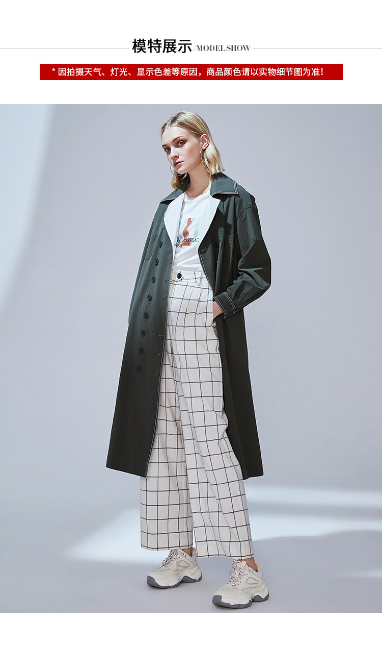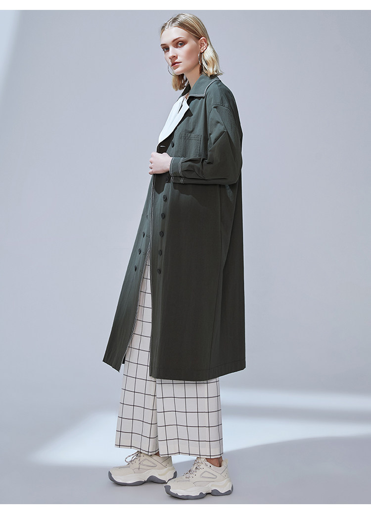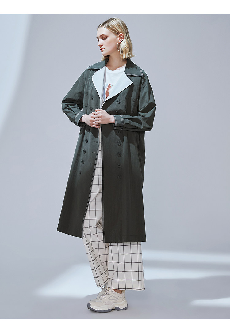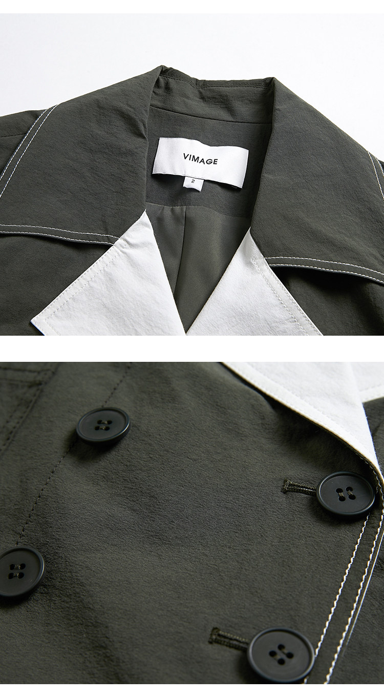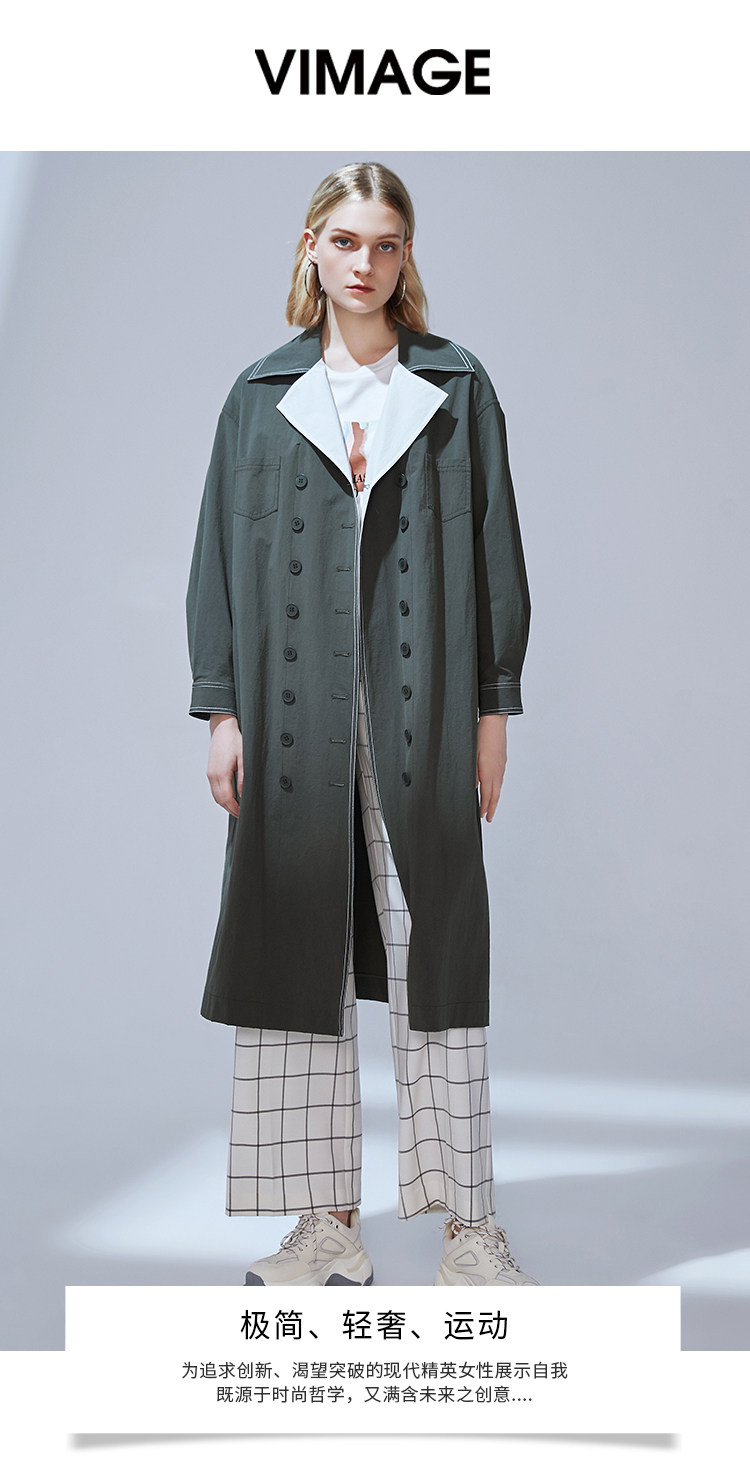 VIMAGE纬漫纪品牌女装秋款经典翻领双排扣宽松风衣外套V1404001