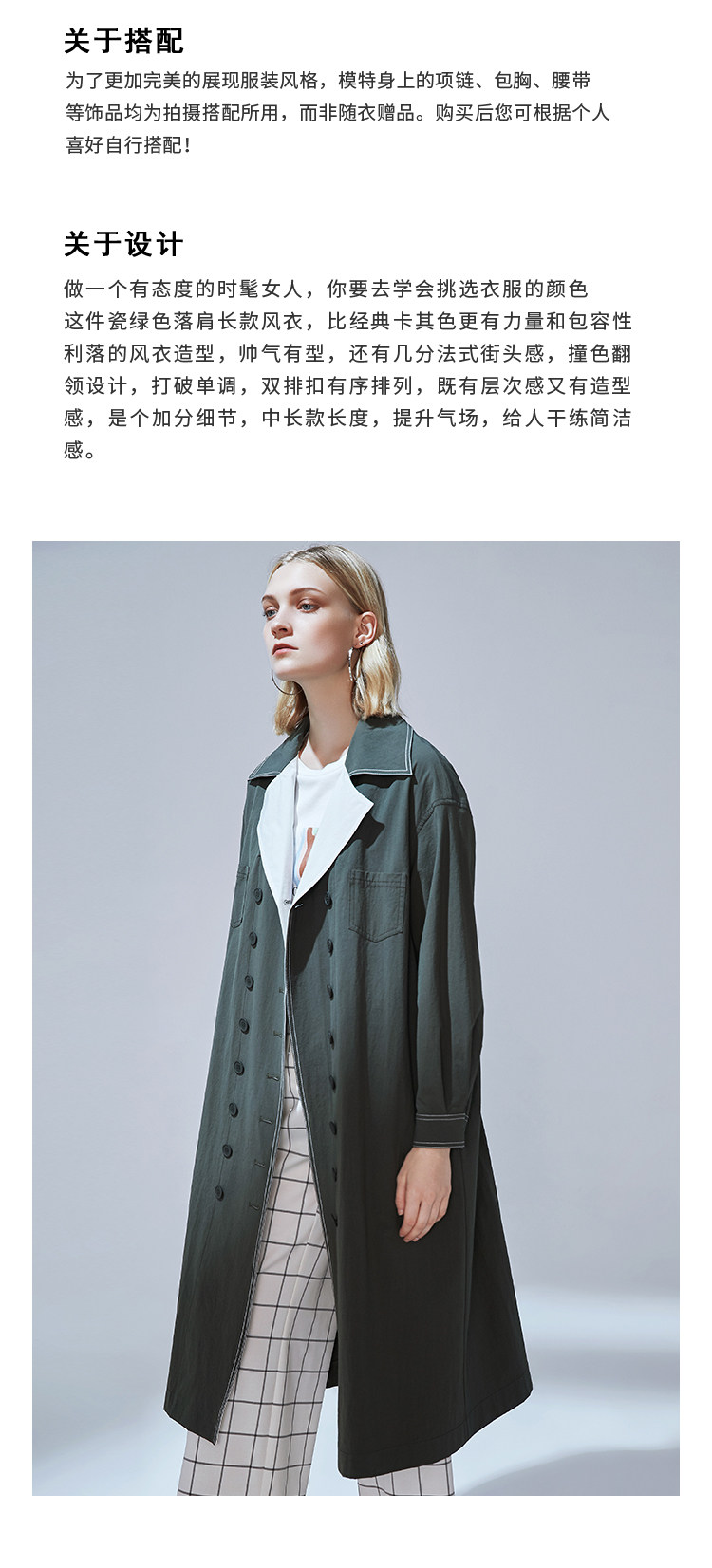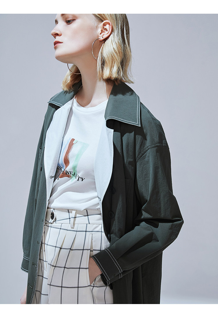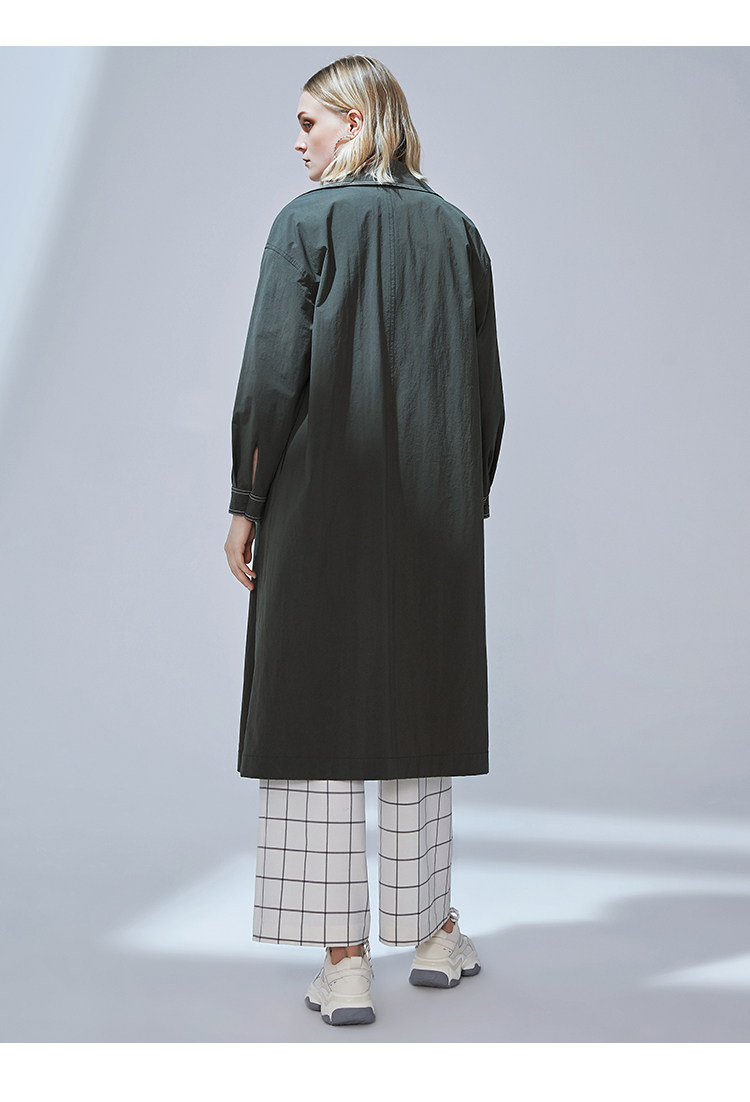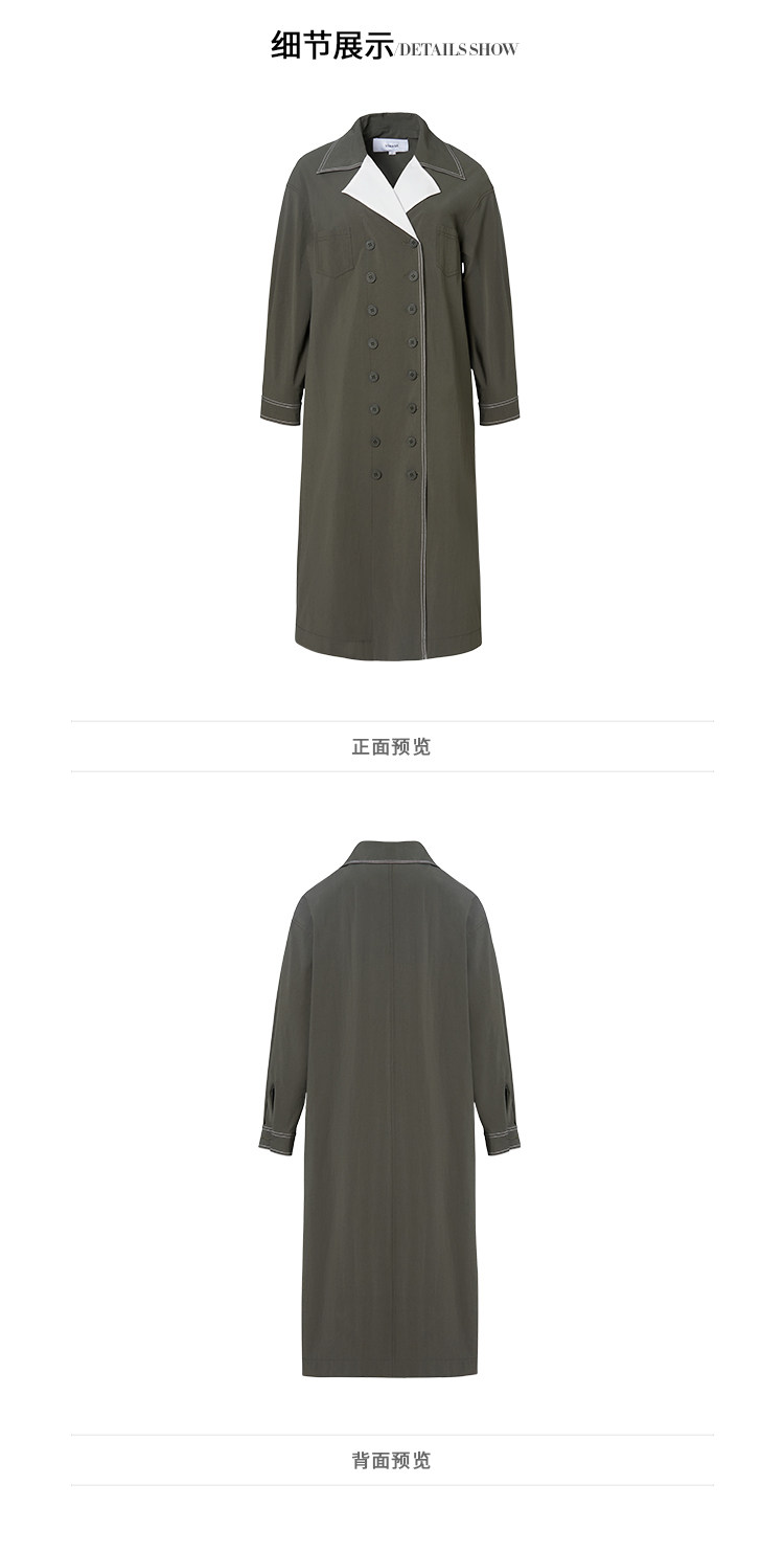 VIMAGE纬漫纪品牌女装秋款经典翻领双排扣宽松风衣外套V1404001