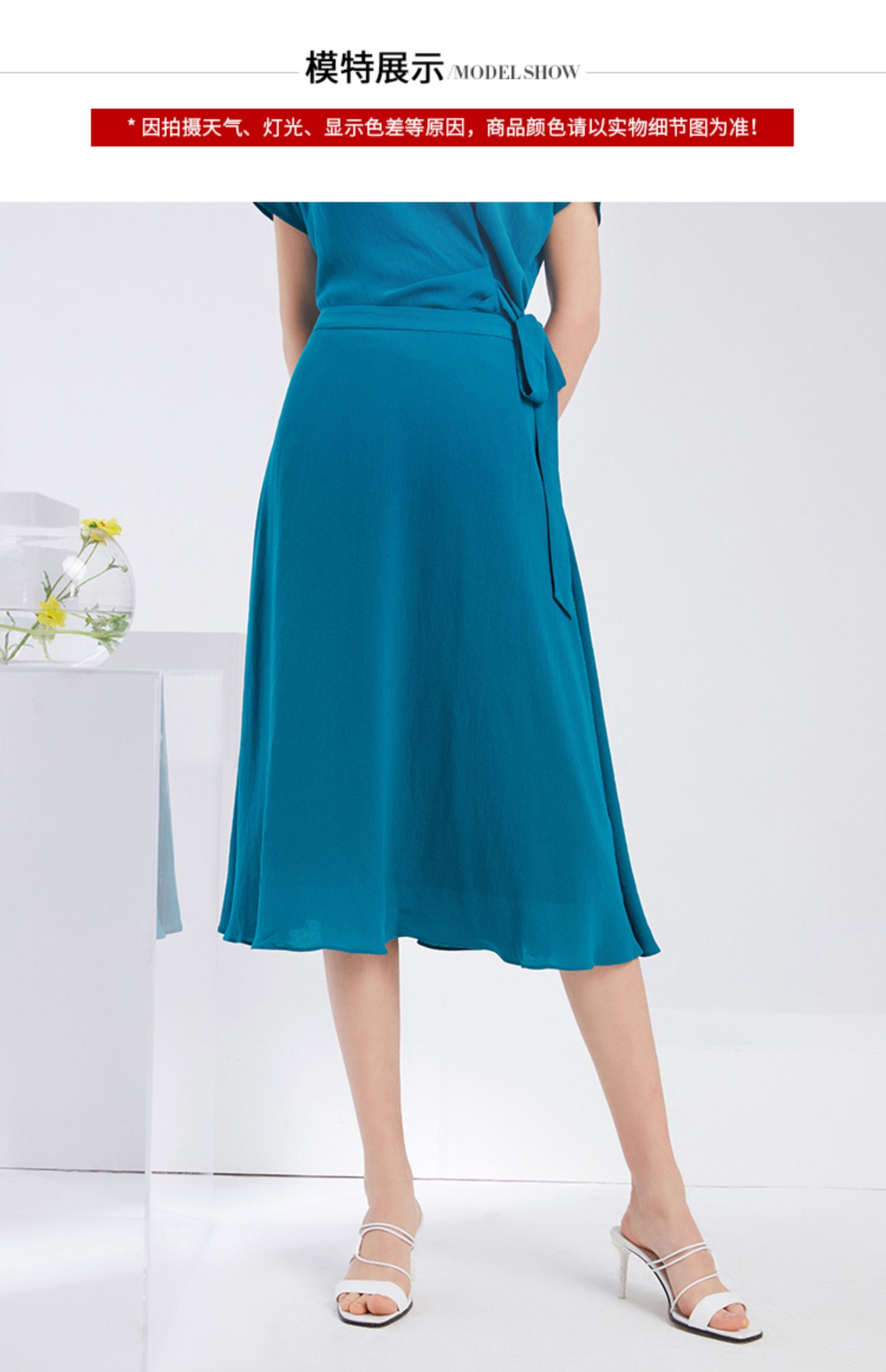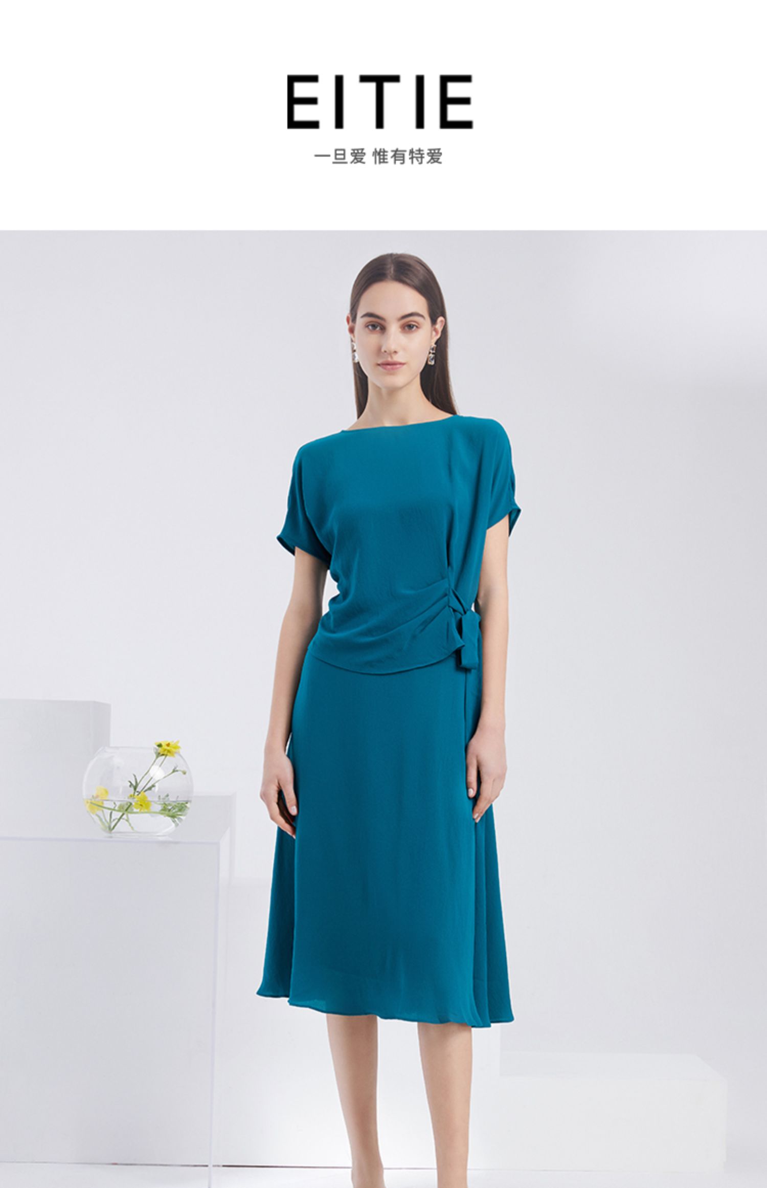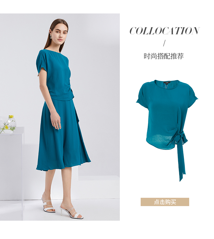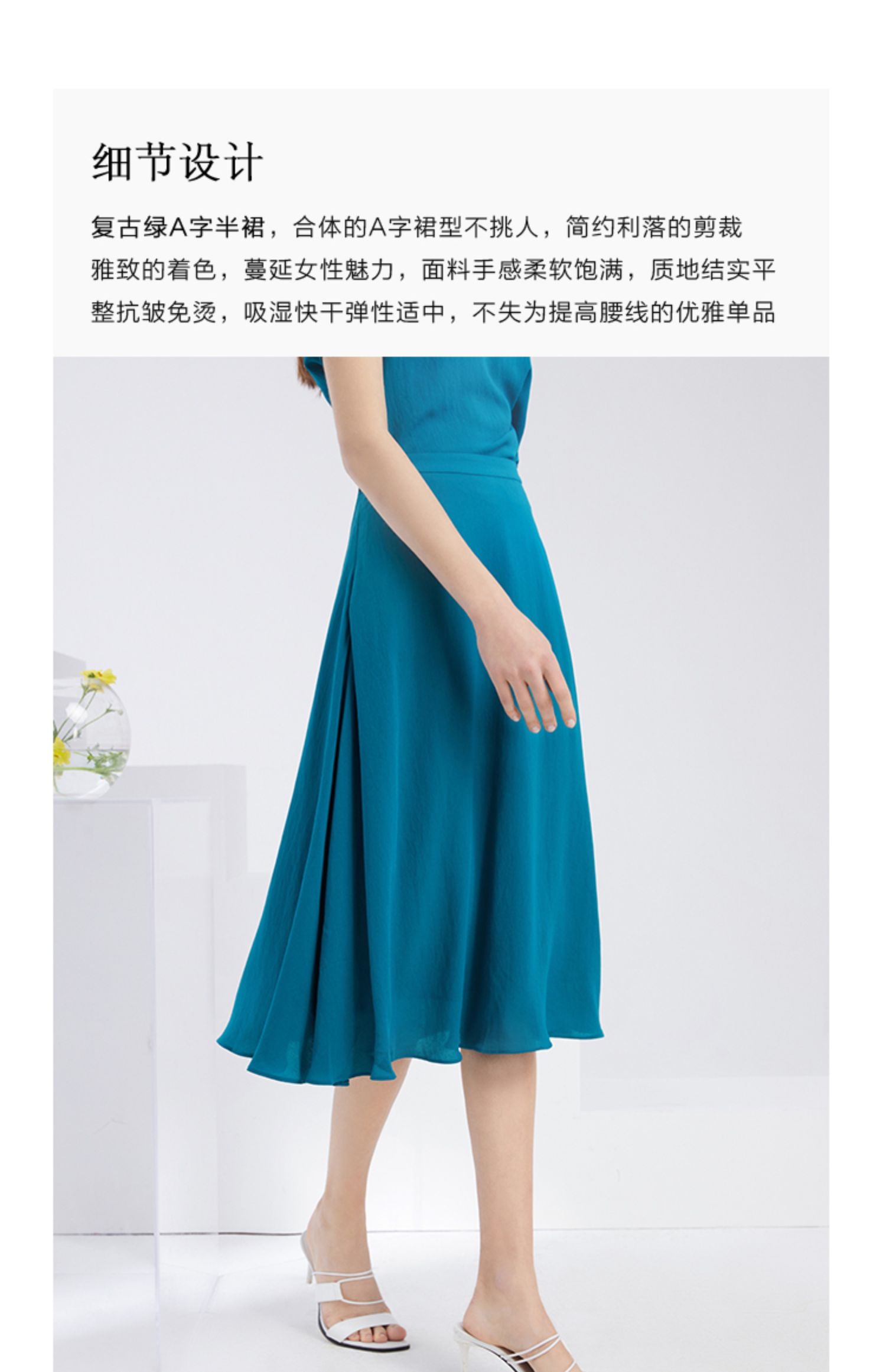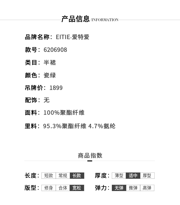 EITIE爱特爱夏季新款时尚气质通勤显瘦百搭垂坠A字中腰半身裙6206908