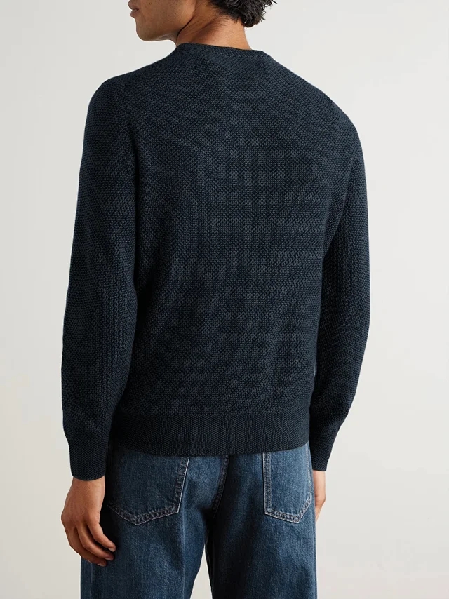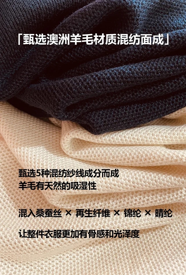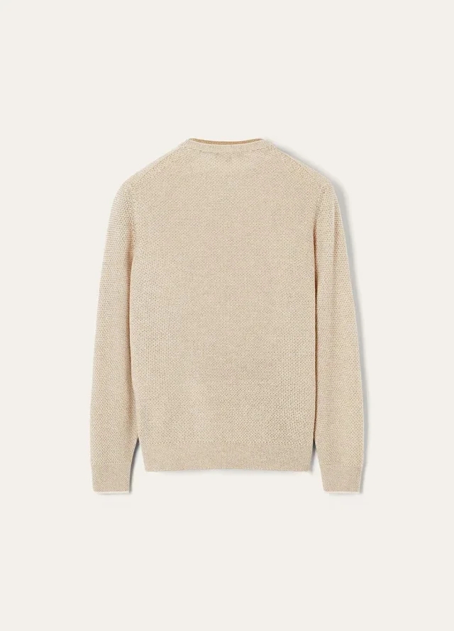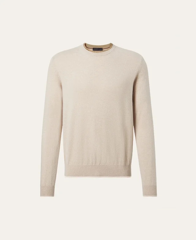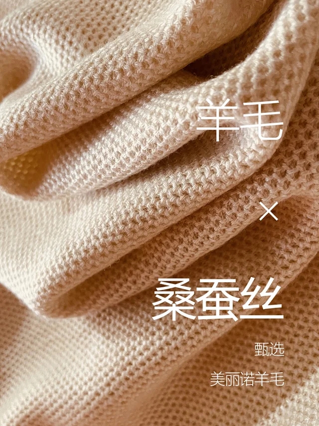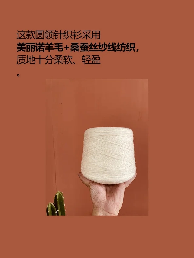 这款圆领针织衫采用美丽诺羊毛纱线和桑蚕丝混纺而成,