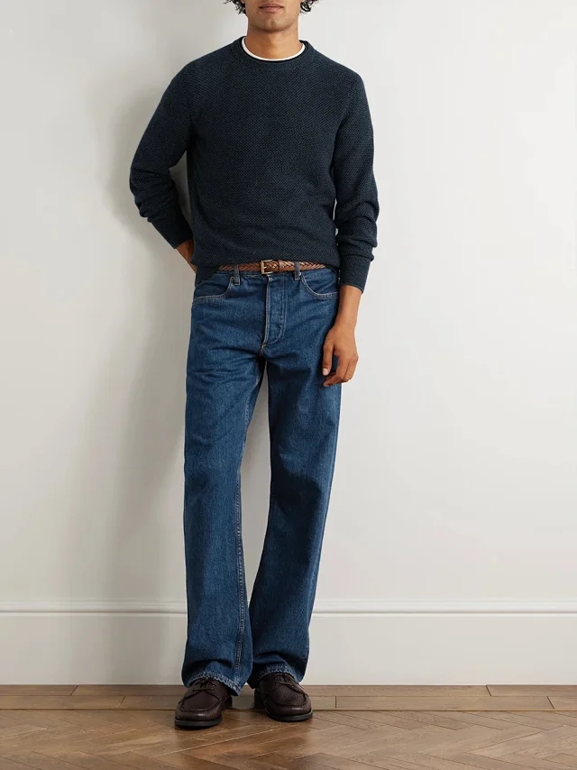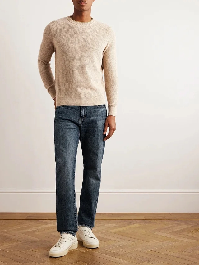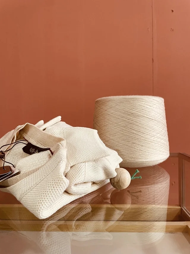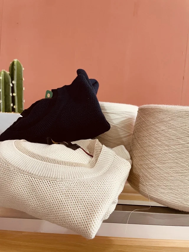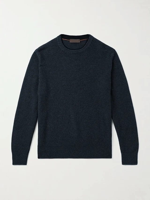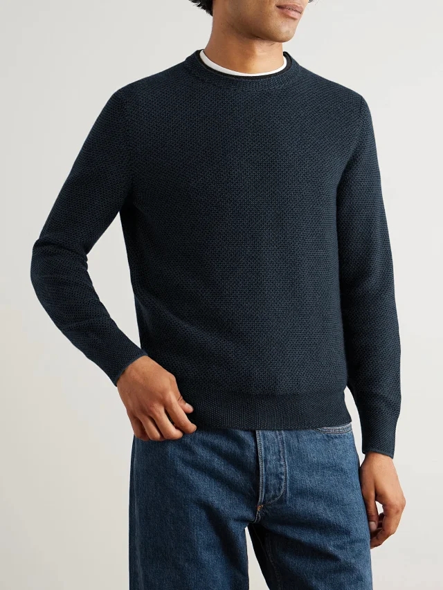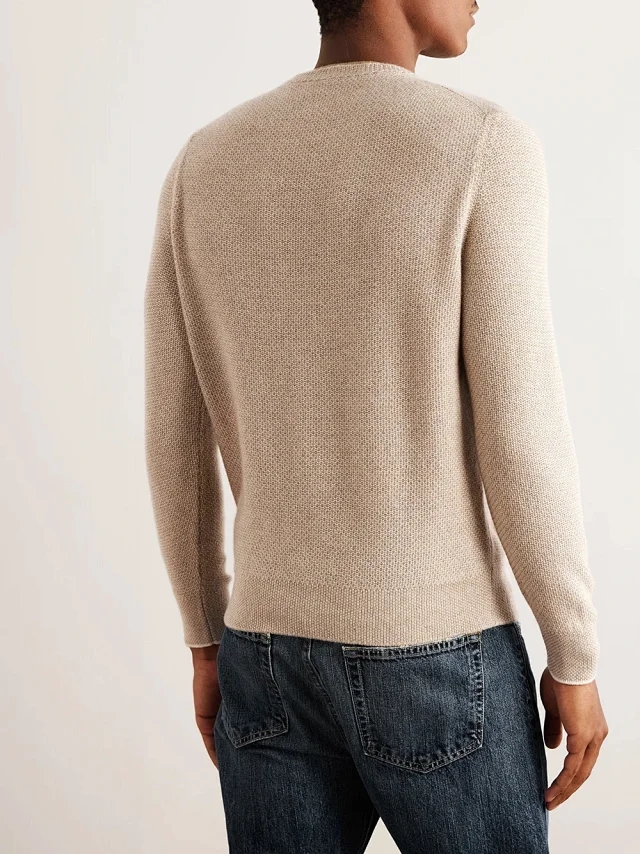 这款圆领针织衫采用美丽诺羊毛纱线和桑蚕丝混纺而成,