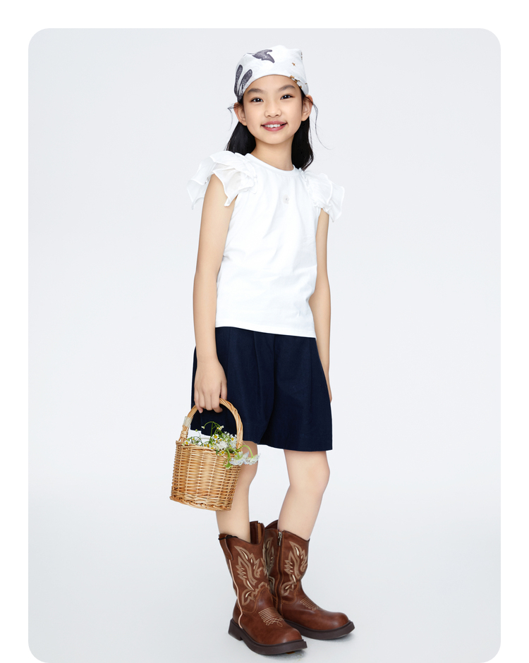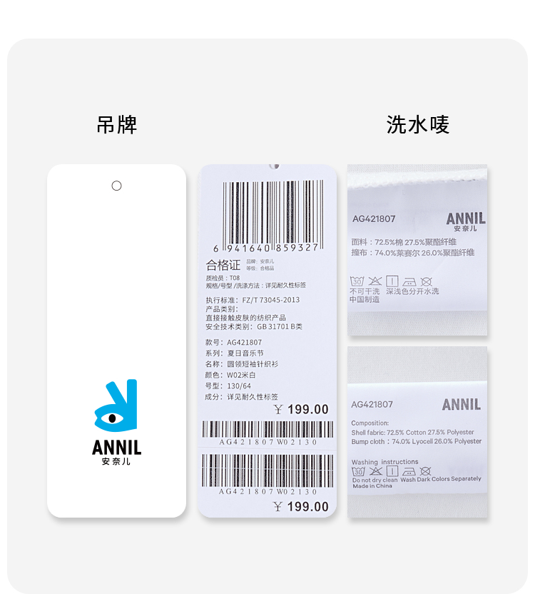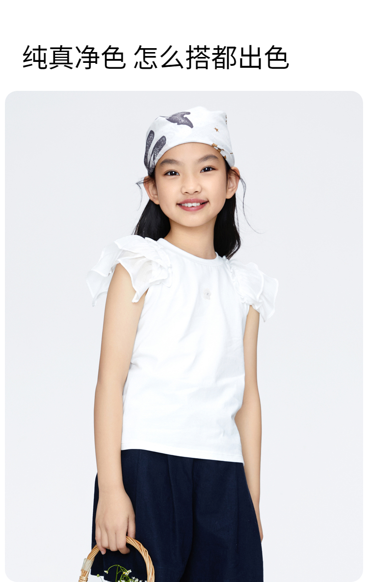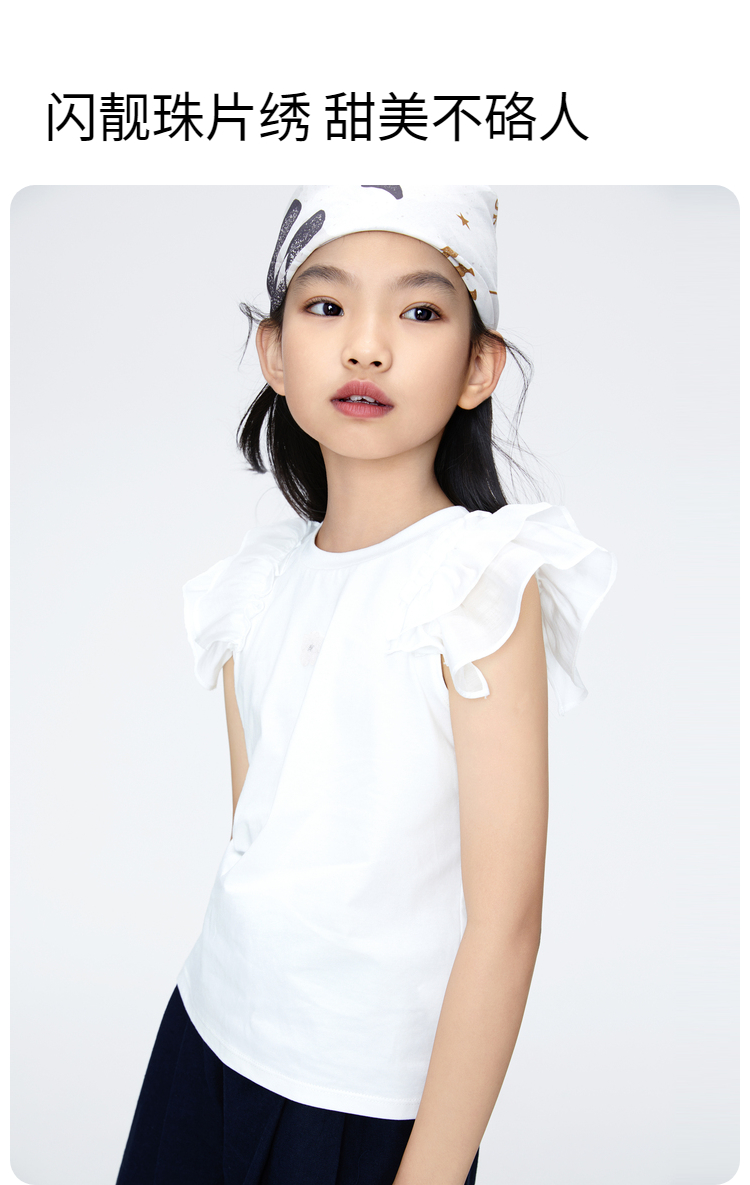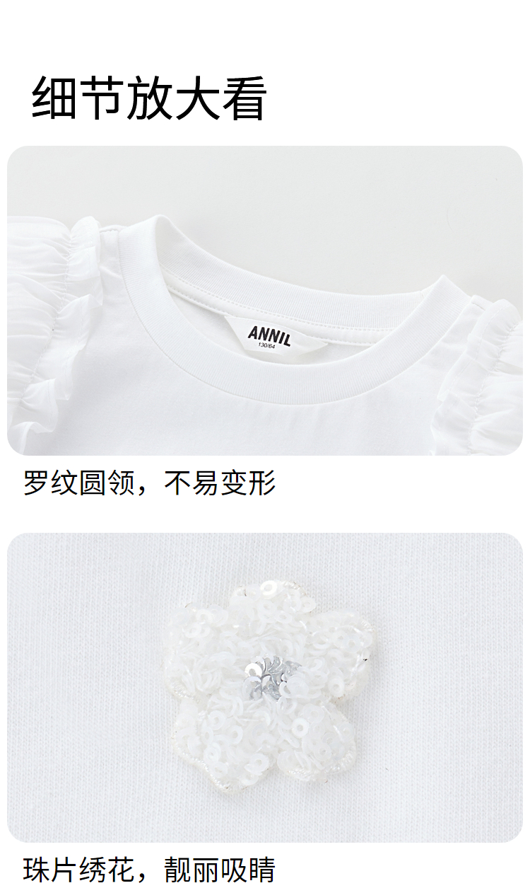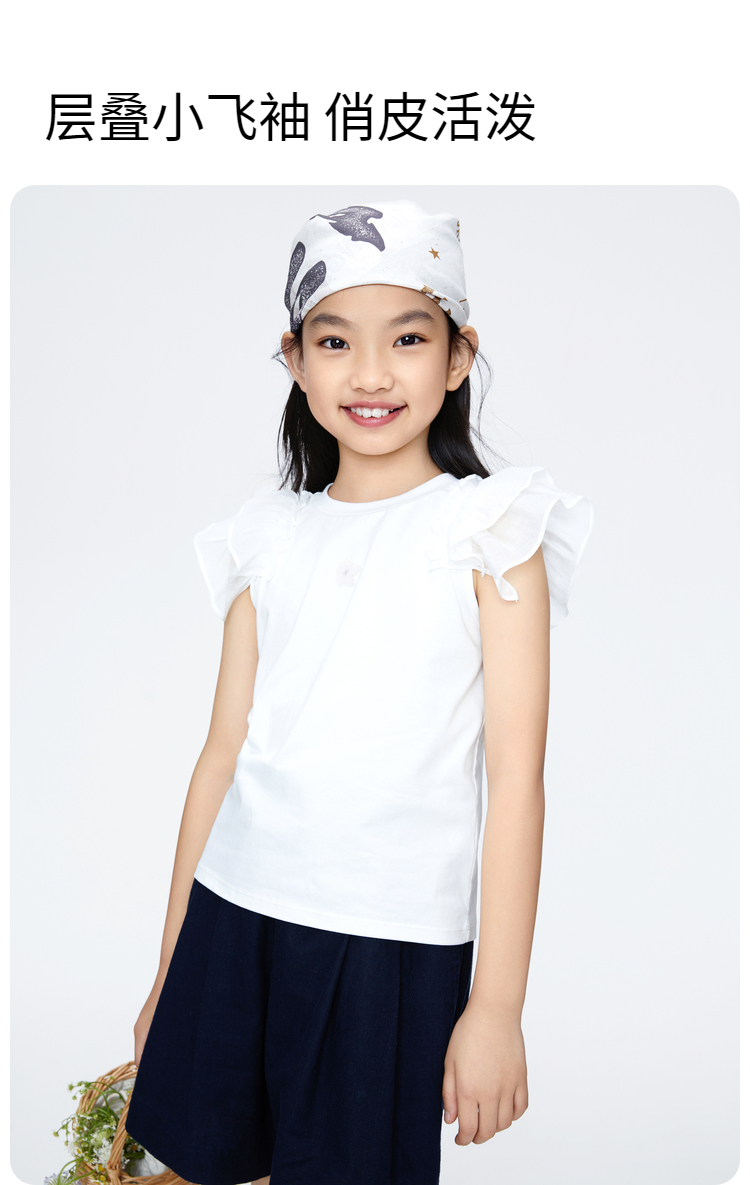 女童凉感记忆棉圆领短袖T恤新款安奈儿童装实体店同款AG421807
