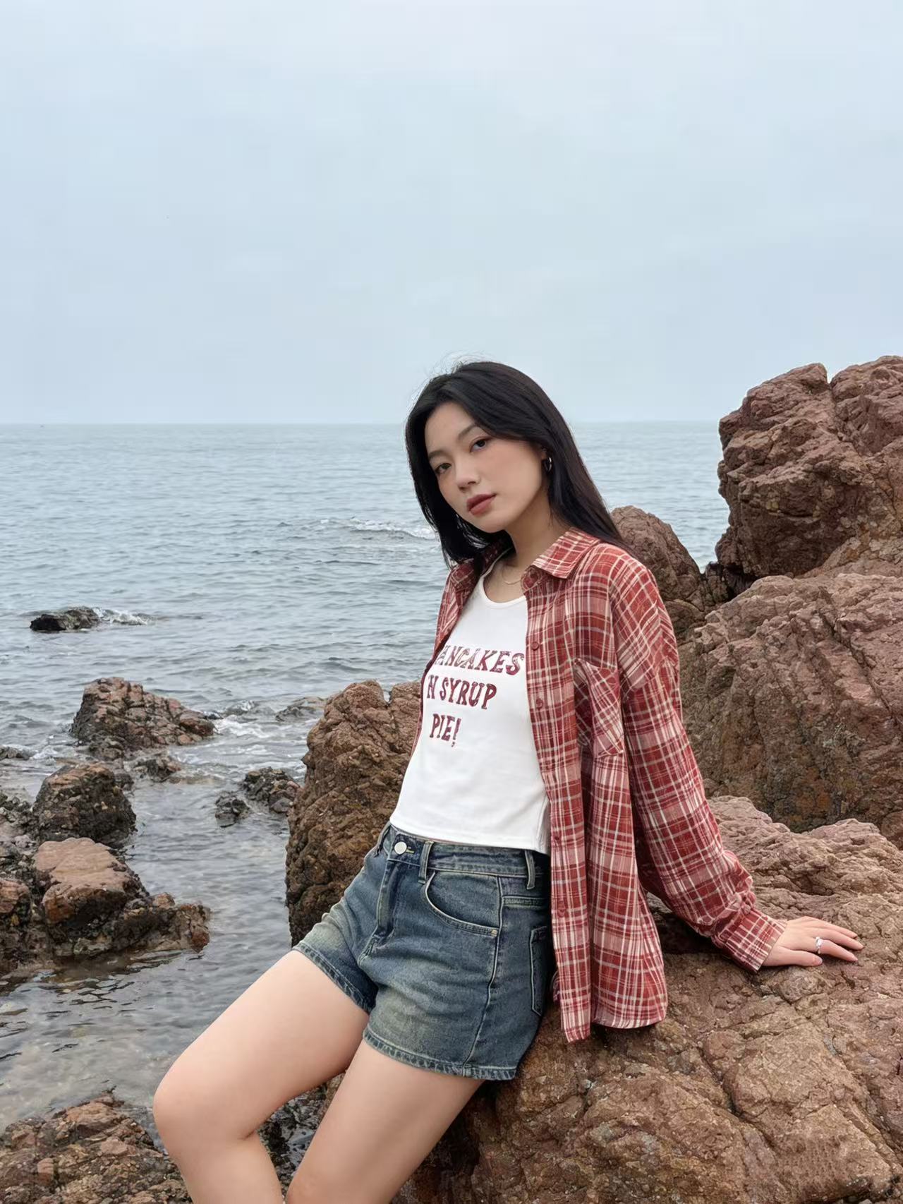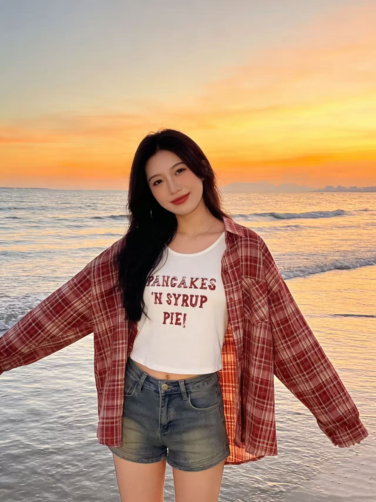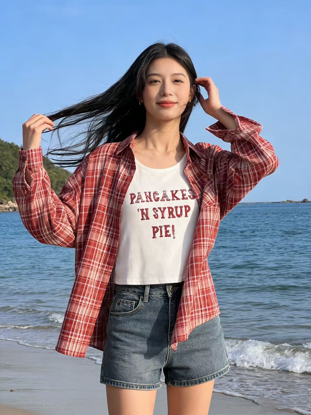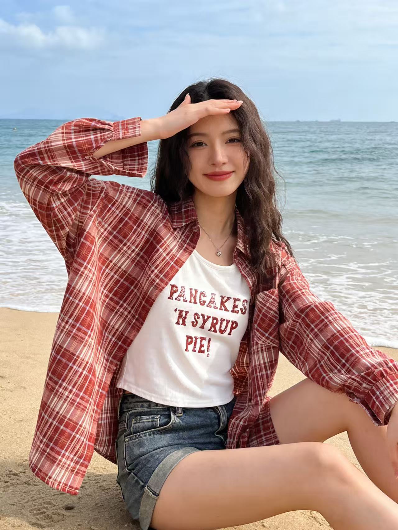 418良粉节|2026 活动爆款 品牌促【自营】衣周期 (两件套)春夏薄款~90%棉7396红格衬衫➕背心套装上衣-喜出