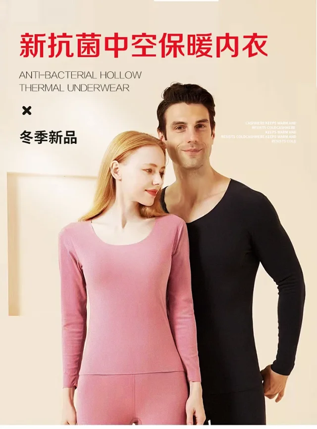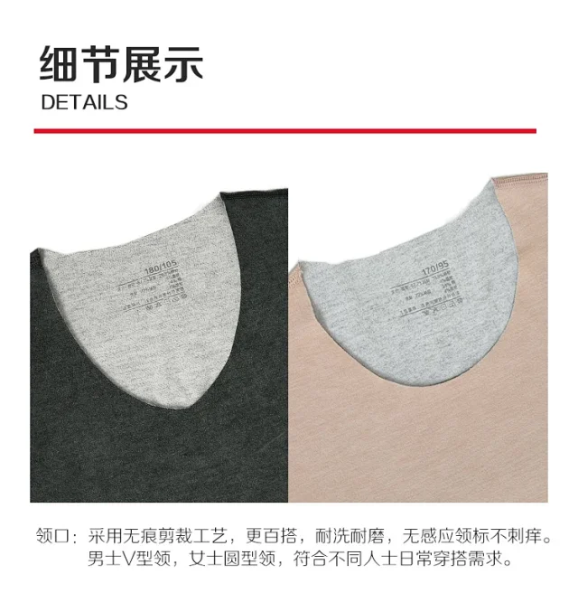 芳婷 秋冬新款情侣内衣套装抗菌自发热保暖衣男士v领打底衫女秋衣秋裤