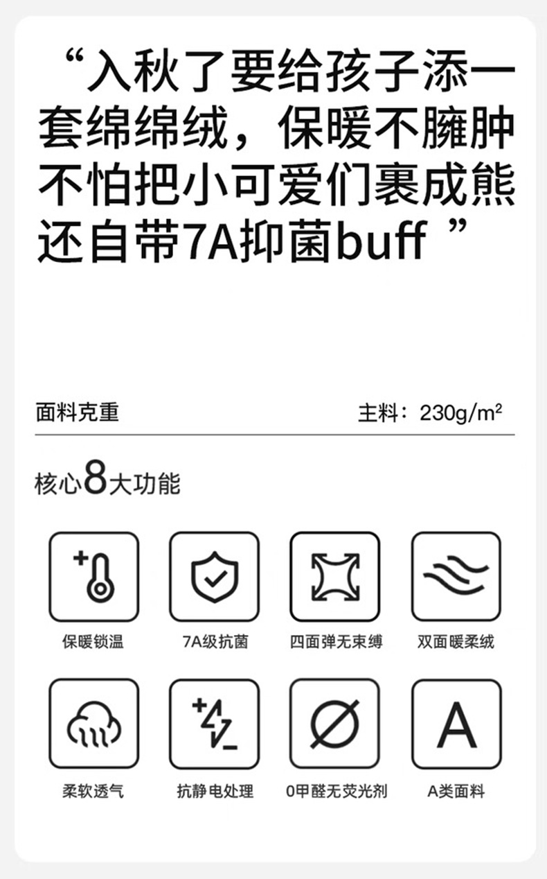 婴儿双面阳离子德绒,230g密度高更柔软,一穿即热,简直就是贴身暖宝宝!!~