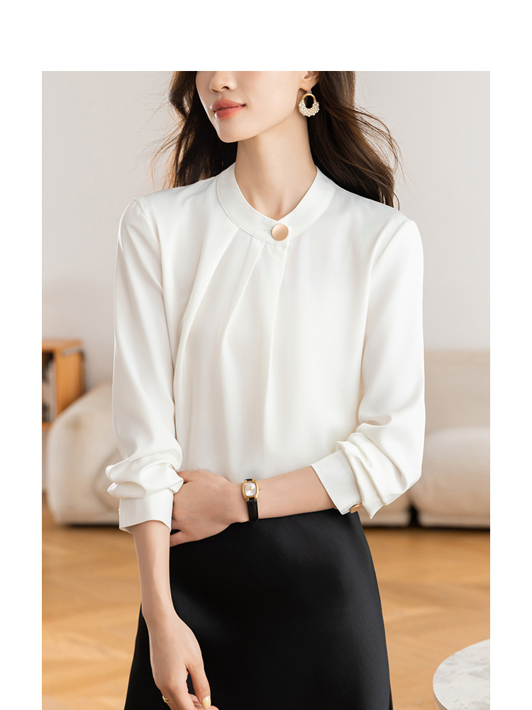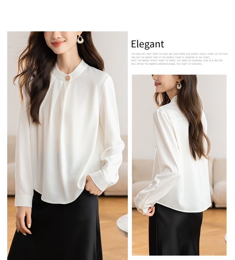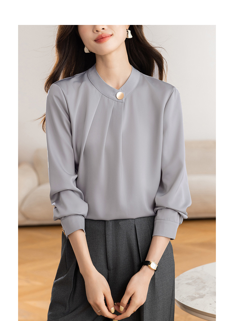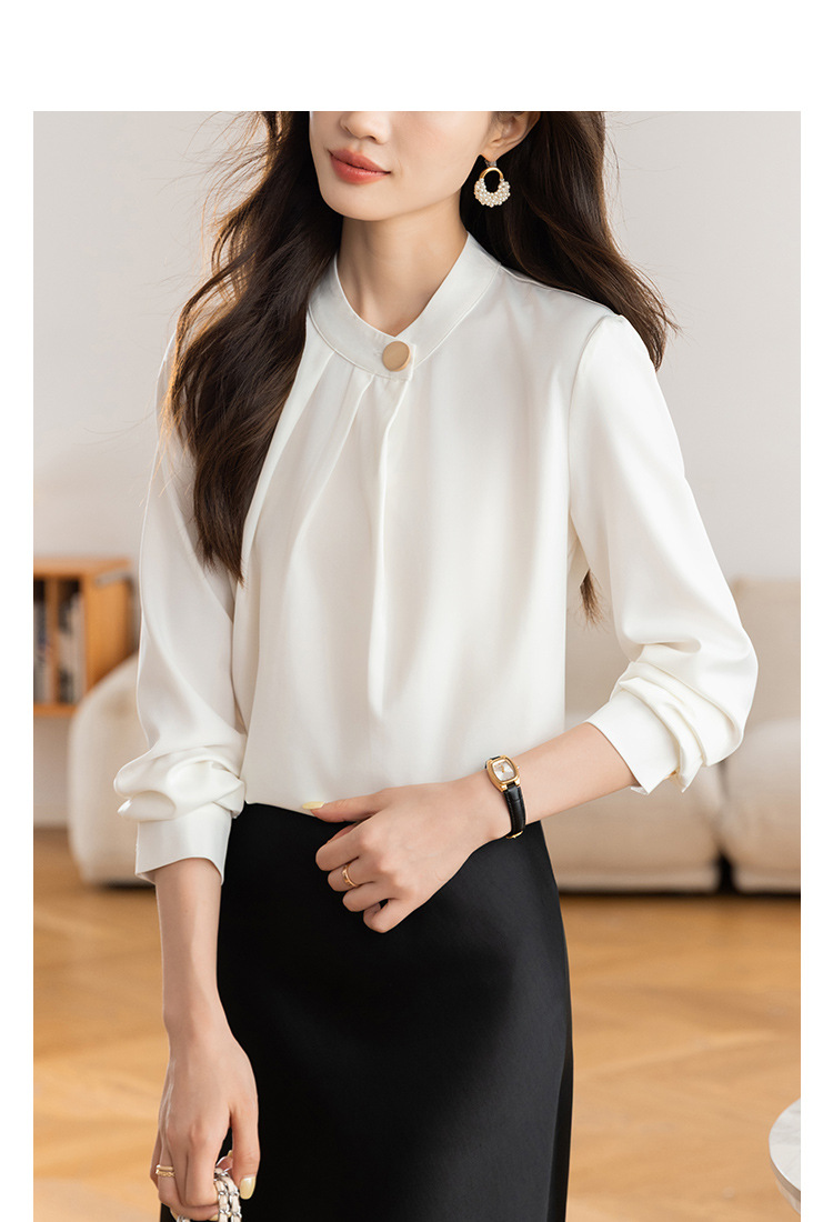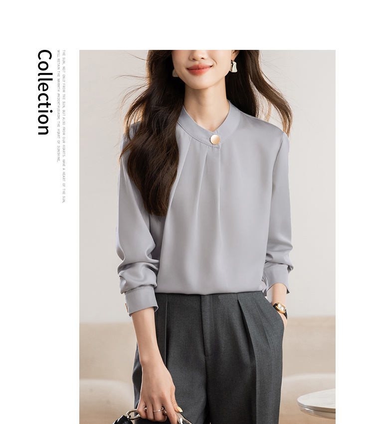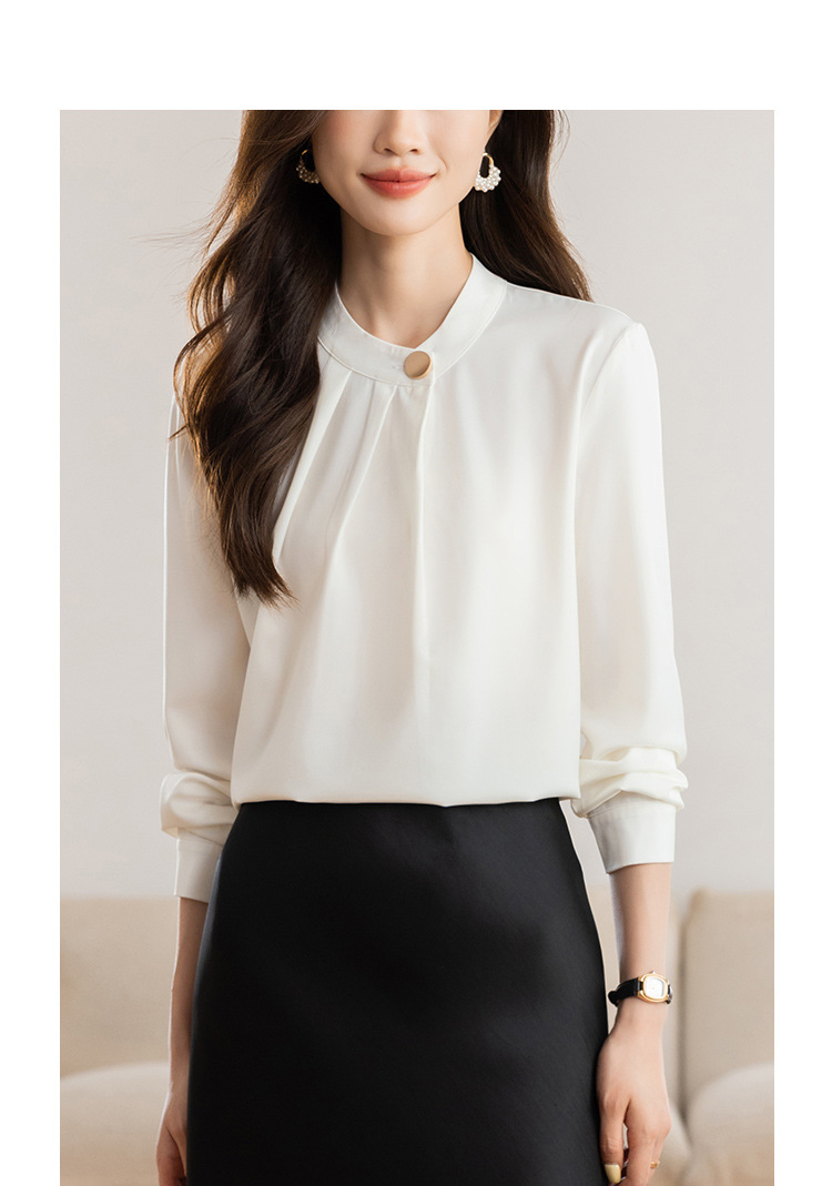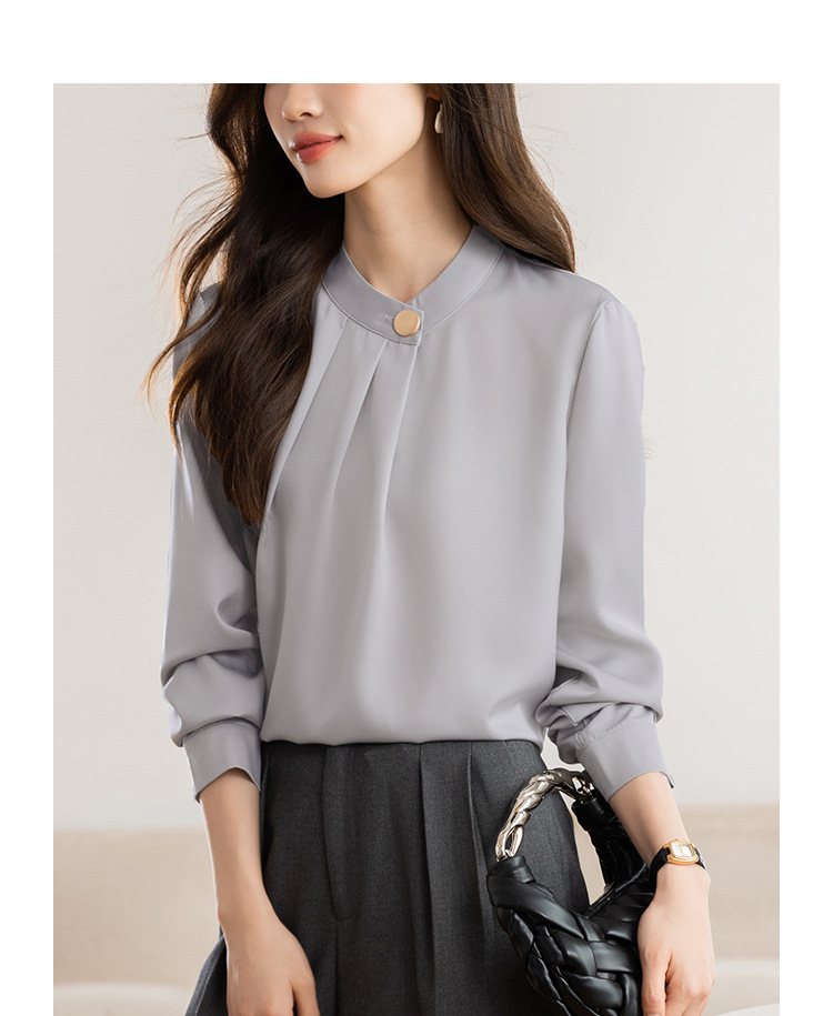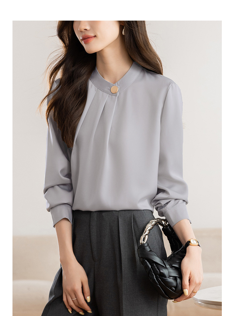 KQL 617T8335纯色压褶衬衫长袖职业衬衣小衫