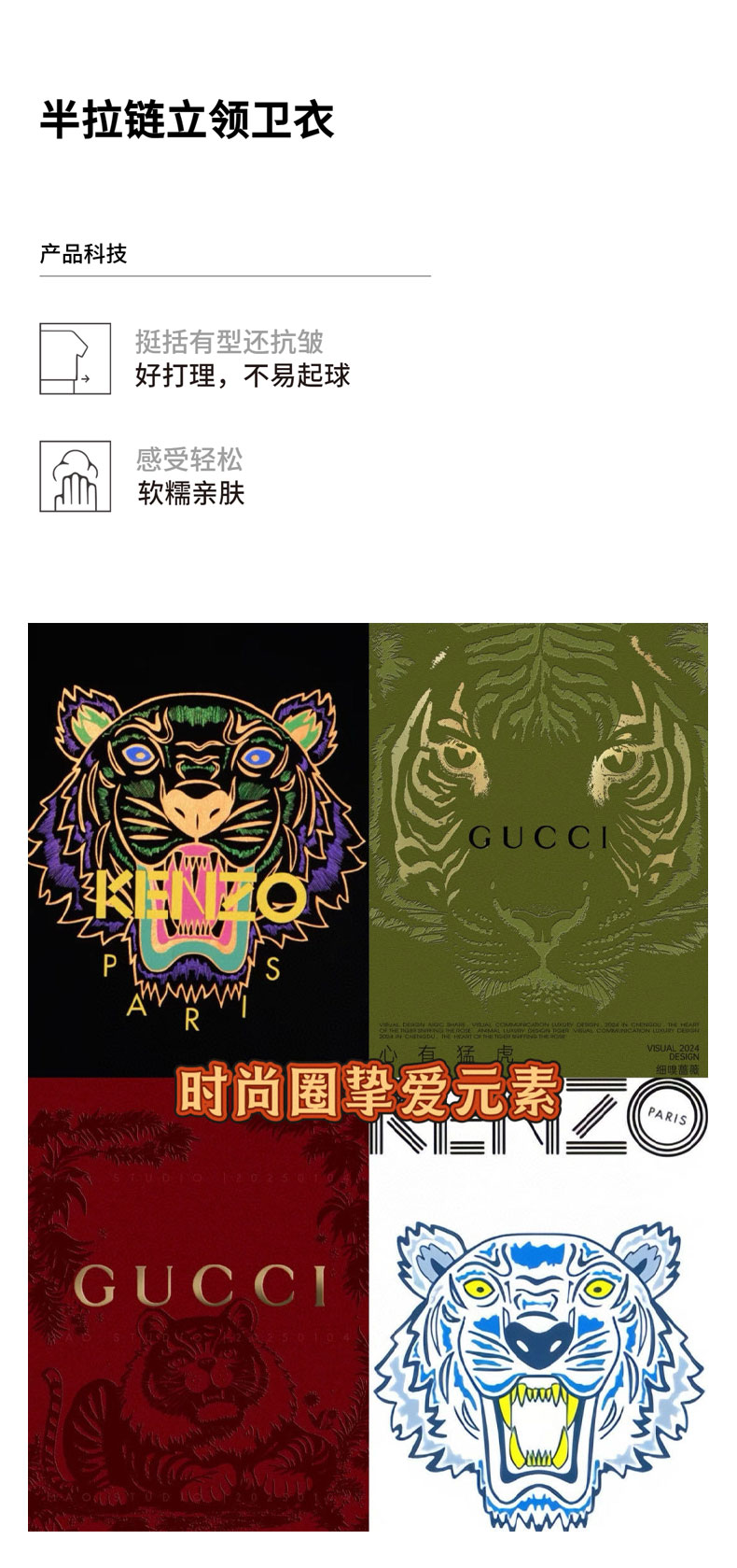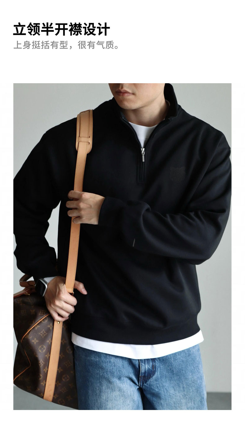 【 男士虎头半拉链卫衣】一眼显型, 重磅320g华棉复合牛奶丝,舒适亲肤;无论是单穿或叠穿都很有型!