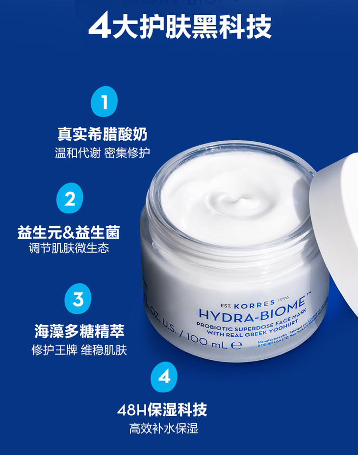KORRES珂诺诗希腊酸奶益生元修护面膜100ml