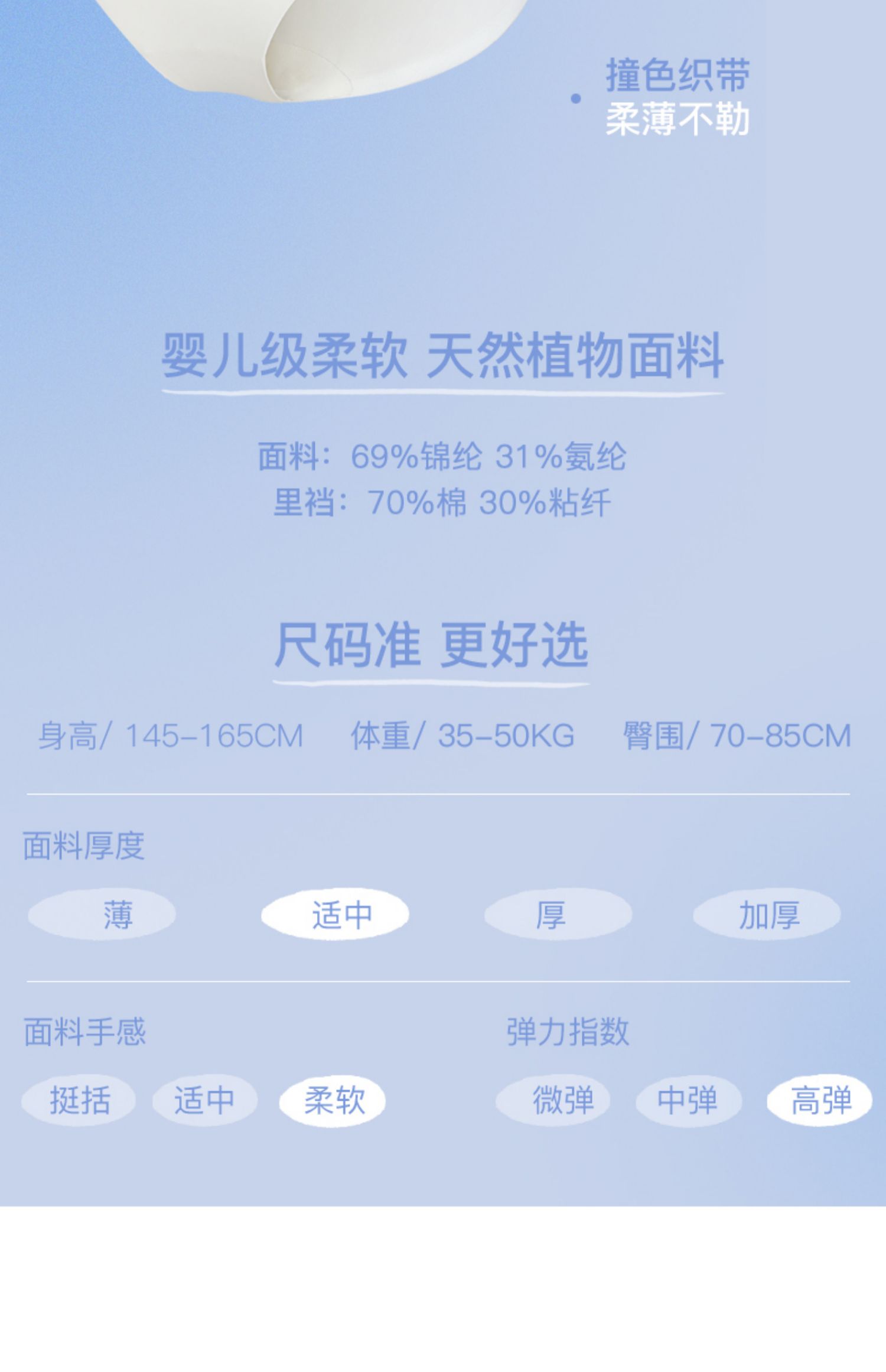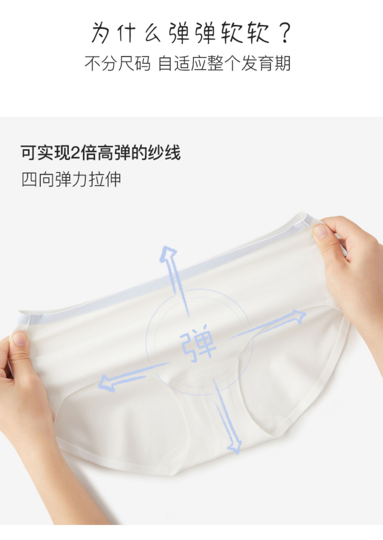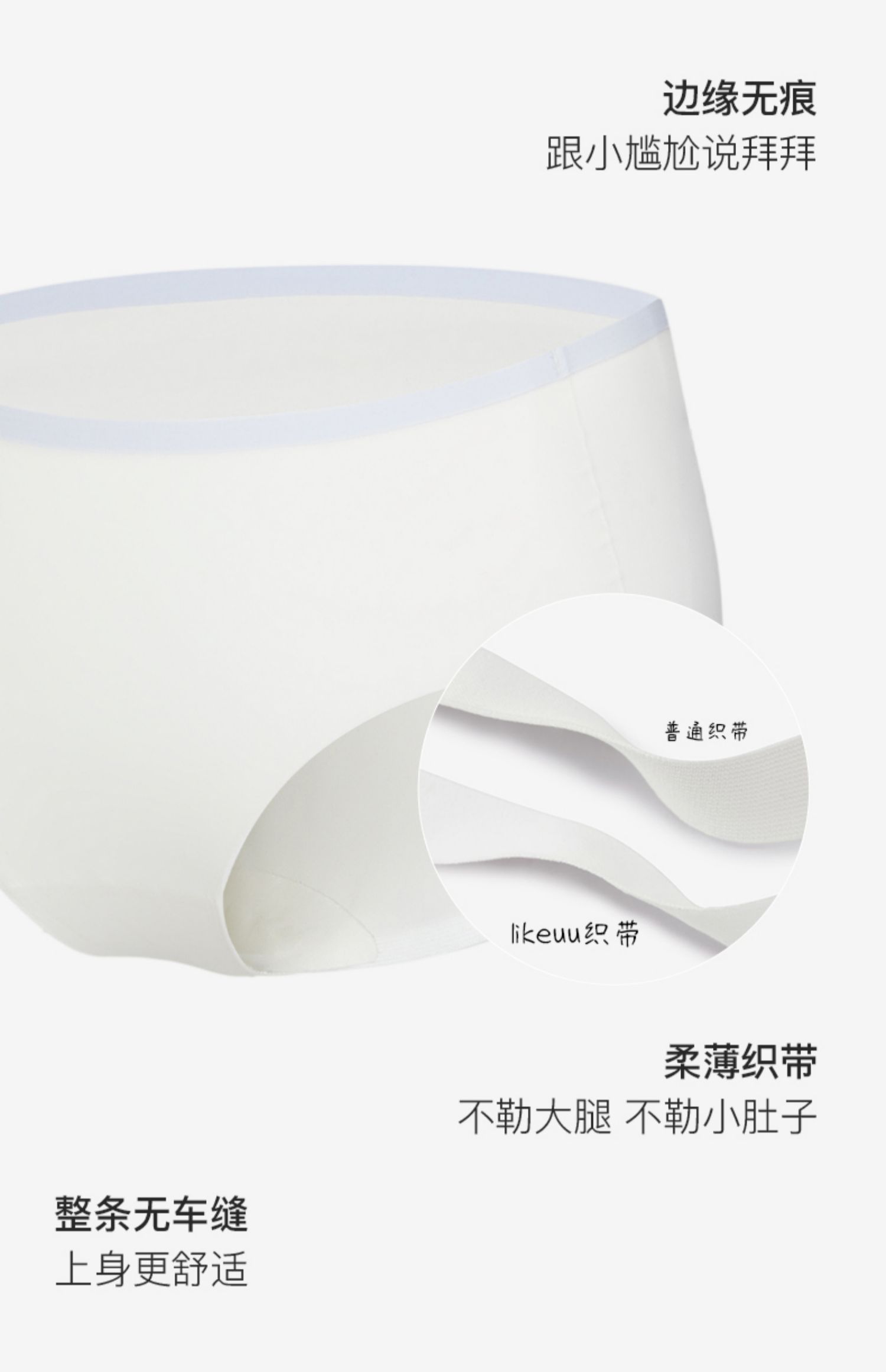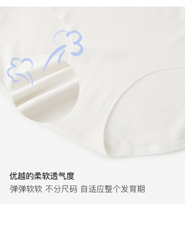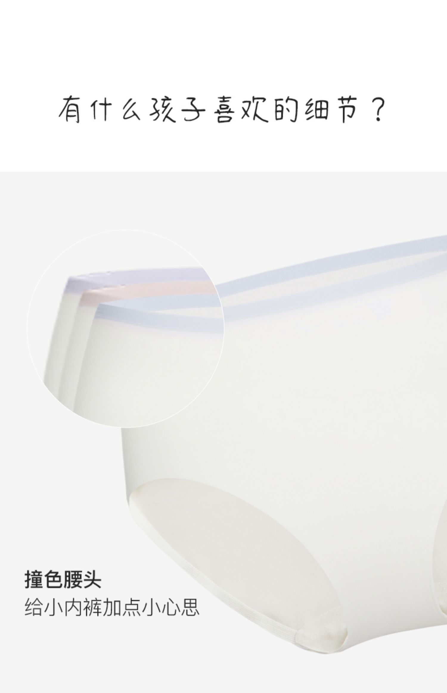 likeuu少女无痕腰头撞色无尺码内裤发育期女童中小学生抗菌透气