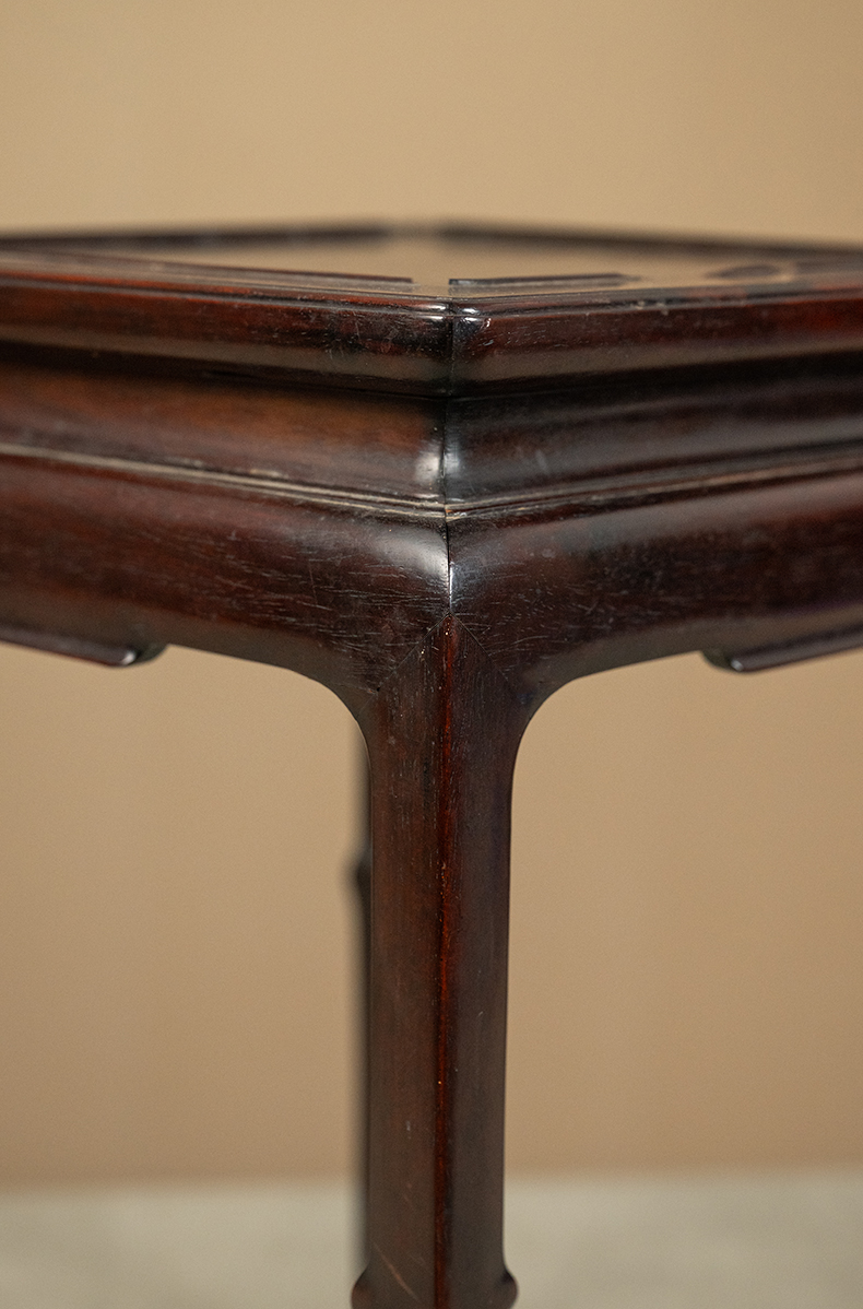 清 红木嵌瘿木百衲镶六角锦地画桌