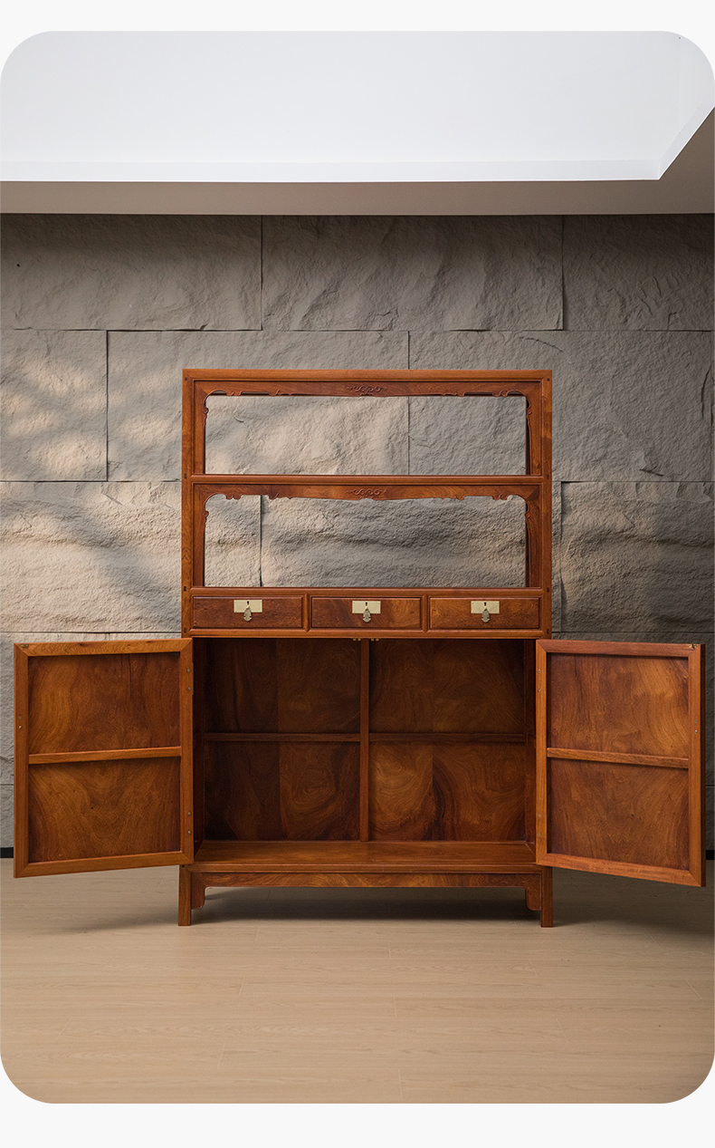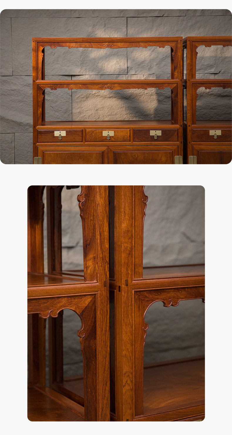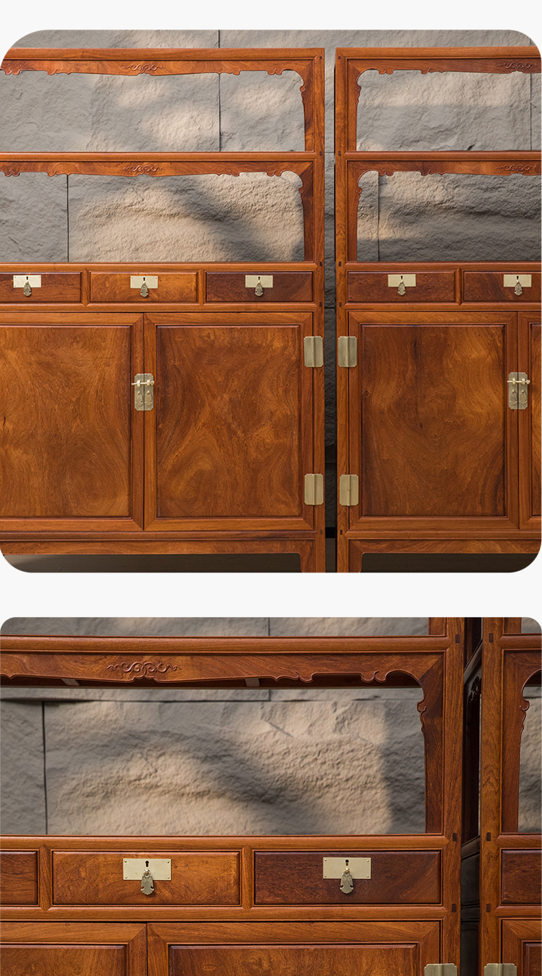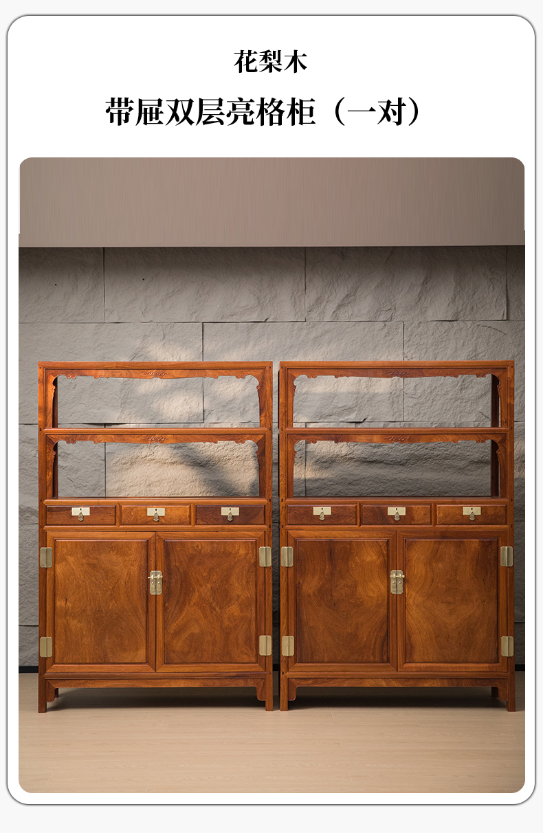 花梨木全独板带屉双层亮格柜(一对)