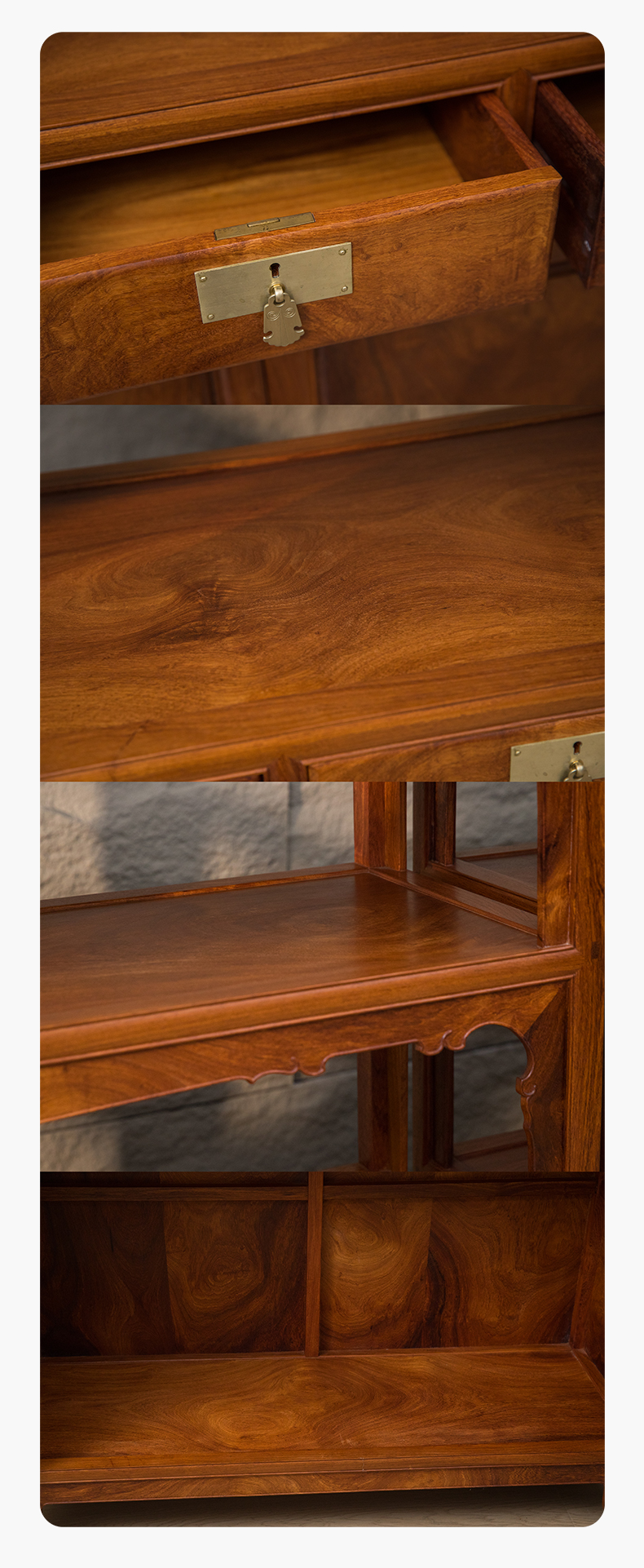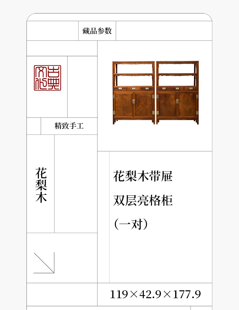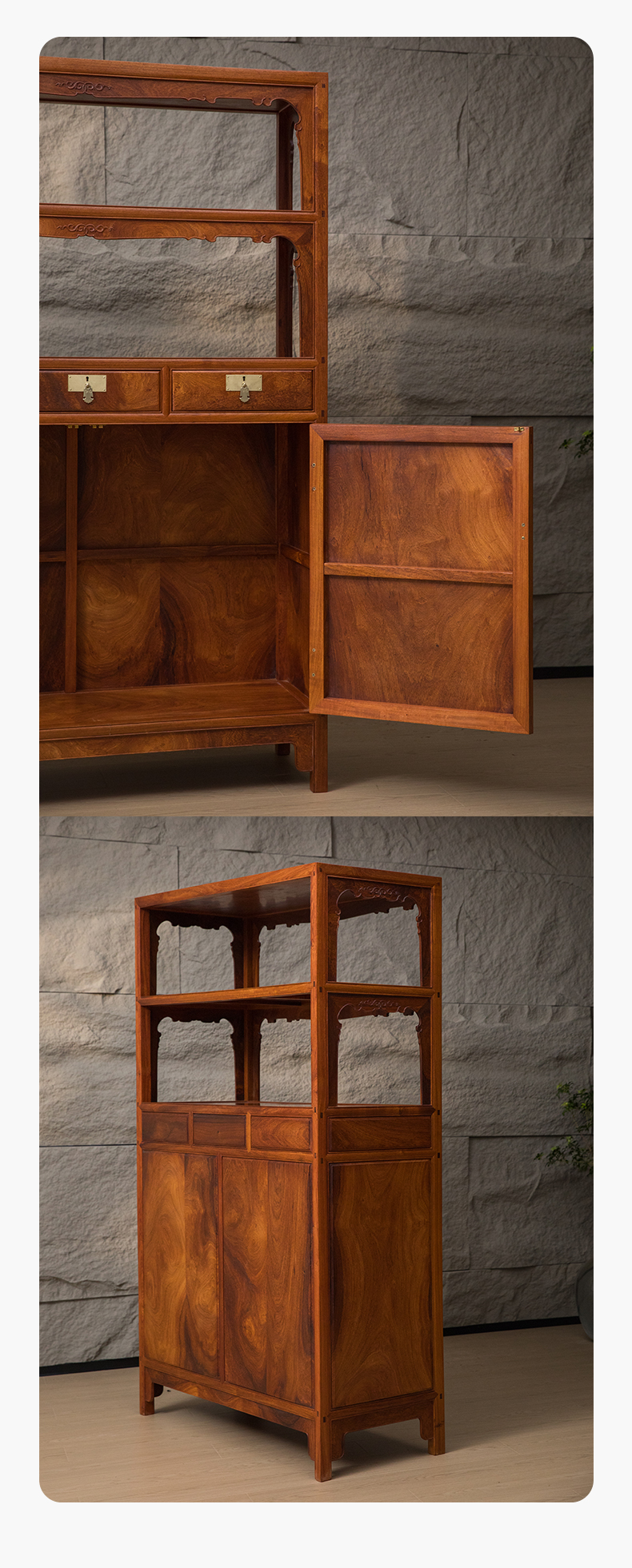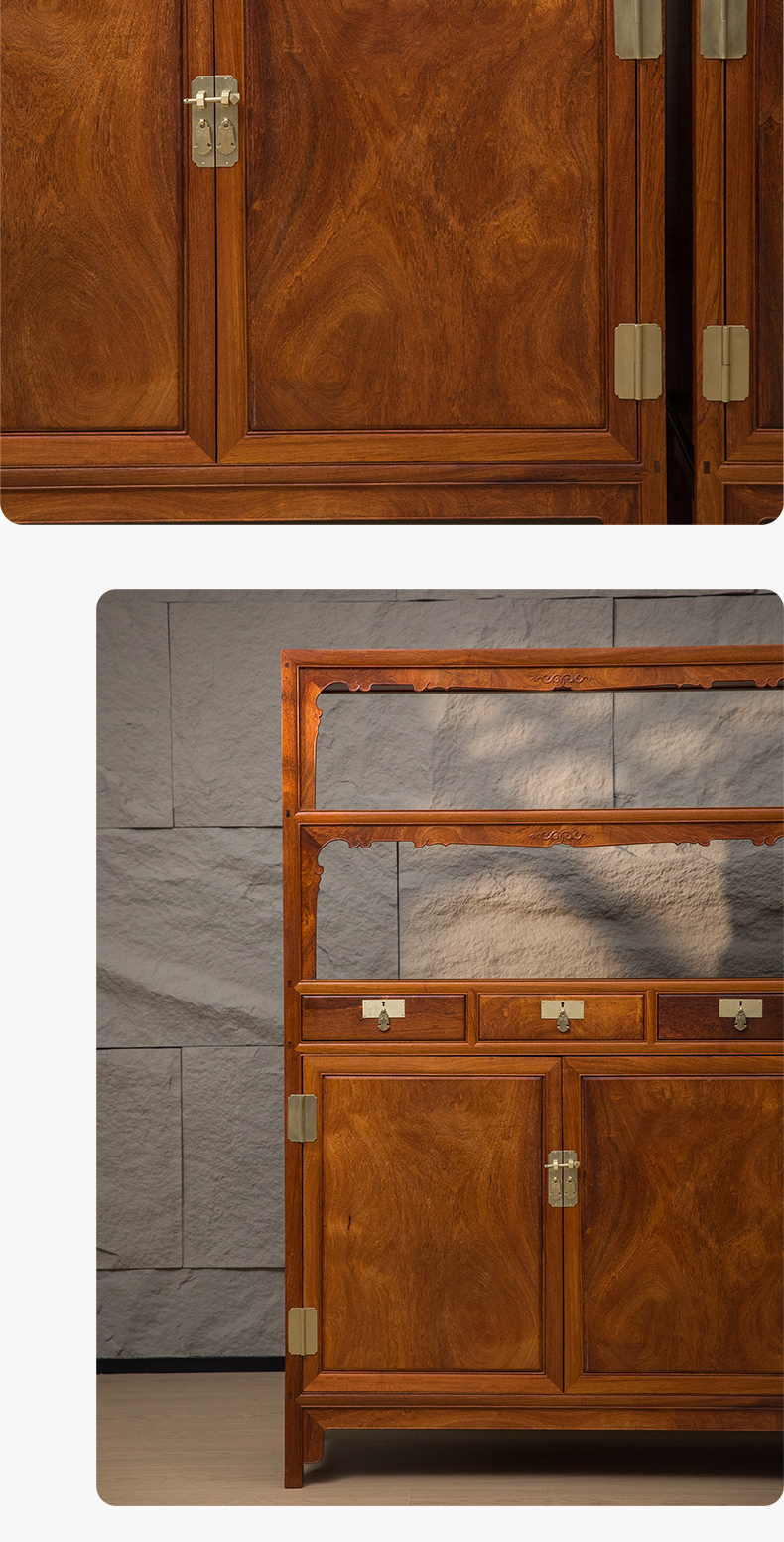 花梨木全独板带屉双层亮格柜(一对)