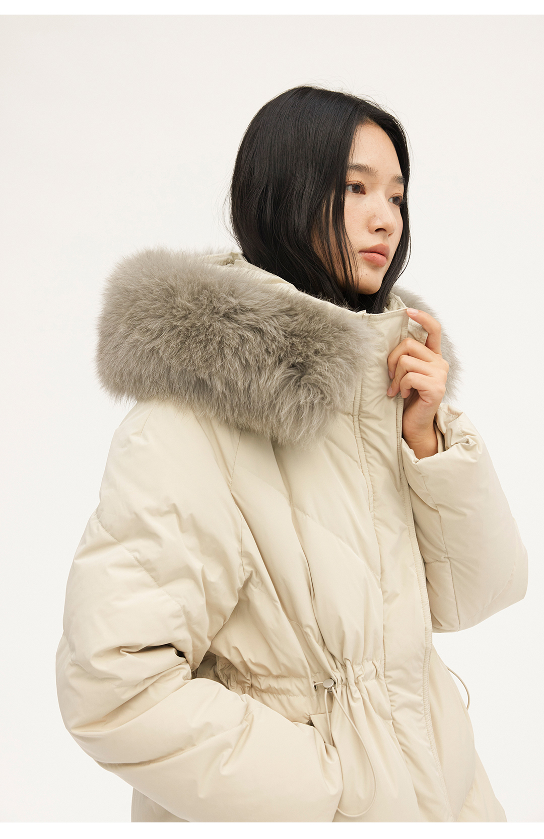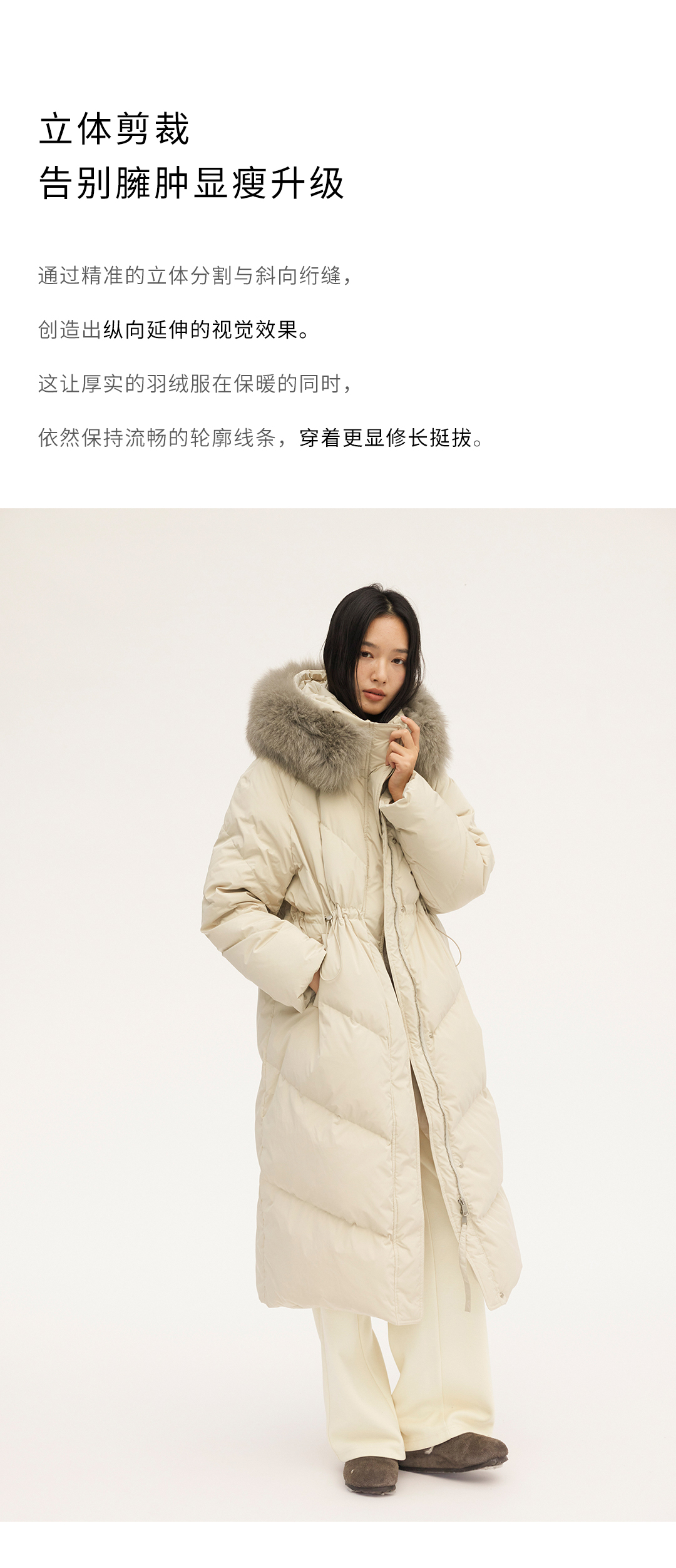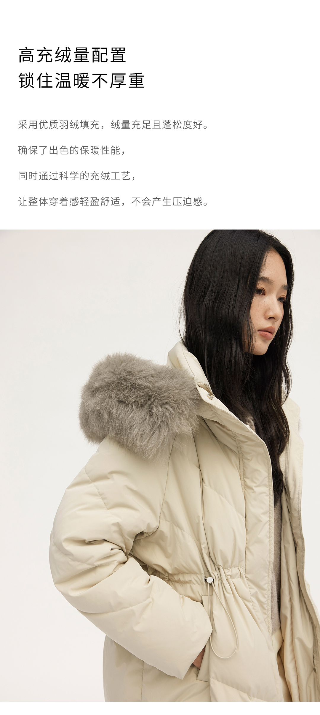 HeyDress毛领长款腰抽绳加厚羽绒服